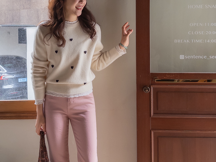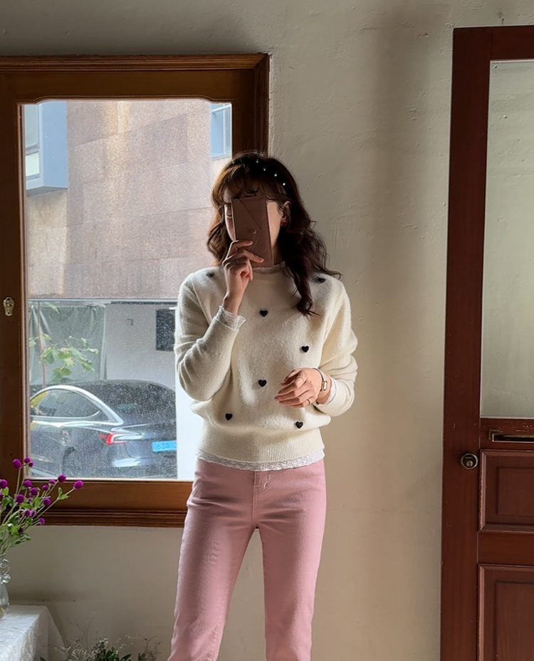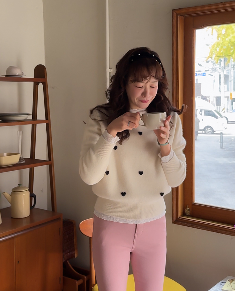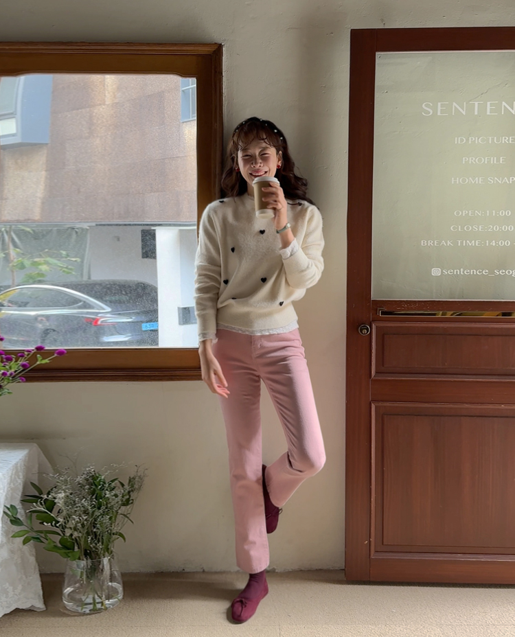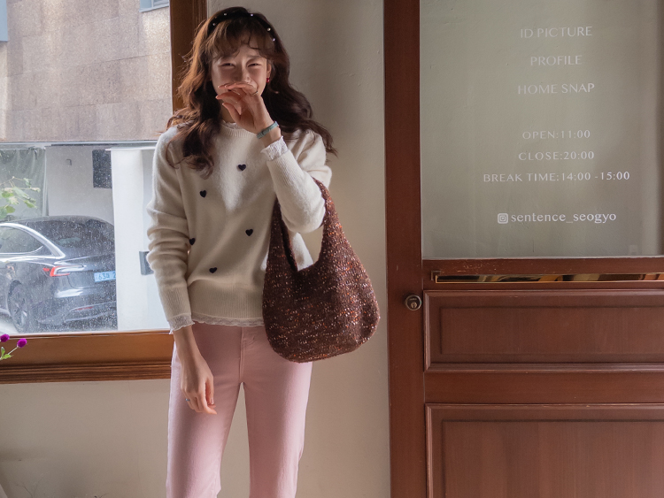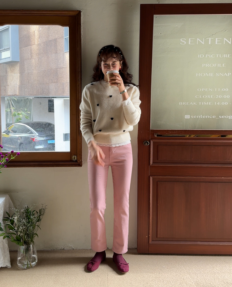 보자마자 기분 좋아지는 하트 포인트가 콕콕~ 사랑스러운 무드가 가득한 리린 감성 니트!! 입체감있는 패치 하트가 더해져 러블리하면서도 무난한 룩에 포인트가 되어줄 아이템 :) 아우터 속, 포인트 니트로 딱♥ 보들보들한 터치감으로 포근하게 착용 가능해요~ 도톰한 두께감이라 지금은 단독, 겨울에는 아우터 속에 쏙~ 입어주세요 ^^