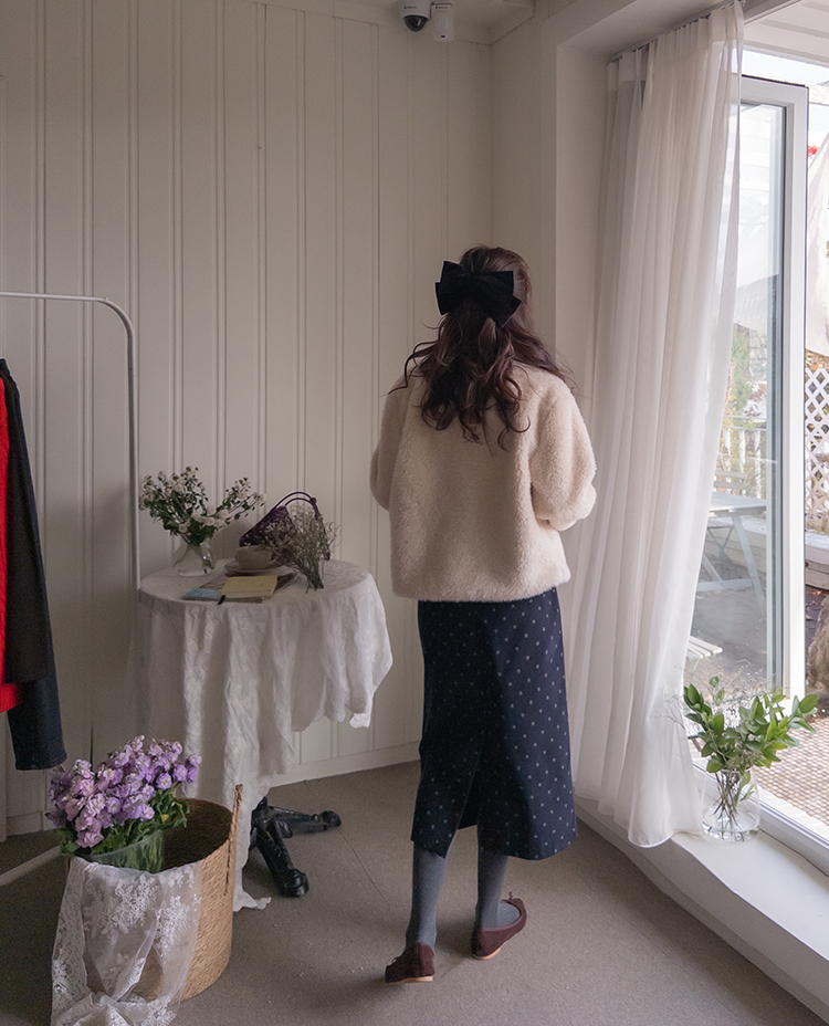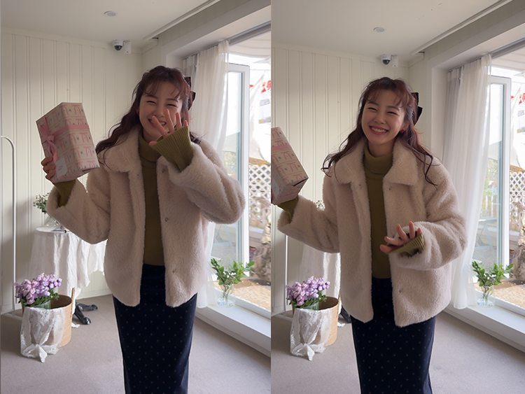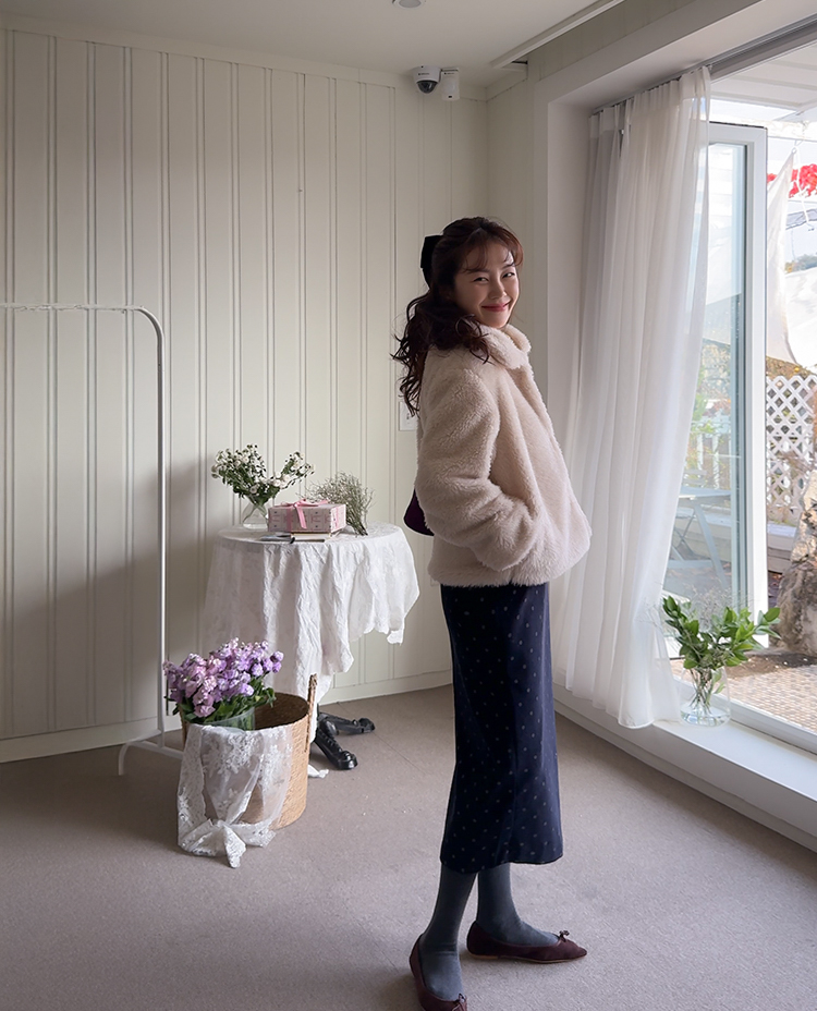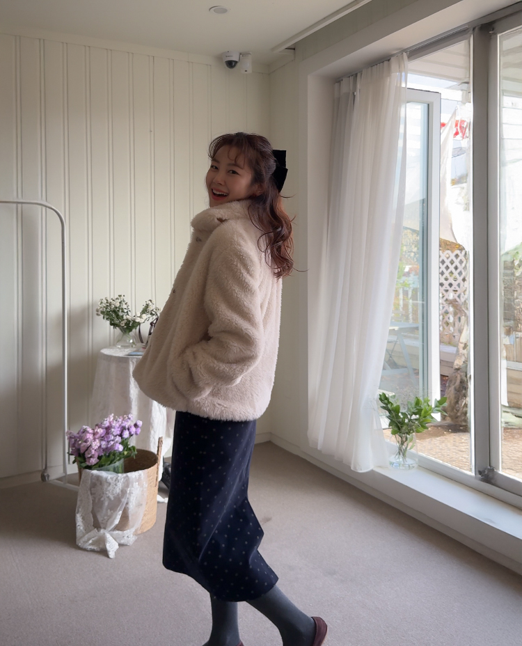보들보들~ 부드러운 촉감 끝판왕 퍼 자켓이에요♥ 도톰하고 부드러운 텍스처가 입는 순간 포근하게 감싸주어 정말~ 따뜻한데요ㅎㅎ 여유있는 품과 소매 라인으로 자연스레 떨어져 풍성한 볼륨감으로 체형 완벽 커버!! 오픈 클로징은 고리 형식으로 이지하게 OK~ 가볍지만 보온성 높은 퍼 소재로 겨울 내내 손이 자주 갈 아이템이에요:) 고급스러우면서 따뜻한 분위기를 만들어주는 퍼 자켓~ 강추드려요^^