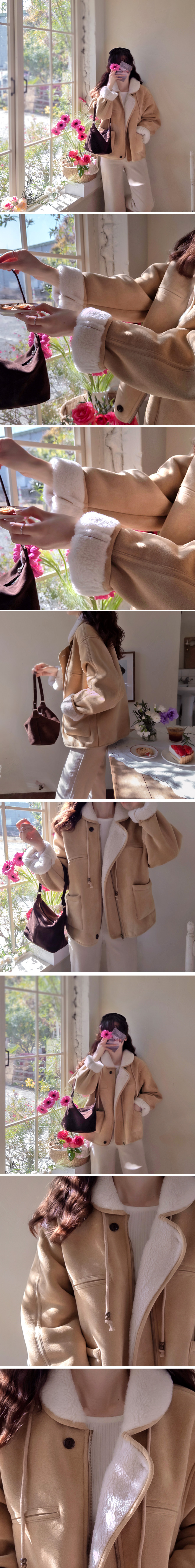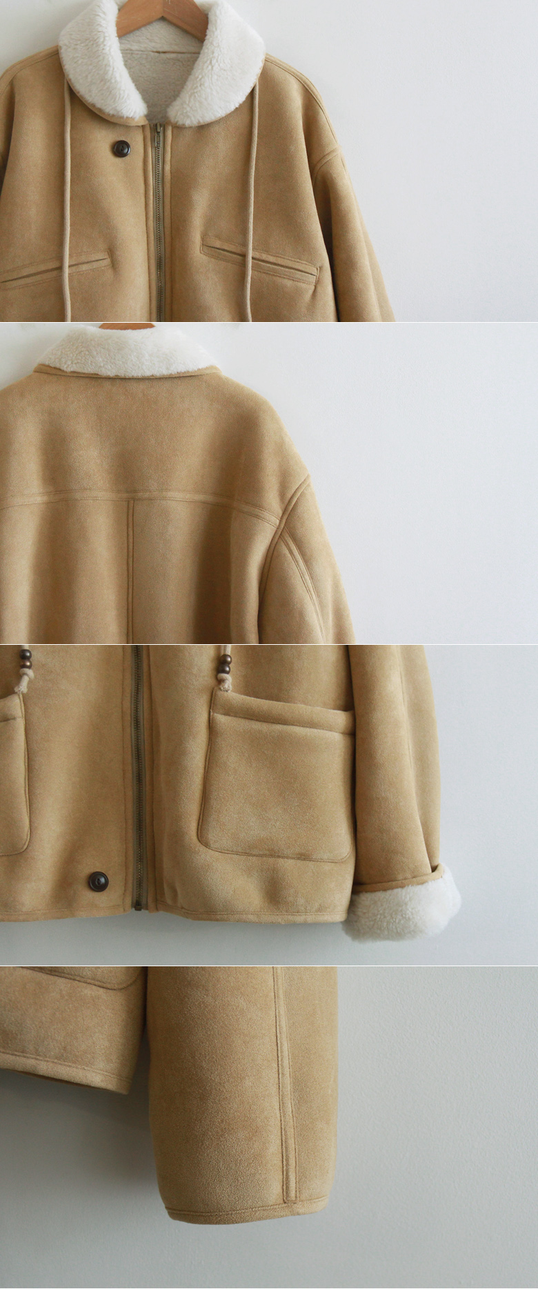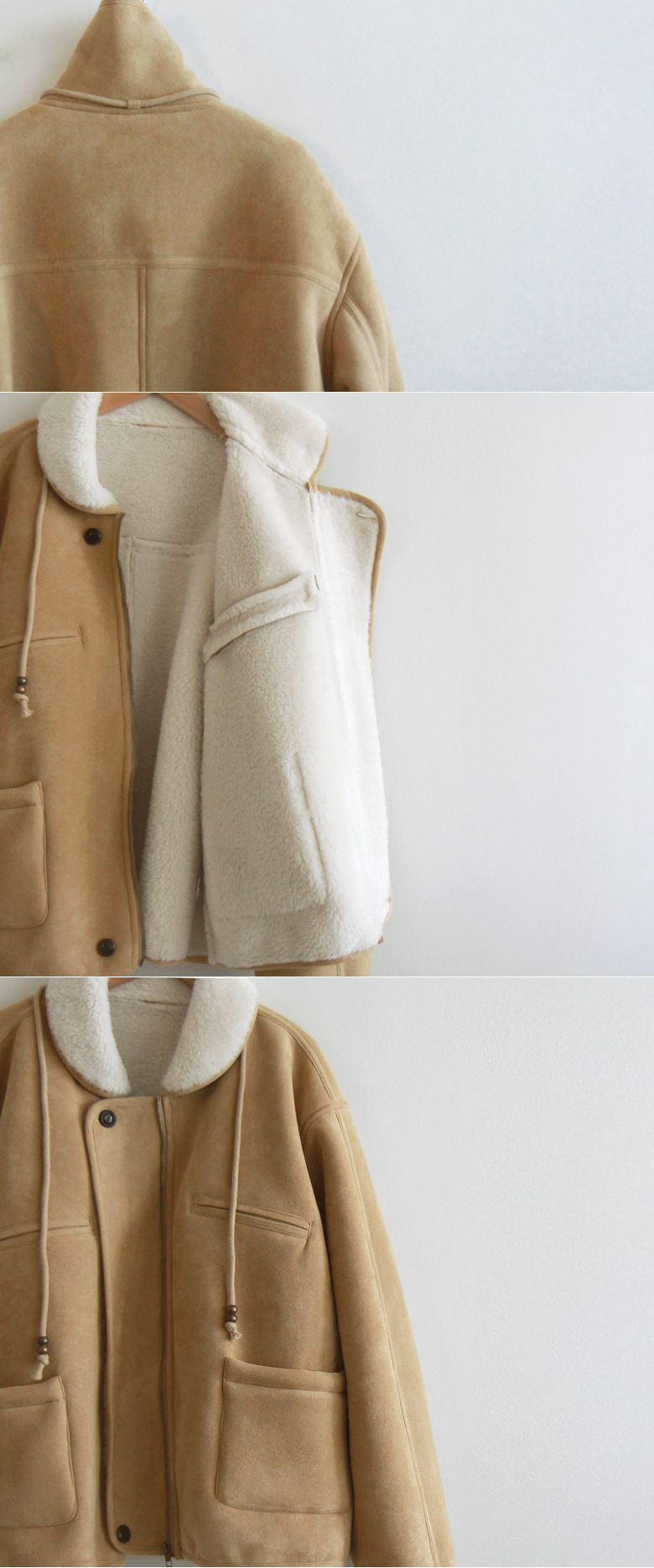 [Fur lining, warm and flexible Suede Mustang][String: Detachable][Warm Mustang with a simple design and pockets][Soft fur lining][The round collar creates a cute styling][Cozy and warm][Soft and flexible Suede Mustang]