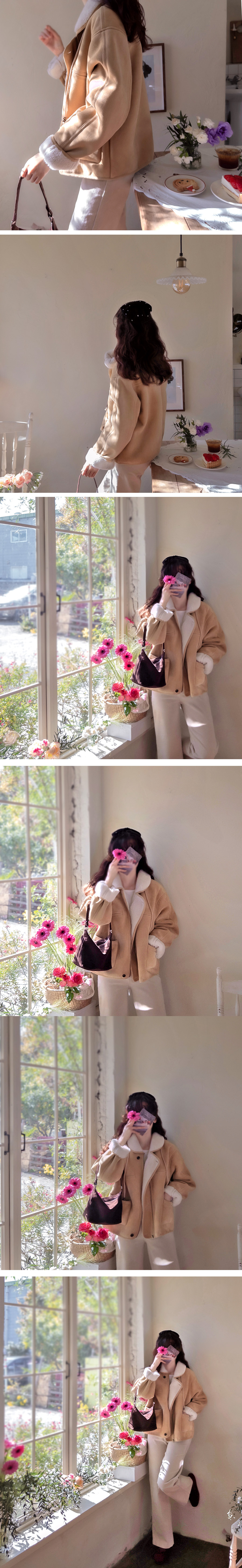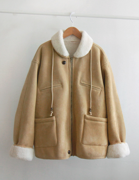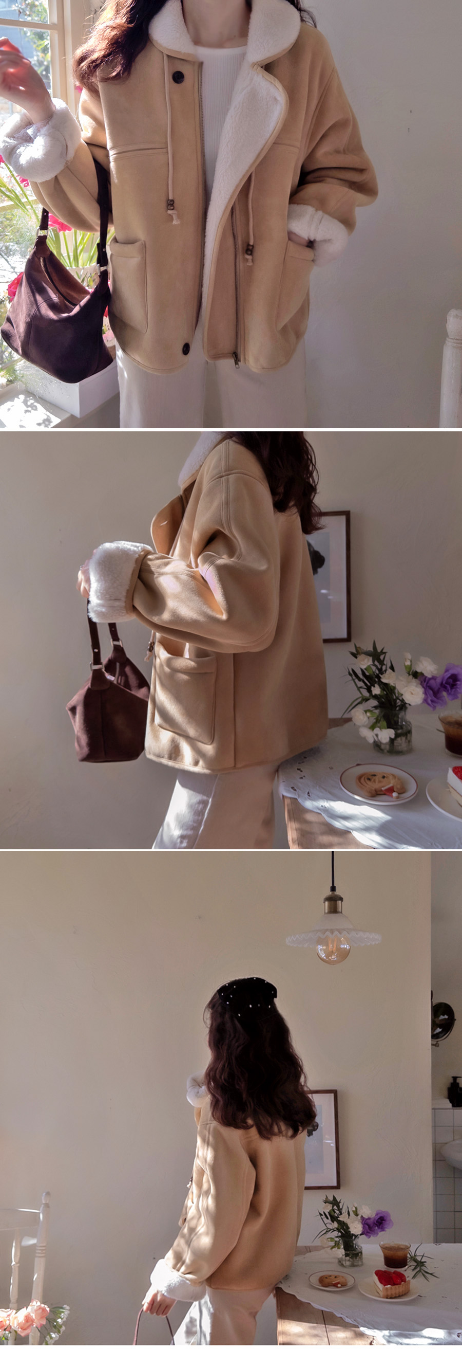 [Fur lining, warm and flexible Suede Mustang][String: Detachable][Warm Mustang with a simple design and pockets][Soft fur lining][The round collar creates a cute styling][Cozy and warm][Soft and flexible Suede Mustang]