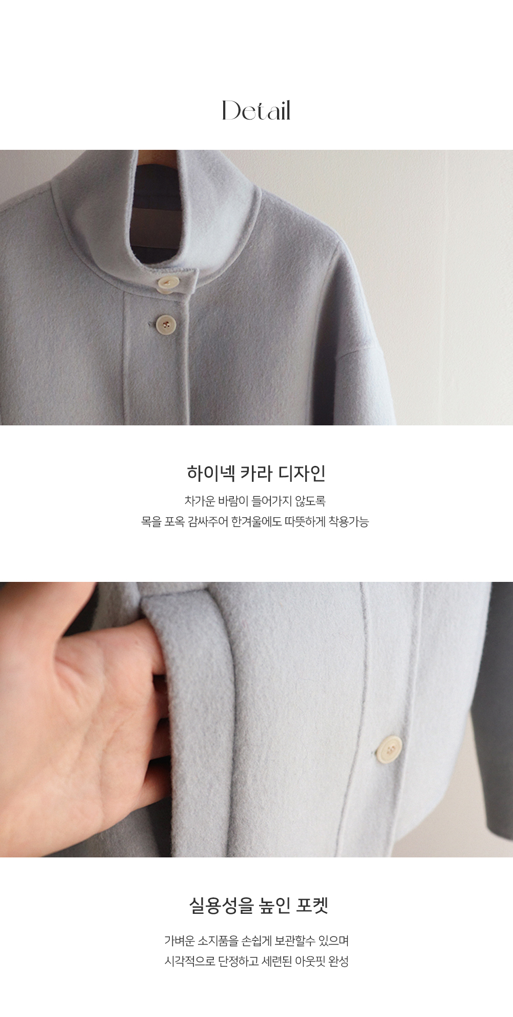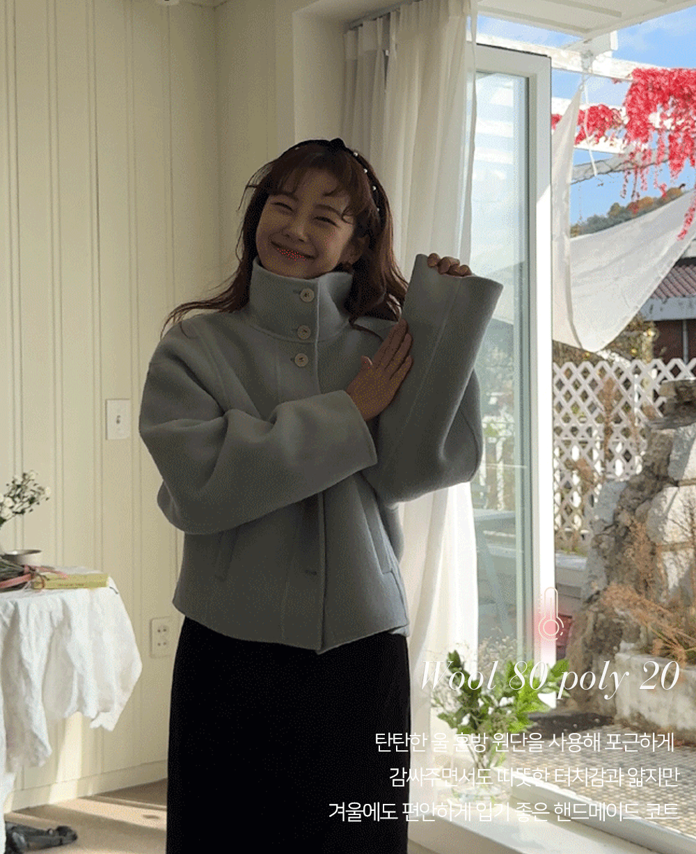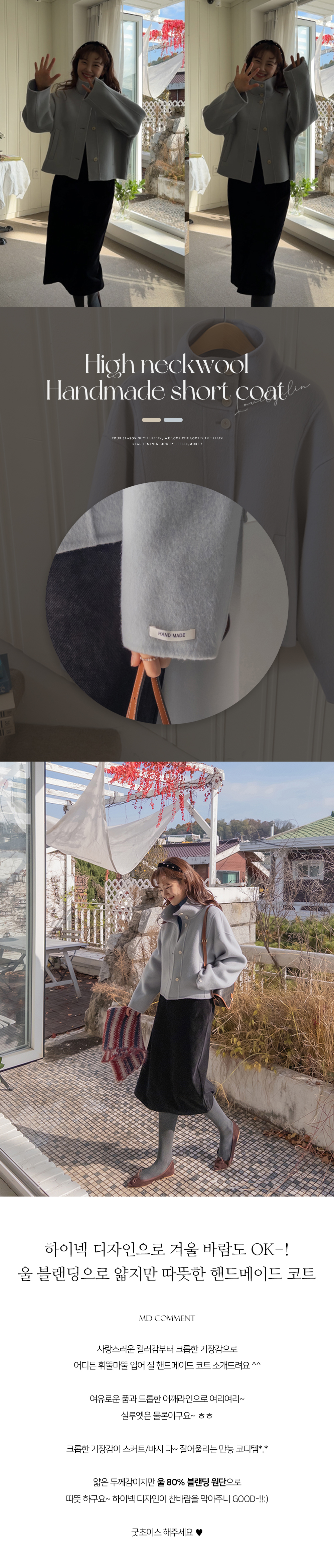 사랑스러운 컬러감부터 크롭한 기장감으로 어디든 휘뚤마뚤 입어 질 핸드메이드 코트 소개드려요 ^^ 여유로운 품과 드롭한 어깨라인으로 여리여리~ 실루엣은 물론이구요~ ㅎㅎ 크롭한 기장감이 스커트/바지 다~ 잘어울리는 만능 코디템*.* 얇은 두께감이지만 울 80% 블랜딩 원단으로 따뜻 하구요~ 하이넥 디자인이 찬바람을 막아주니 GOOD-!!:) 굿초이스 해주세요 ♥