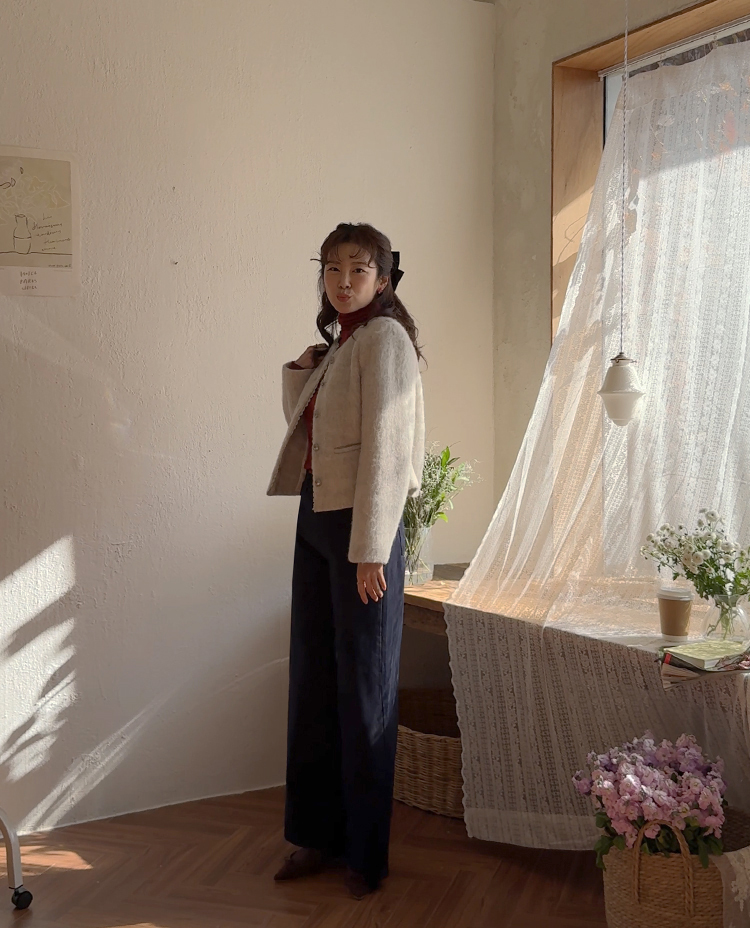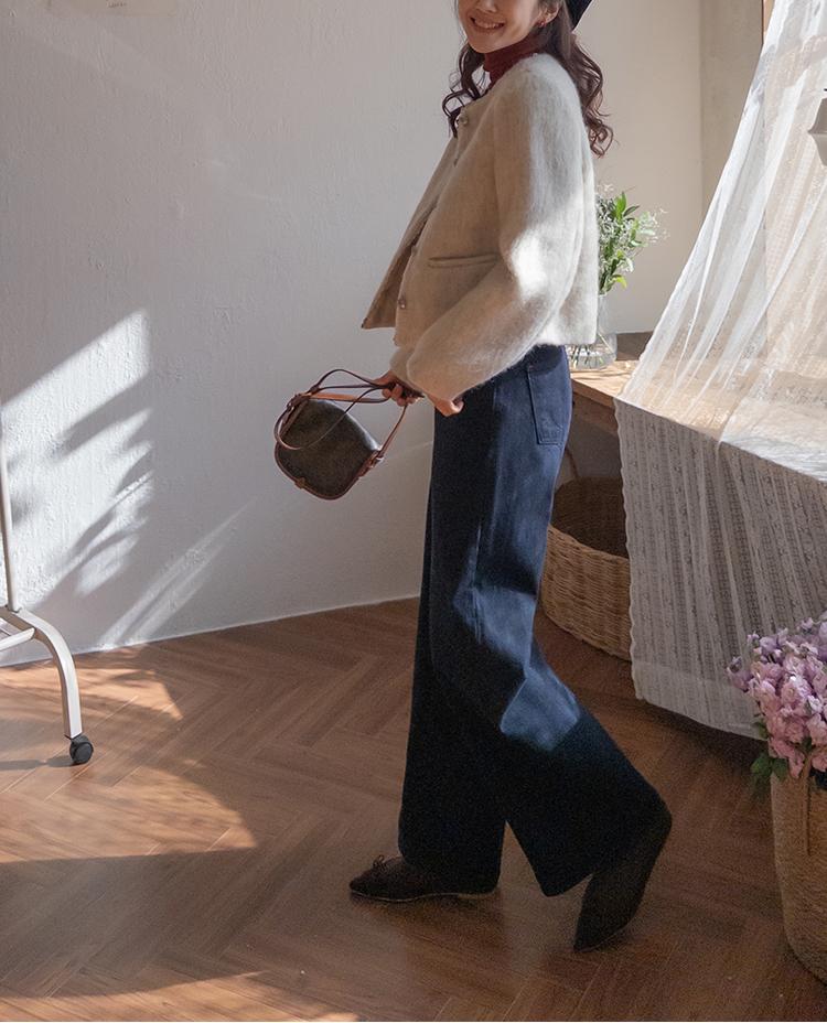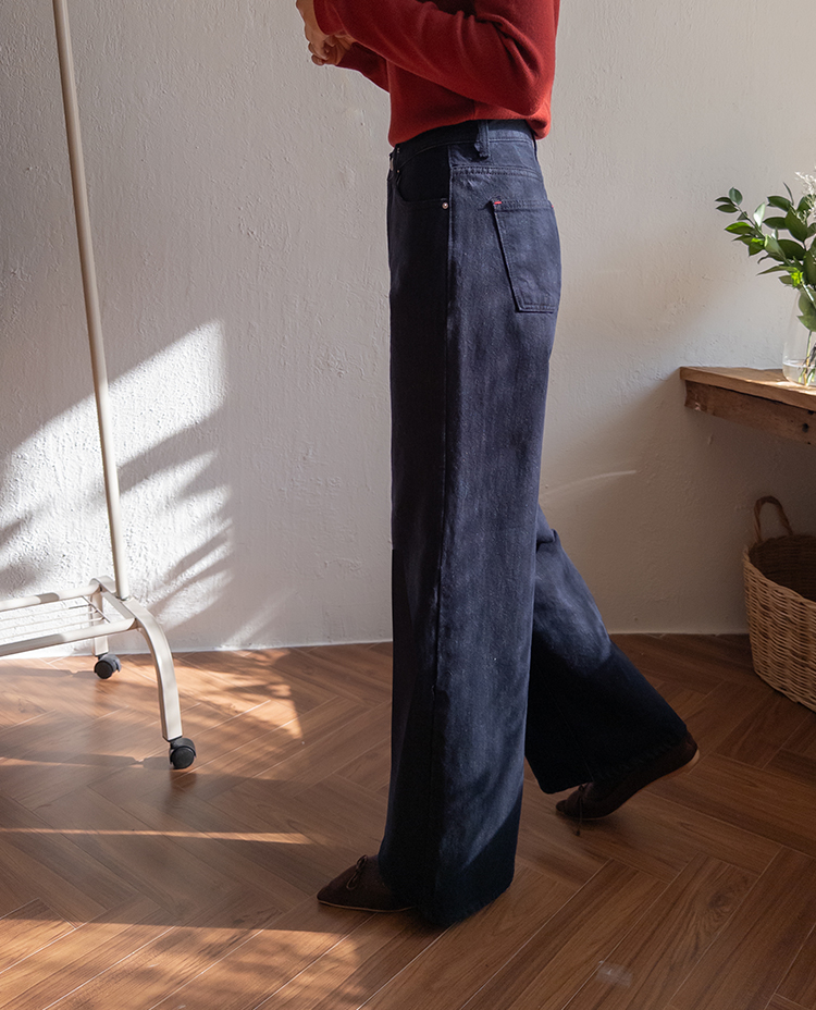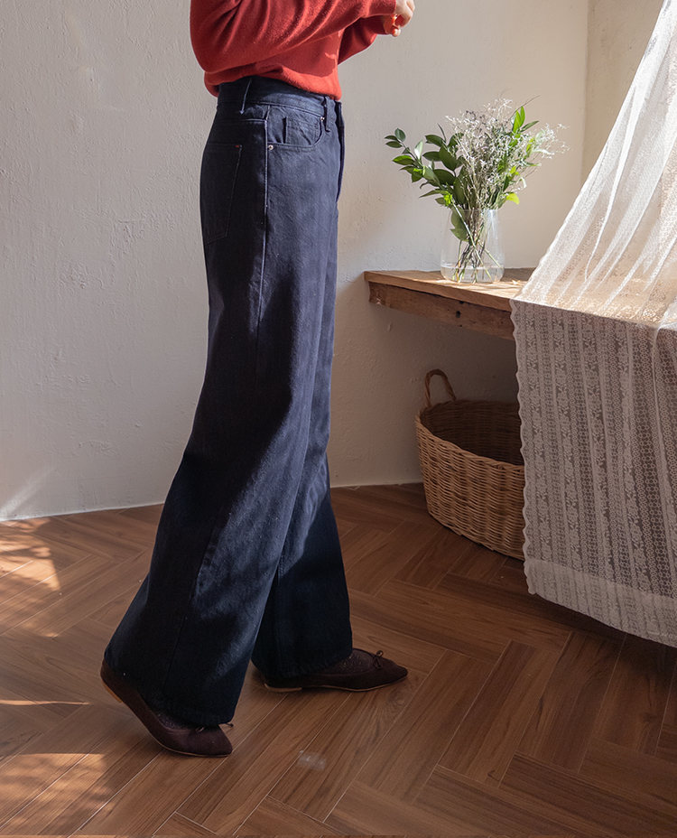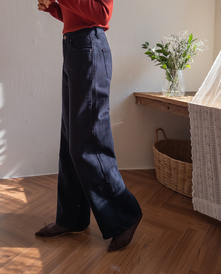 여름~가을~ 많은 사랑을 받은 그 바지 ! ! 기억하실까요~? 모델언니도 구매한 매직 핏이니 믿고 구매하는 팬츠랍니다 ㅎㅎ 와이드한 일자 실루엣이 다리를 정말 길게 만들어주고요~ 겨울버전으로 따숩한 속기모와 뒷태까지 신경 쓴~ 레드 포인트 스티치가 더해져 더욱 멋스러운 :D 논페이드로 밝은 상의와 입어도 걱정없는 생지 데님이라 소장가치 UP↑ 굿초이스해주세요~♥