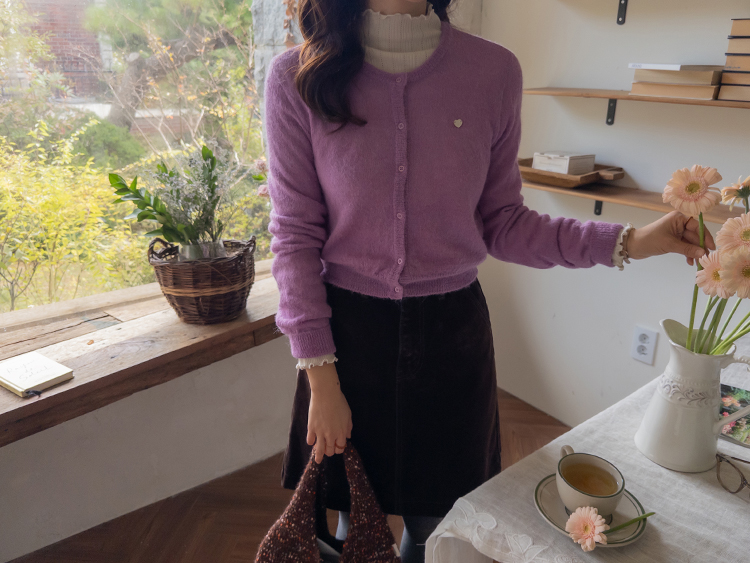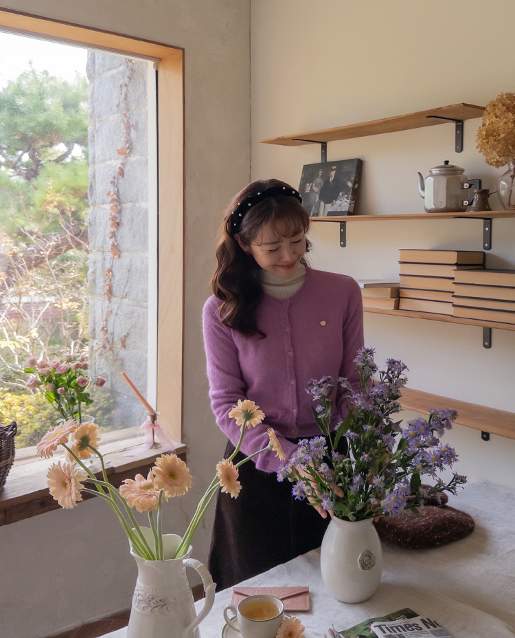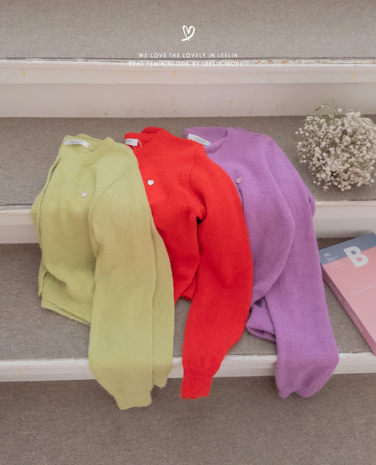 알파카와 울이 블랜딩되어 폭닥~하니 사랑스러움 가득한 니트 보여드려요~! 요 니트, 컬러감부터 핏까지 넘 예뻐서 아마 보자마자 좋아해주시는 분들이 많으실 것 같은데요ㅎㅎ 알파카와 울이 함유되어있어서 얇지만 보온성도 좋구요 슬림하게 떨어지는 핏감으로 여리여리~한 무드 가득..♡ 리린의 시그니처 하트 심볼로 사랑스런 포인트도 더해주었구요 티셔츠나 블라우스 위에 톡! 걸쳐주시기만 해도 코디 완성! 컬러감도 부담스럽지 않으면서 룩에 다채로움을 더해줄 컬러들이라 취향에 따라 소장해주셔도 좋구요~ 살짝 성글한 짜임으로 헤어리한 소재감도 돋보이고 착용하시면 여리한 무드 가득이라 사심담아 추천드릴게요~!