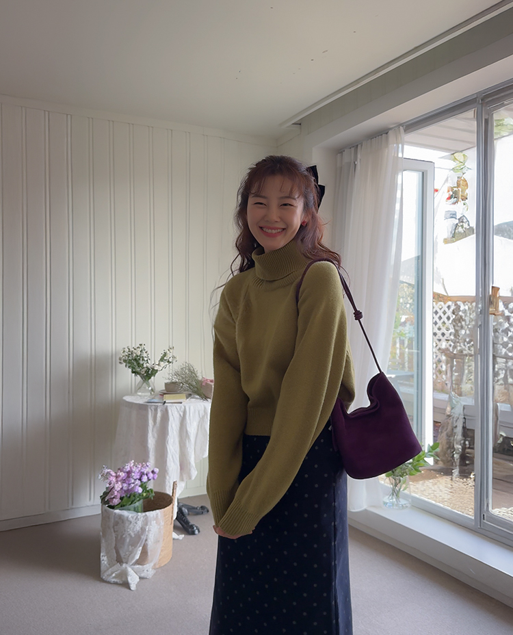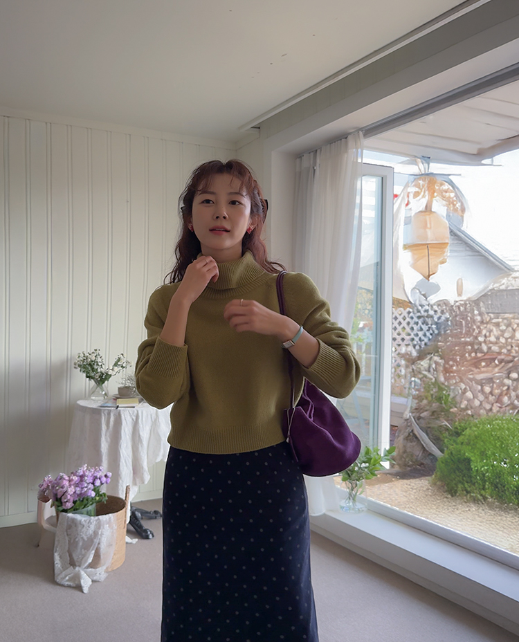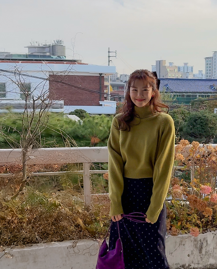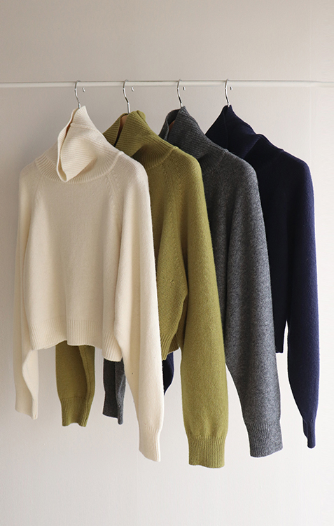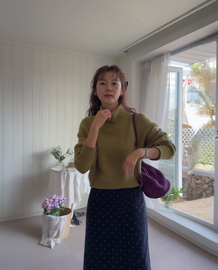 포근한 터치감의 울 하이넥 니트에요♥ 살짝 크롭한 기장으로 스커트나 팬츠 모두 깔끔하게 매치하기 좋구요~ 도톰한 두께감과 울 함유로 겨울에도 따뜻하게 입기 좋아요ㅎㅎ 하이넥 디자인으로 찬 바람도 끄덕 없구요!! 베이직한 디자인이라 휘뚜루 마뚜루 데일리하게 착용 가능하답니다^^