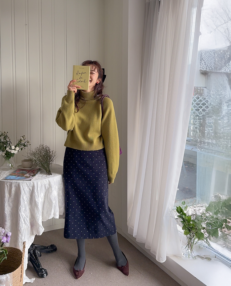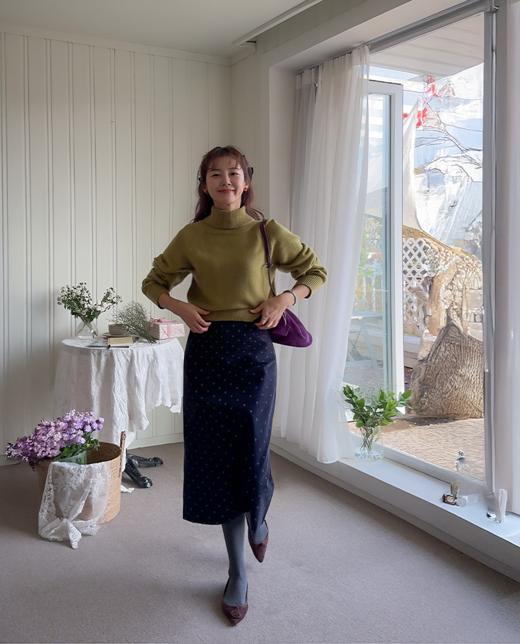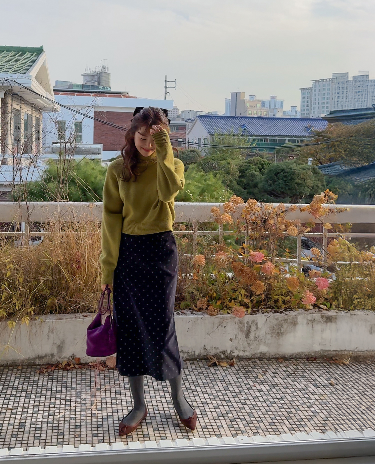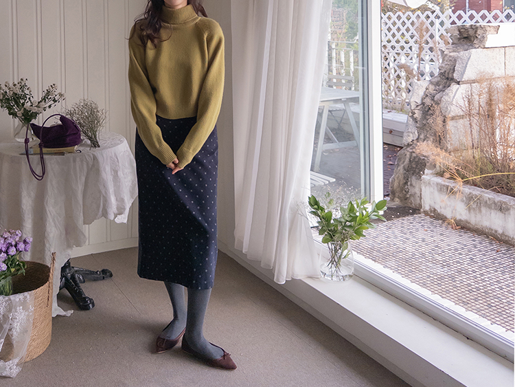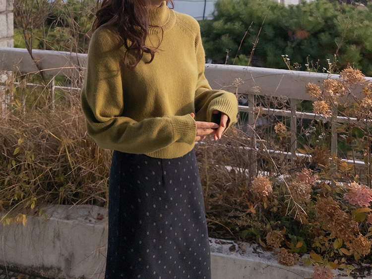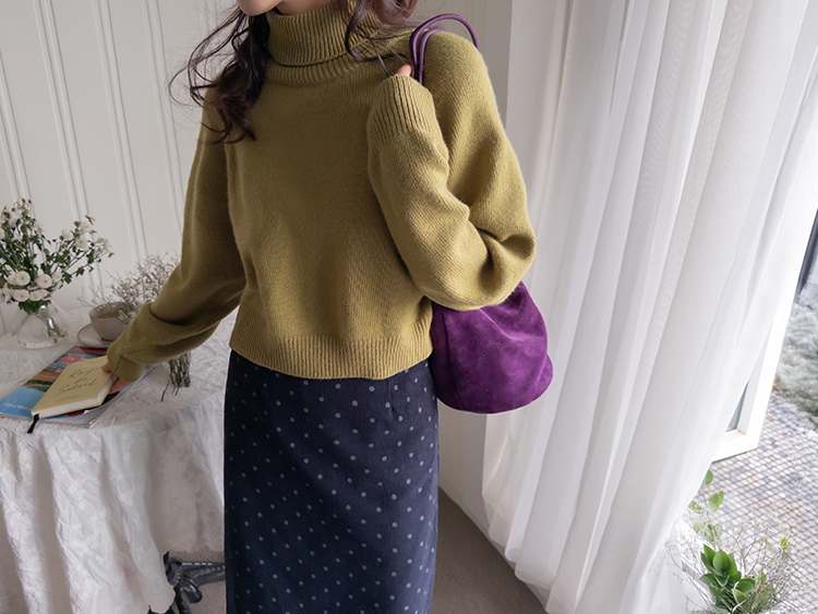 포근한 터치감의 울 하이넥 니트에요♥ 살짝 크롭한 기장으로 스커트나 팬츠 모두 깔끔하게 매치하기 좋구요~ 도톰한 두께감과 울 함유로 겨울에도 따뜻하게 입기 좋아요ㅎㅎ 하이넥 디자인으로 찬 바람도 끄덕 없구요!! 베이직한 디자인이라 휘뚜루 마뚜루 데일리하게 착용 가능하답니다^^