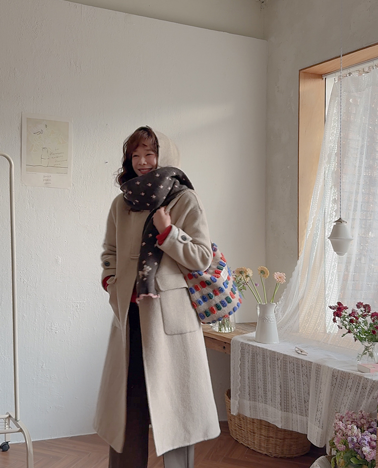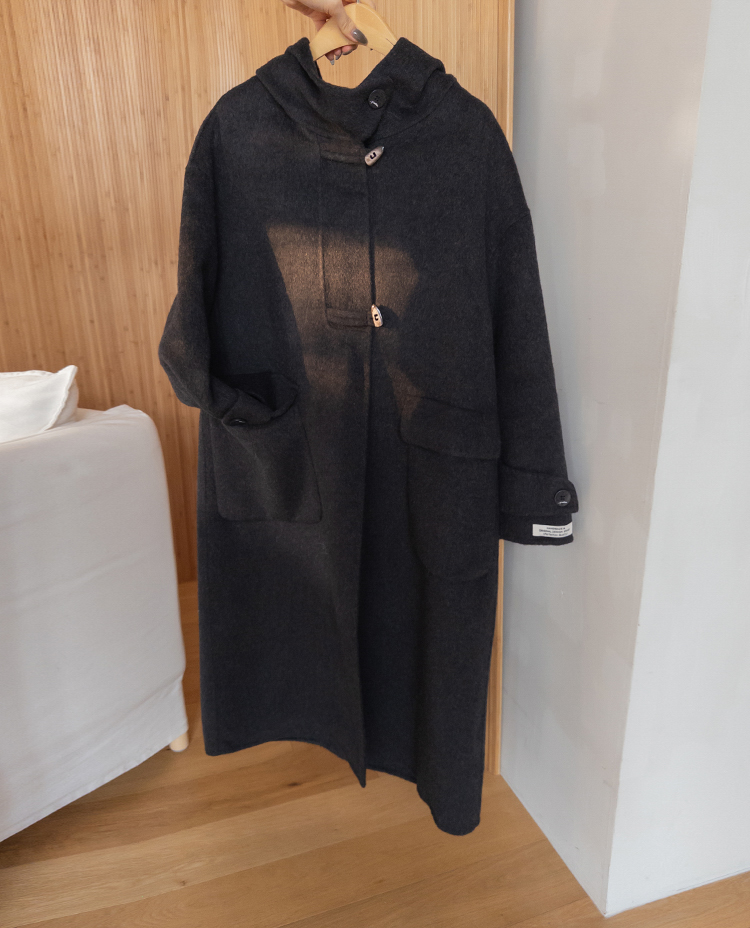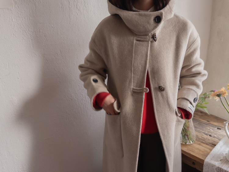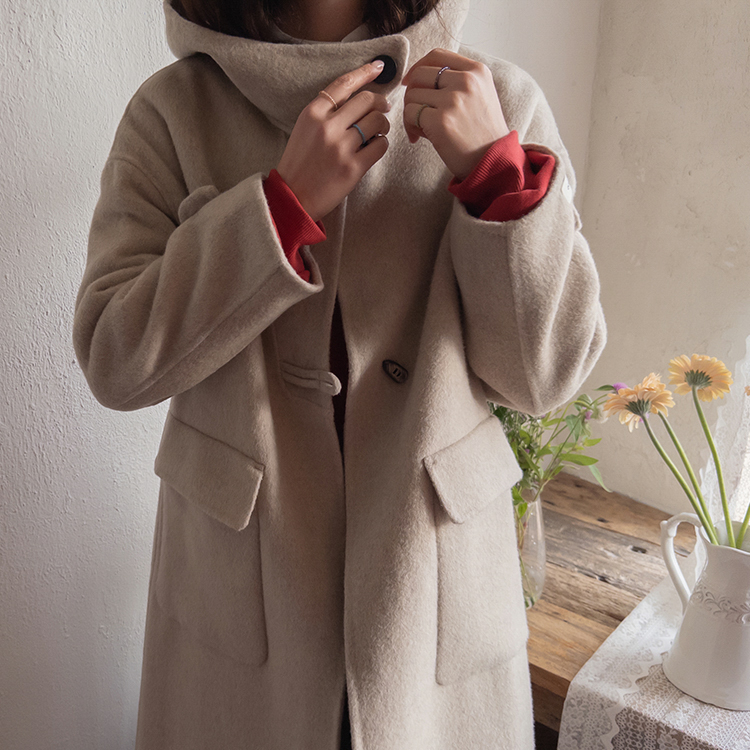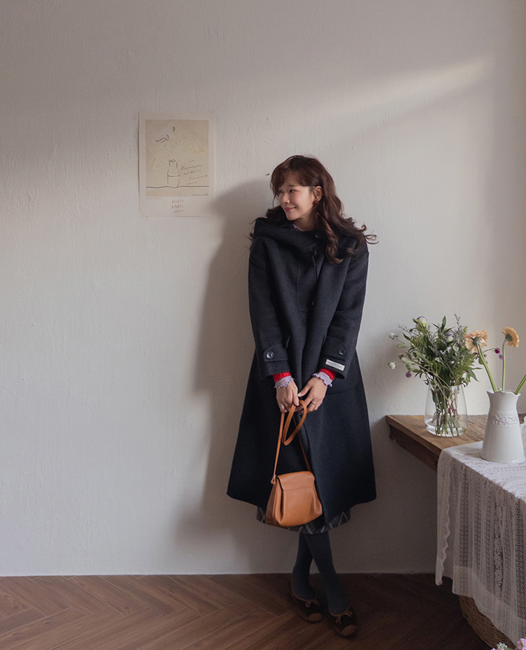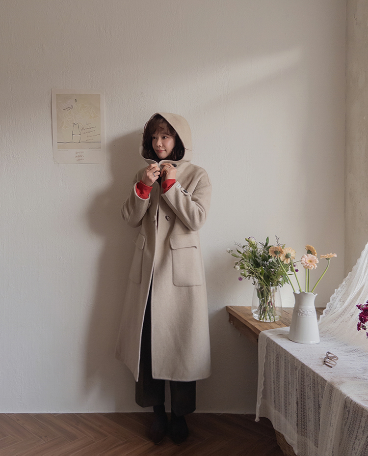 브랜드 못지 않은 하이퀄리티의 핸드메이드 코트 소개해드려요! 온기 가득한 울 80% 소재에 부드럽고 유연한 쉐입을 위해 텐셀을 믹스하여 포근하고 쾌적한 착용감을 느낄 수 있어요~ 여유 있는 크기의 후드와 빅포켓으로 더욱 따뜻하게 입어지고 더플 단추와 롱한 기장감으로 세련미까지 살려 소장미 가득하답니다! 목까지 감싸주는 하이넥 디자인으로 추운 날씨에 안성맞춤인데다 소매 비조 디테일까지 사소한 부분 하나하나 신경쓴 프리미엄 코트로 사심 가득담아 추천드려요~!