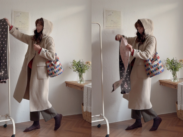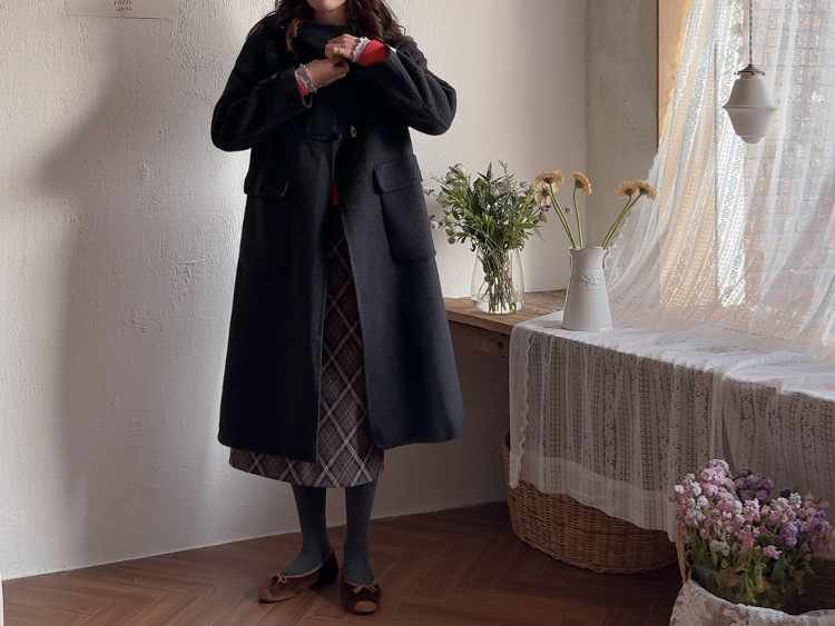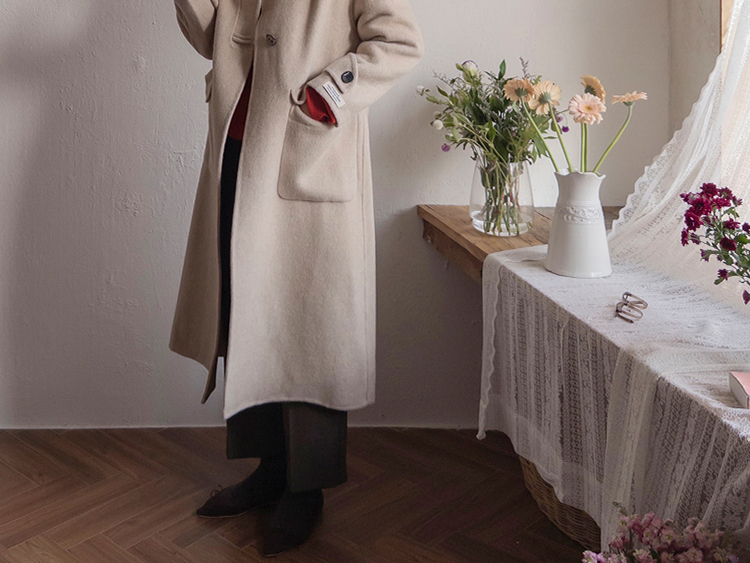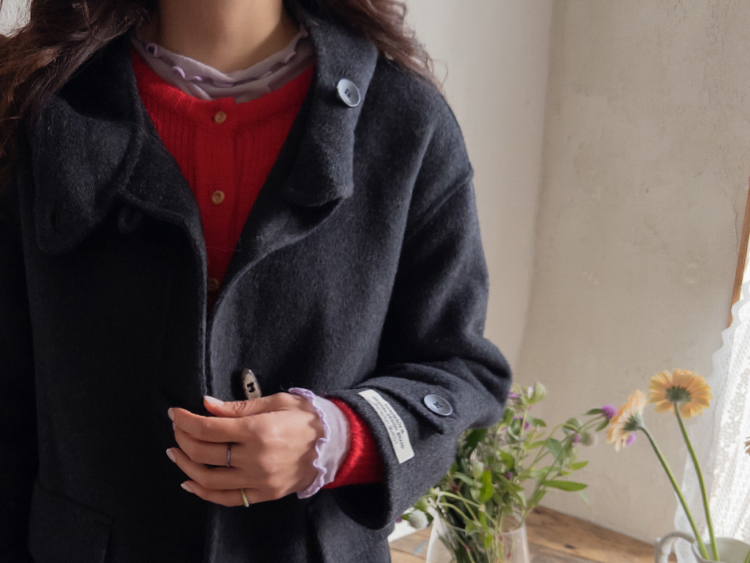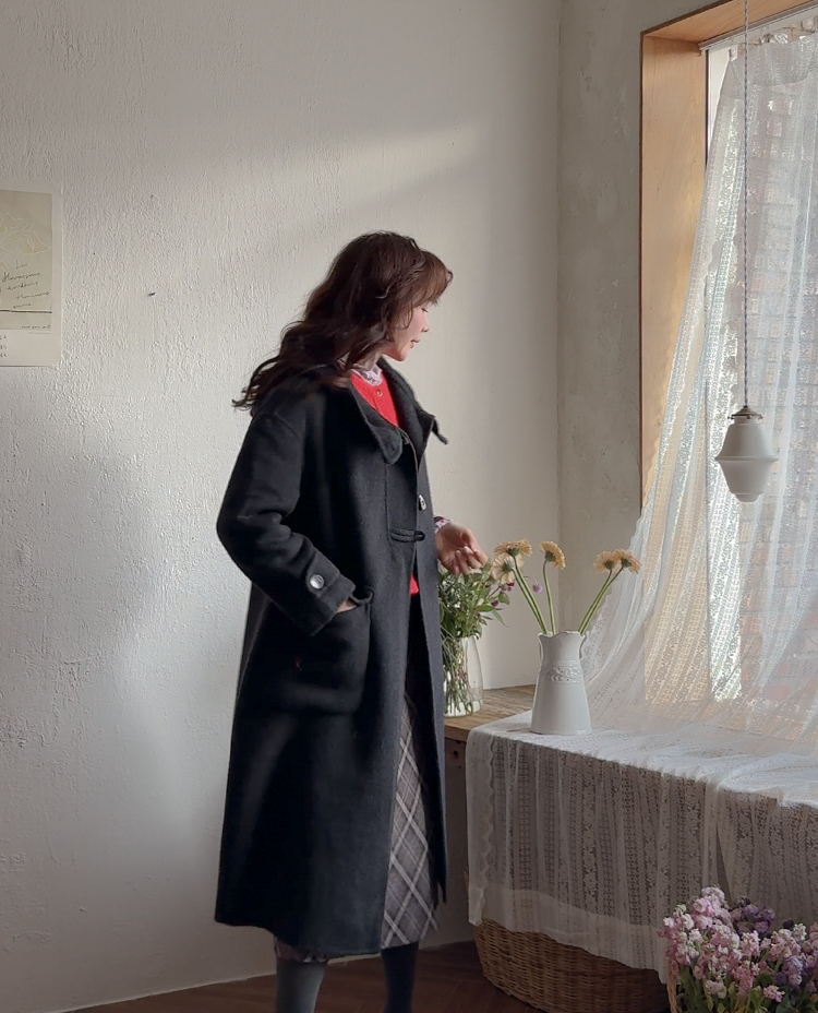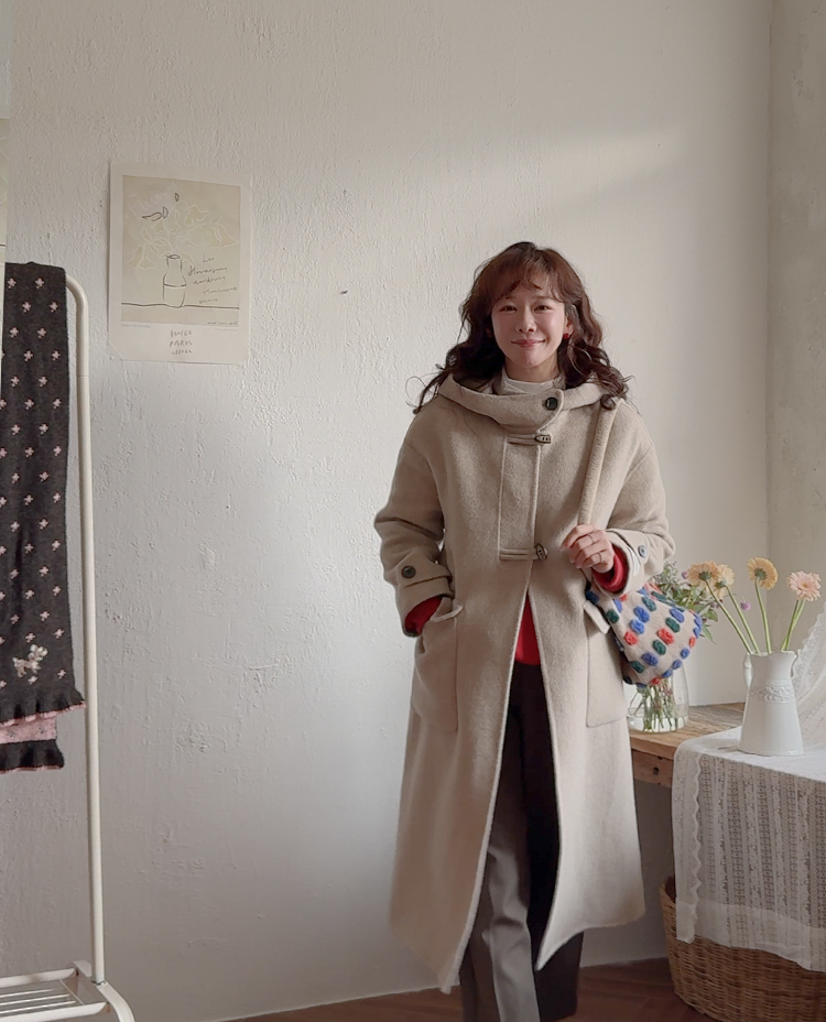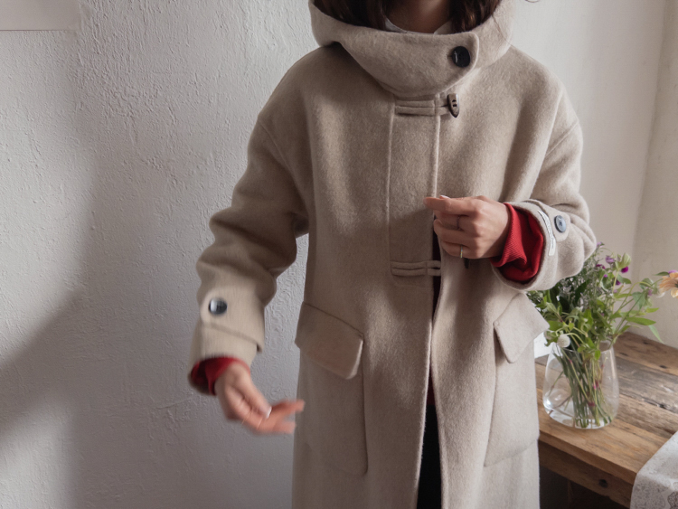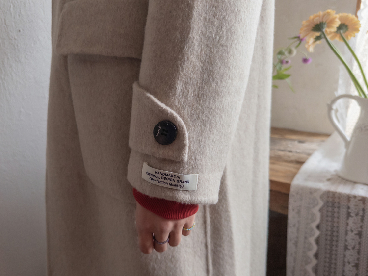 브랜드 못지 않은 하이퀄리티의 핸드메이드 코트 소개해드려요! 온기 가득한 울 80% 소재에 부드럽고 유연한 쉐입을 위해 텐셀을 믹스하여 포근하고 쾌적한 착용감을 느낄 수 있어요~ 여유 있는 크기의 후드와 빅포켓으로 더욱 따뜻하게 입어지고 더플 단추와 롱한 기장감으로 세련미까지 살려 소장미 가득하답니다! 목까지 감싸주는 하이넥 디자인으로 추운 날씨에 안성맞춤인데다 소매 비조 디테일까지 사소한 부분 하나하나 신경쓴 프리미엄 코트로 사심 가득담아 추천드려요~!