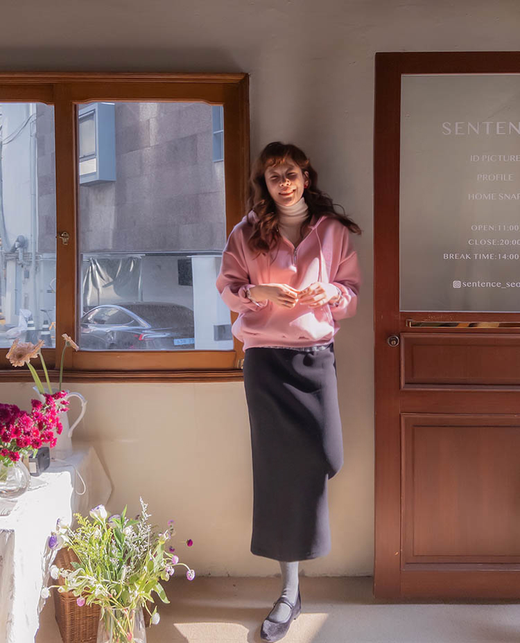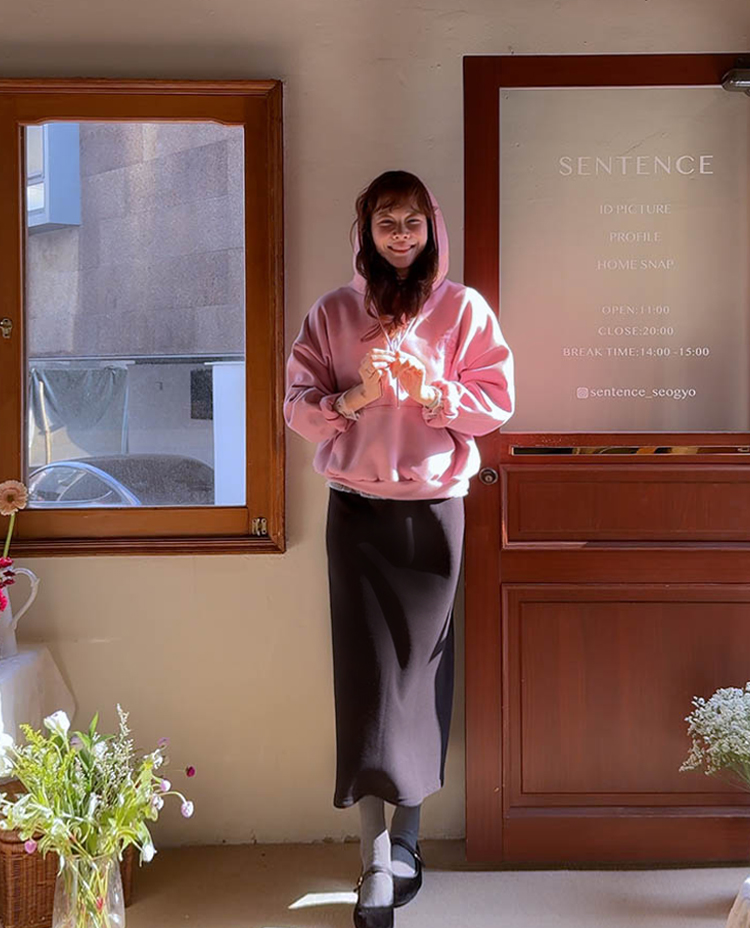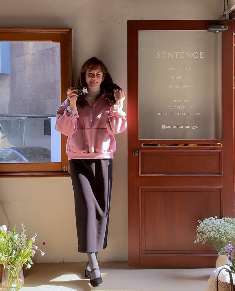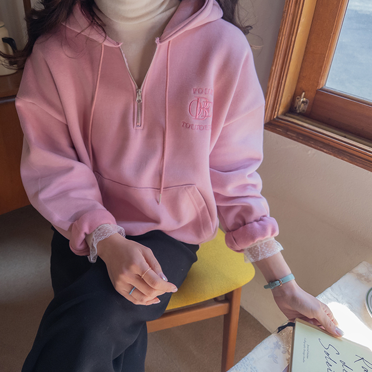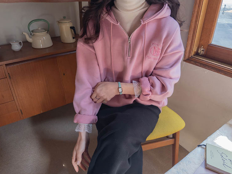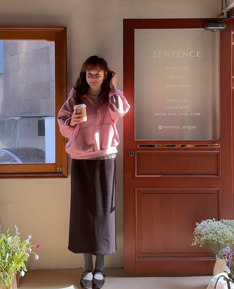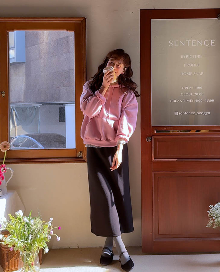 리린 감성의 러블리함과 포근함을 가득~ 담은 반집업 후드티 소개해 드려요 :) 보들~보들~한 속기모 안감으로 입는 순간 포근함이 느껴지는 아이템이에요☁️ 부드러운 터치감으로 피부 자극 없이 편안하게 착용 가능해요:) 요 아이템의 포인트는 바로 하프 집업 디테일! 지퍼를 조절해 넥 라인의 분위기를 취향에 맞게 연출해요*.* 완전히 올리면 더욱 따뜻하게~ 살짝 내려 입으면 내추럴한 캐주얼 무드로 특히 레이어드 티와 함께 매치하면 스타일리쉬함 UP!! 전체적으로 살짝 아방한 핏이라 귀엽고 포근한 실루엣이 연출되어 데일리용으로 부담 없이 입기 좋답니다❤️ 데일리하게~ 꾸안꾸룩으로 여기저기 매칭하기 좋은 만능템! 굿초이스 해주세요~♥