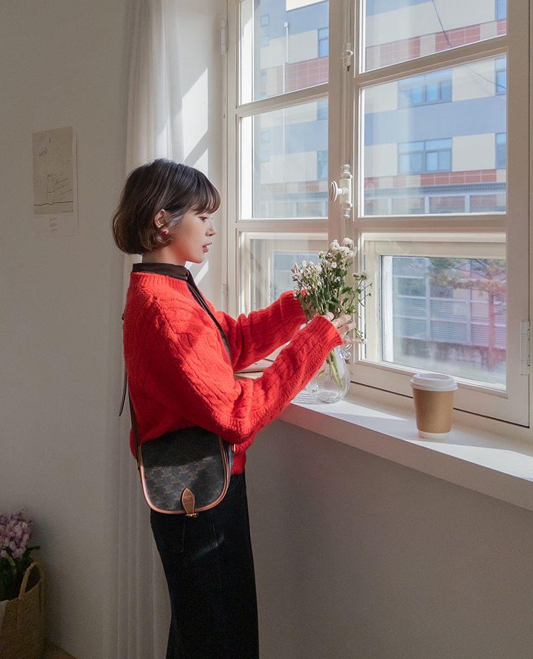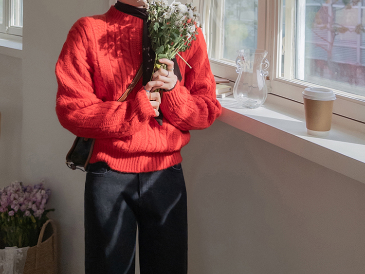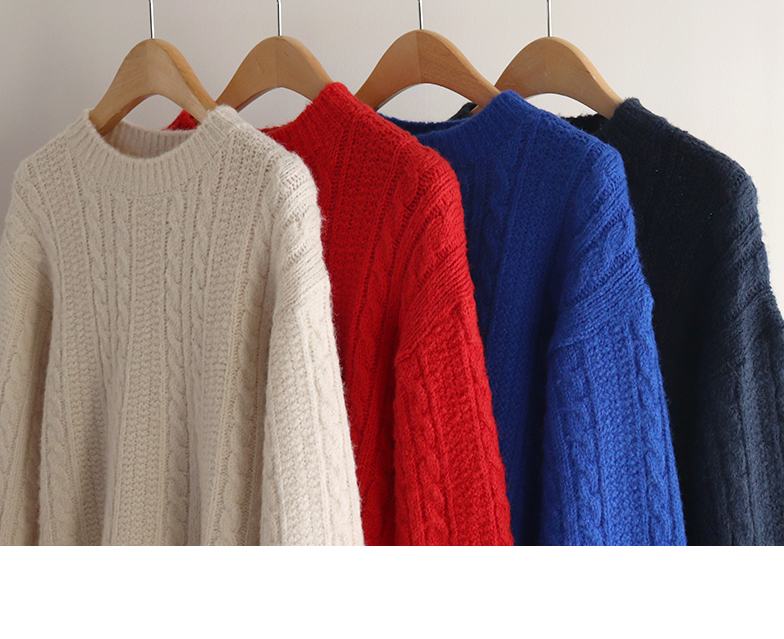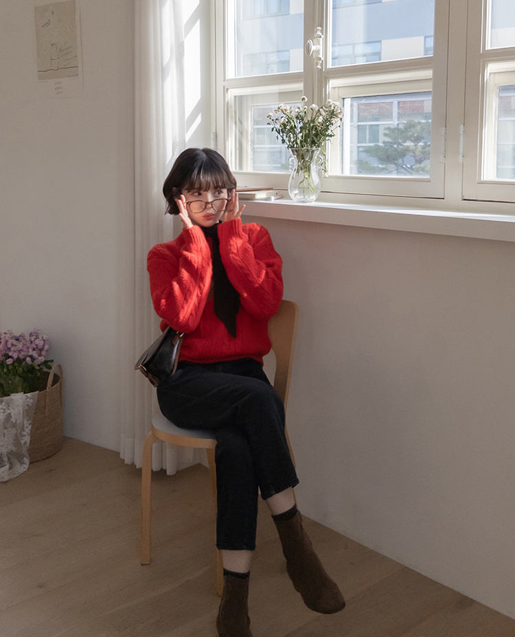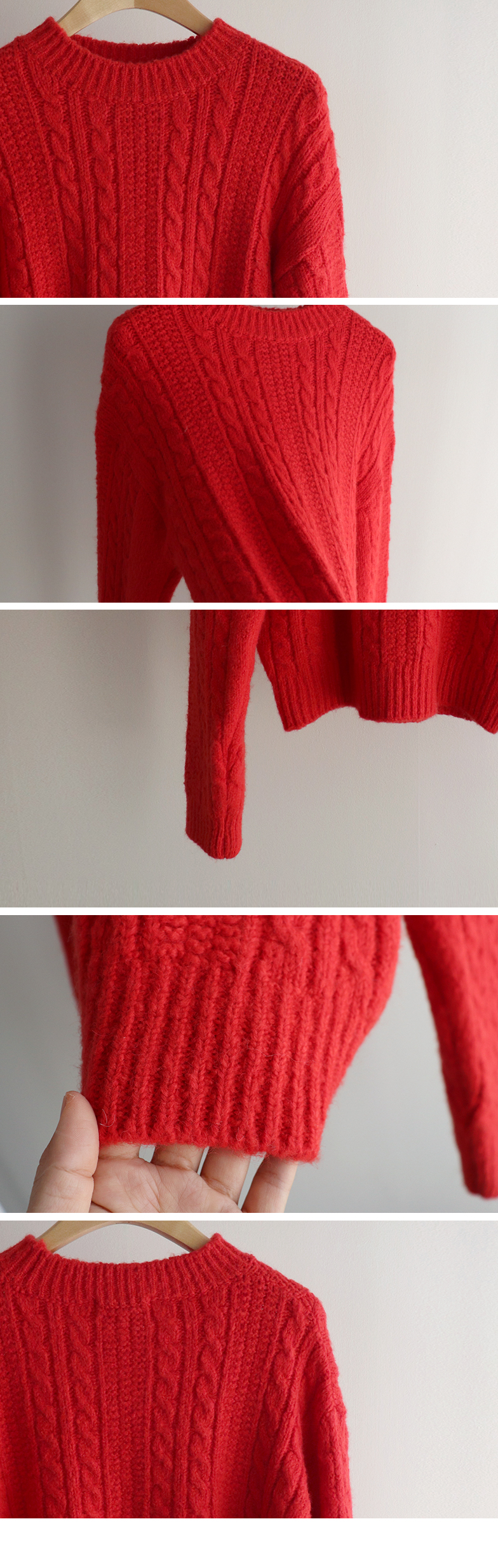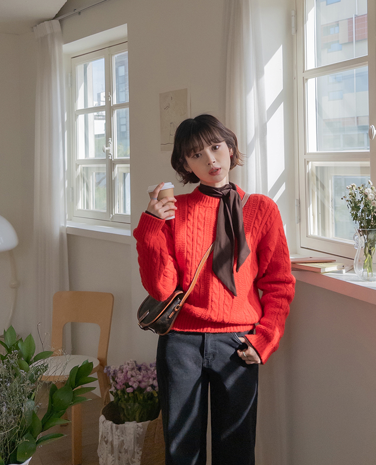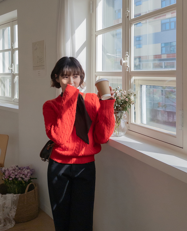 얇지 않고 적당히 도톰한 두께의 꽈배기 디자인 니트에요 :) 울이 함유된 울블랜더 원단으로 부드러운 터치감과 함께 하루종일 포근하게 감싸준답니다~♡.♡ 레드,블루,아이보리,네이비 4가지 색상으로 준비되어 있구요~ 특히 레드 색상은 쨍하고 맑은 레드로 연말, 크리스마스 느낌이 나서 포인트로 주기 좋은 색상이에요!🎄 적당히 넉넉한 품으로 레이어드해서 입기 좋고 단독으로 입어도 아우터 안에 껴입기 좋은 두께감이에요👍👍 꽈배기니트는 계절 타지 않고 여기저기 매치하기 좋아 하나쯤 장만하시면 전혀 돈아깝지 않은 아이템이랍니다>.< 리린에서 요 아이템 강력 추천드려요~~!!💕