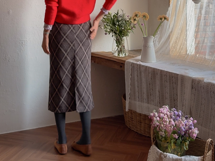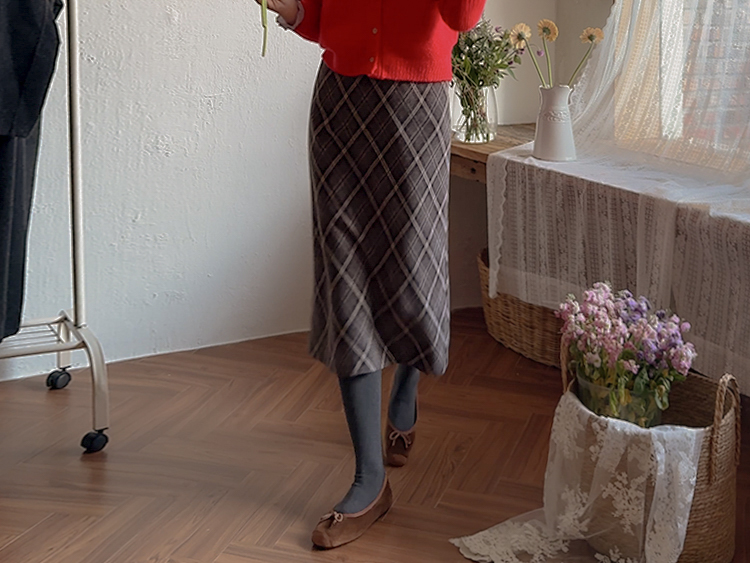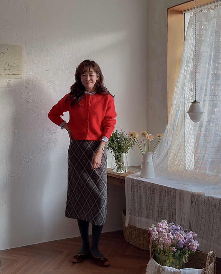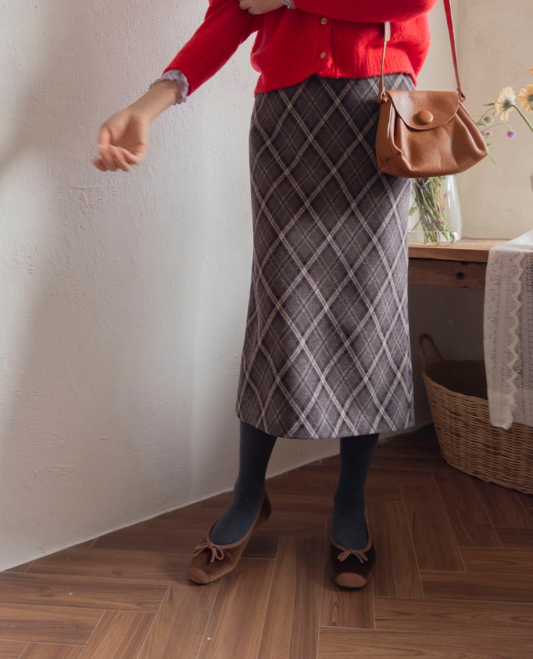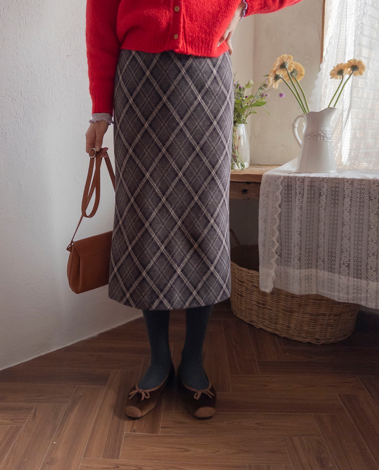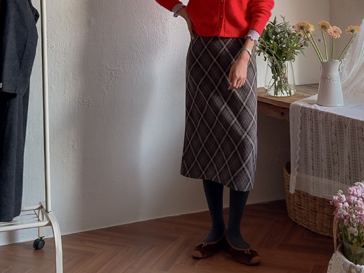 도톰~한 소재감에 부드러운 터치감이 더해져 FW시즌에 함께하기 좋은 체크 스커트 보여드려요~! 요 스커트, 도톰한 두께감으로 찬바람이 드는 겨울에도 따듯하게 착용되는 아이인데요 사선쉐입의 다이아몬드 체크 패턴으로 체크이지만 특별한 무드를 더해주는데다 부드러운 터치감과 탄탄하면서도 유연한 원단으로 실루엣은 예쁘게 잡아주면서 따닷하고 편하게 착용되는 스커트에요:) 허리는 뒷밴딩으로 제작해주어서 편하면서도 실루엣도 예쁘게 완성되도록 신경써 주었구요 H라인같이 깔끔하지만 밑단만 살~짝 퍼지는 아웃핏으로 여성스러우면서도 단정한 무드로 연출된답니다ㅎㅎ 겨울시즌 데일리는 물론, 특별한 날에도 즐기기 좋은 스커트 찾으셨던 분들이라면 꼬~옥 눈여겨 봐주세요!