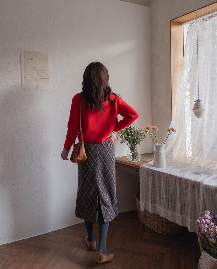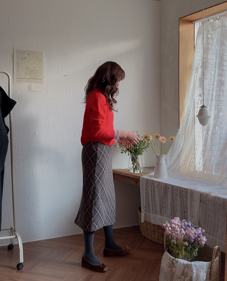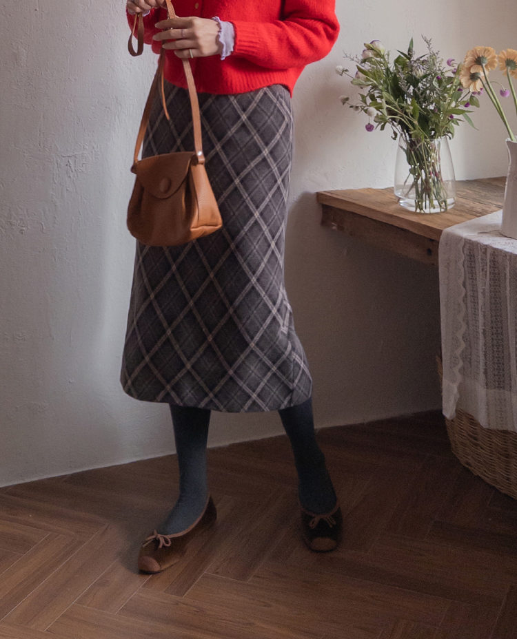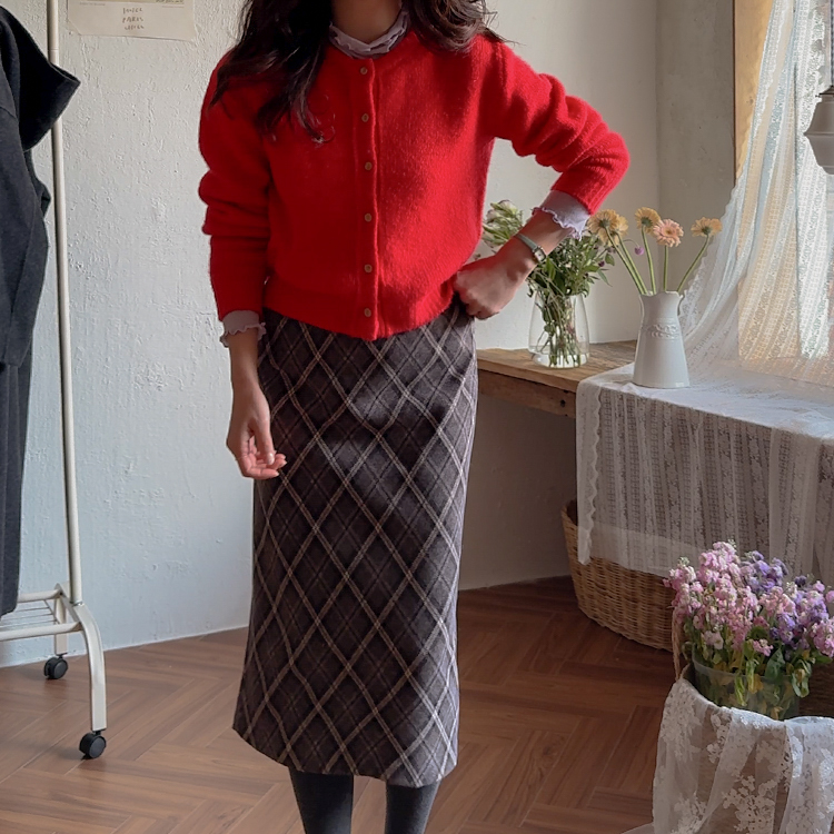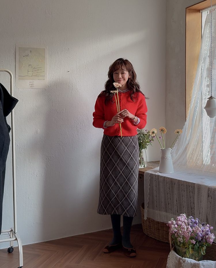 도톰~한 소재감에 부드러운 터치감이 더해져 FW시즌에 함께하기 좋은 체크 스커트 보여드려요~! 요 스커트, 도톰한 두께감으로 찬바람이 드는 겨울에도 따듯하게 착용되는 아이인데요 사선쉐입의 다이아몬드 체크 패턴으로 체크이지만 특별한 무드를 더해주는데다 부드러운 터치감과 탄탄하면서도 유연한 원단으로 실루엣은 예쁘게 잡아주면서 따닷하고 편하게 착용되는 스커트에요:) 허리는 뒷밴딩으로 제작해주어서 편하면서도 실루엣도 예쁘게 완성되도록 신경써 주었구요 H라인같이 깔끔하지만 밑단만 살~짝 퍼지는 아웃핏으로 여성스러우면서도 단정한 무드로 연출된답니다ㅎㅎ 겨울시즌 데일리는 물론, 특별한 날에도 즐기기 좋은 스커트 찾으셨던 분들이라면 꼬~옥 눈여겨 봐주세요!