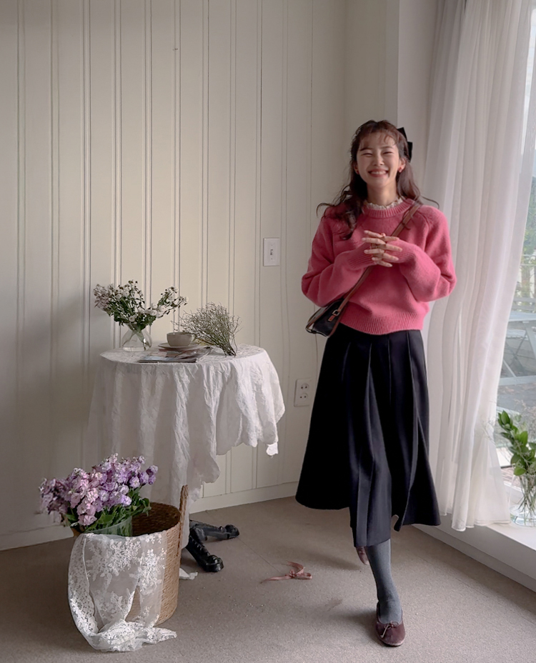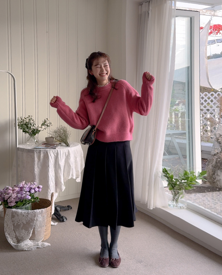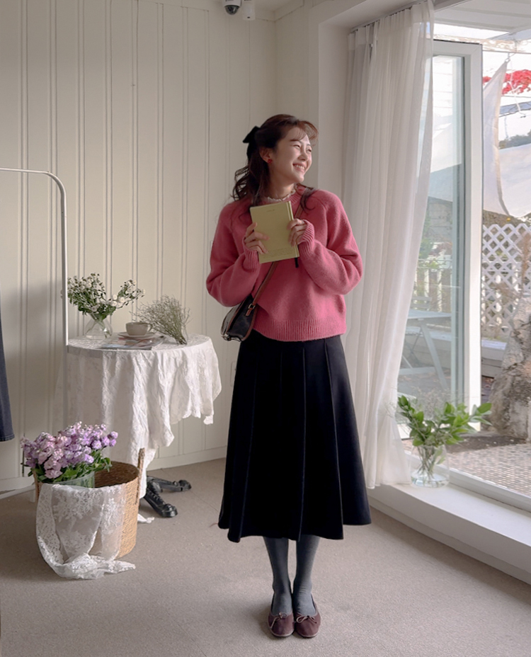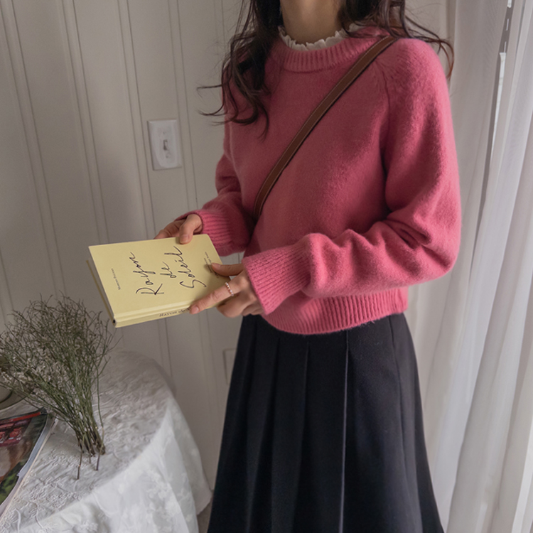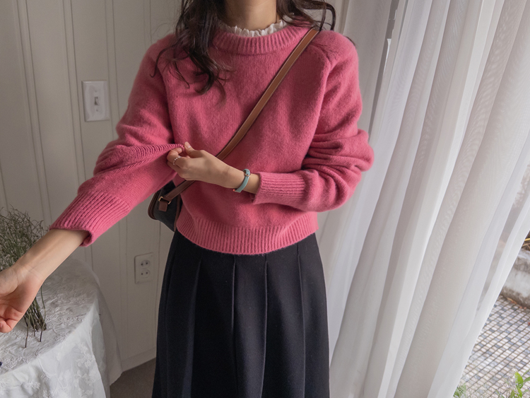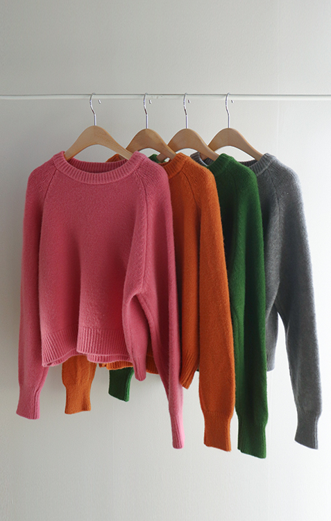 포근한 감촉이 느껴지는 라운드 니트에요♥ 레글런 디자인으로 자연스레 떨어져 여리여리한 실루엣을 보여주어요ㅎㅎ 포슬포슬한 터치감이 겨울에 따뜻하게~ 여유있는 핏으로 군살 완벽커버OK 심플한 디자인 속에 담백한 디테일이 더해져 어떤 하의에도 조화롭게 잘 어울리는 데일리 니트랍니다^^