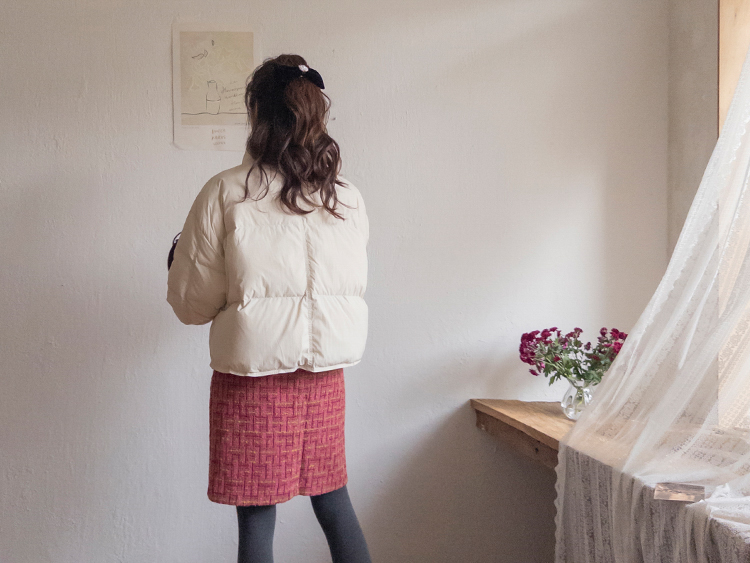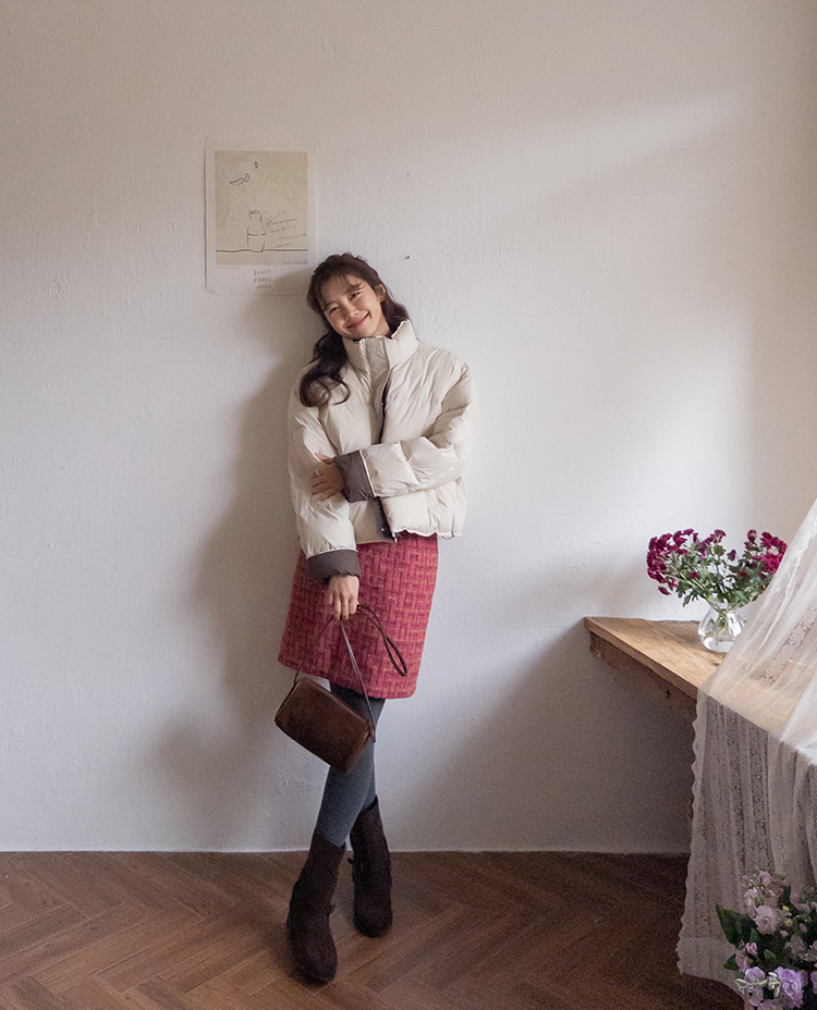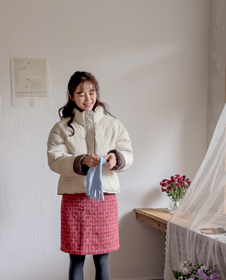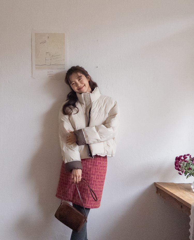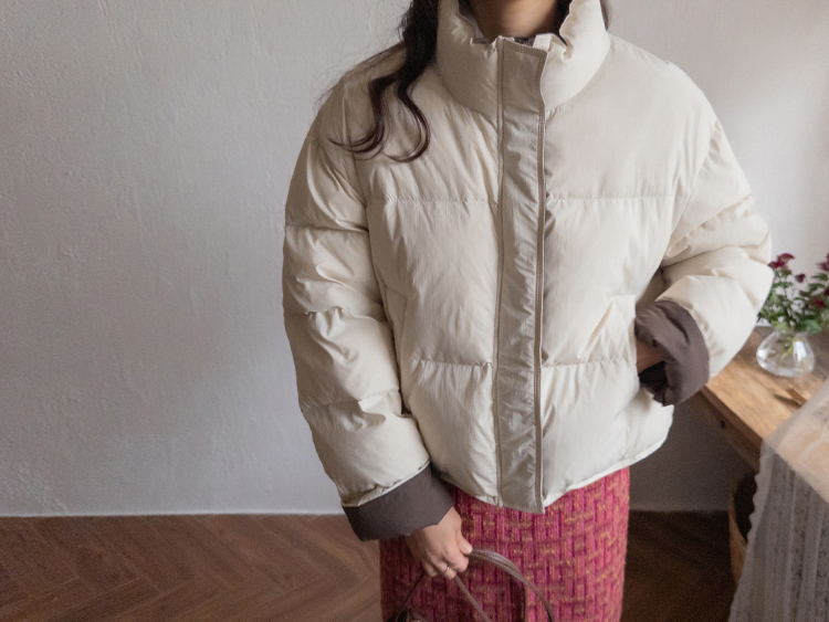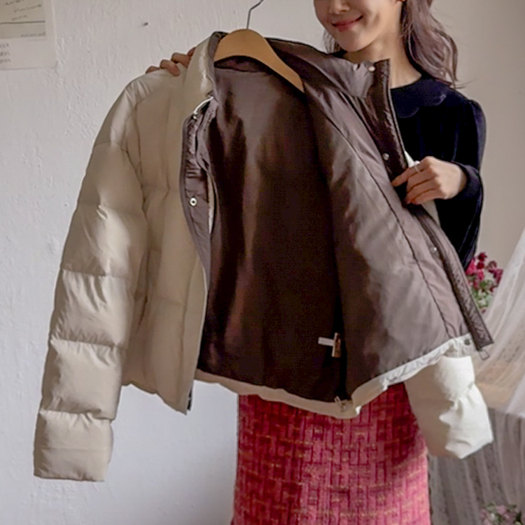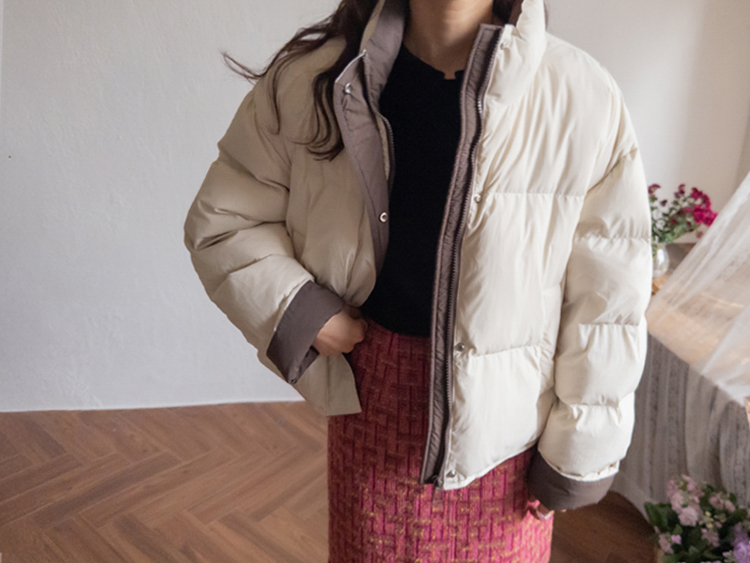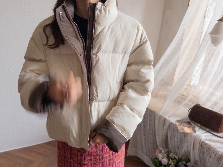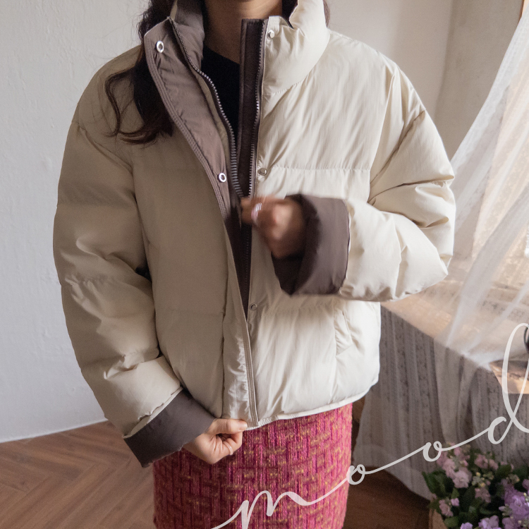 [Sensuous color combination key point Padding ♥] [Warmth without worrying about cold waves with 100% goose down ♨] [No wind, no double lining!!] [Simple design, easy to take anywhere~]