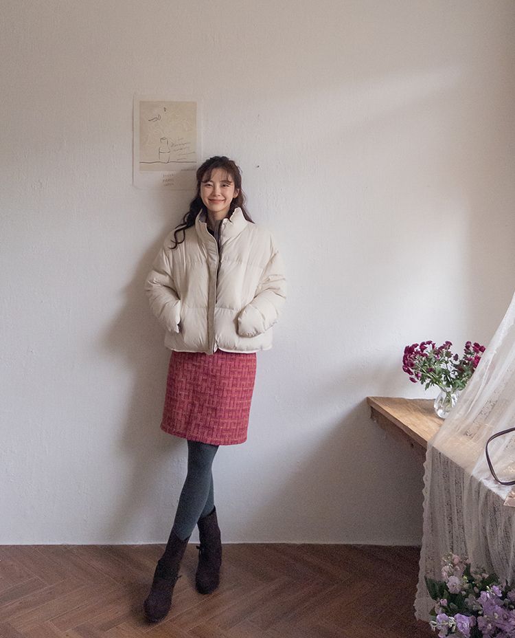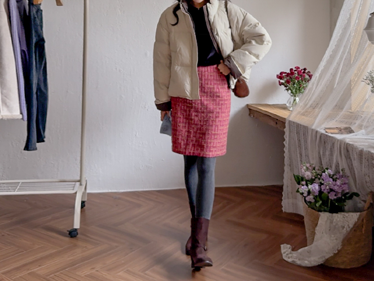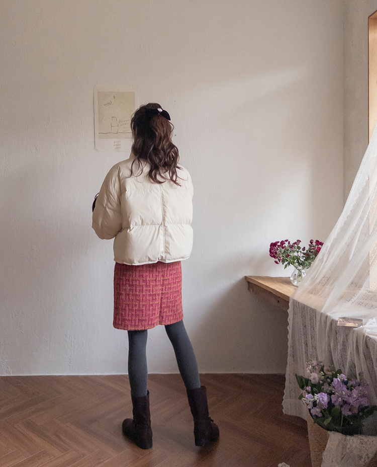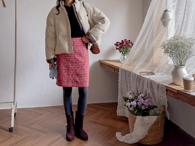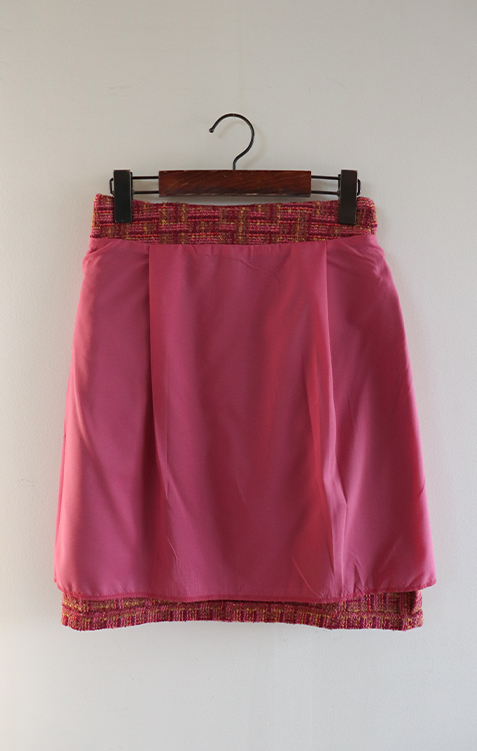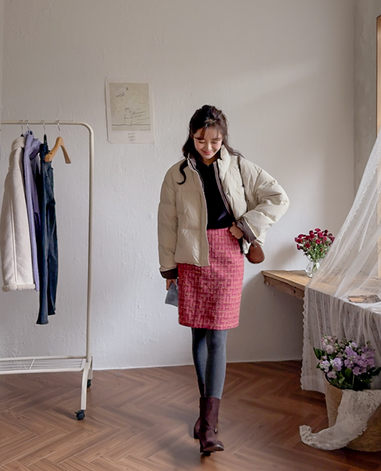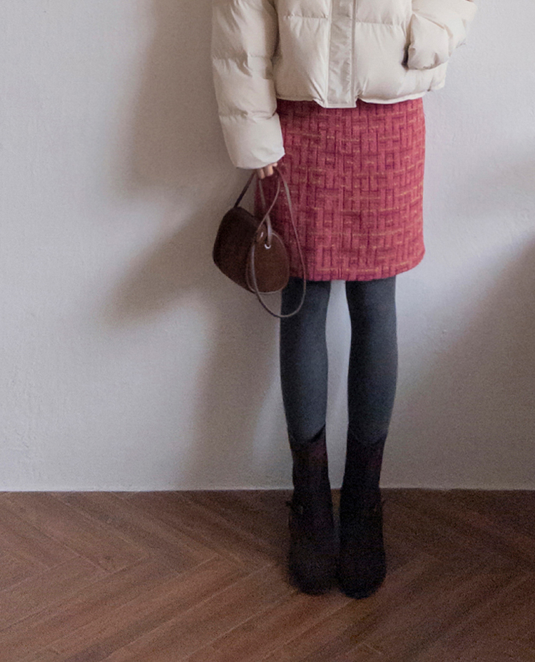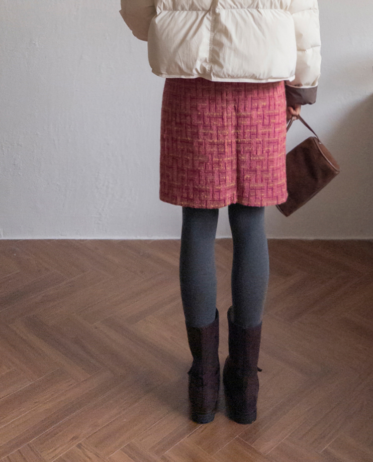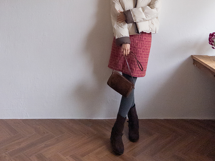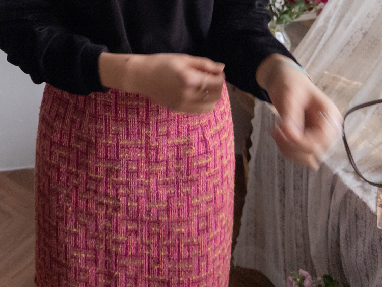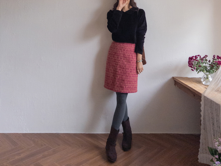 다채로운 매력의 실컬러와 패턴으로 흔하지 않은 매력의 LIN.MADE 트위드 스커트 보여드려요~! 트위드의 계절이 점점 다가오고 있는데요~ 톡톡한 두께감으로 지금부터 봄 시즌까지 활용도 높게 입어질 아이에요ㅎㅎ 요 스커트는 원단이 너무 특별해요*.* 가로세로가 믹스된듯 지그재그 패턴에 옐로우와 핑크가 믹스된 트위드 원단으로 컬러까지 넘 예쁘답니다:) 미니와 롱 중간정도의, 힙라인과 허벅지를 커버하는 미디 길이감으로 모델기준 무릎 위로 올라오는 기장이구요~ 미니스커트가 부담스러우셨던 분들도 안정적이고 부담없이 착용하기 좋아서 강추! 콘솔지퍼로 깔끔한 오픈클로징까지 가능해 전체적인 아웃핏도 단정해서 하객룩, 격식룩으로도 손색없답니다~! 컬러는 비비드한 핑크로 준비했어요~ 요 스커트만으로 룩에 포인트를 주기 좋은데다 다가오는 봄 시즌까지 쭈욱 즐기기 좋아 추천드려요~♡