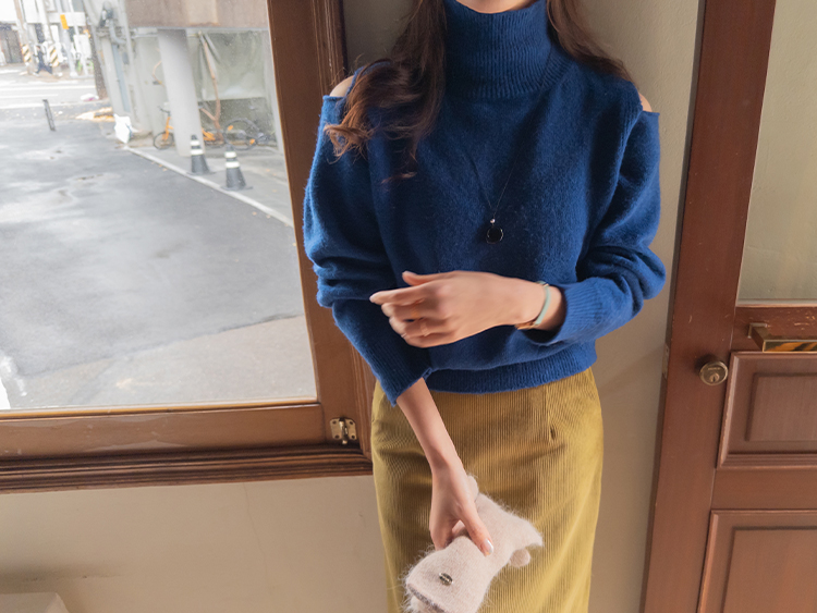어깨가 드러나는 오프숄더 디테일로 여성스럽고 은은하게 섹시한 무드를 연출해주는 폴라니트에요!💕 목을 따뜻하게 감싸주는 폴라넥으로 한겨울에도 추위 걱정 없구요~ 코트나 숏패딩에 입으면 보온성은 물론 룩에 포인트가 되어 코디의 완성도를 더욱 높여준답니다*.* 어깨를 살짝 드러냈을 뿐인데도 밋밋한 분위기에서 여성스러운 분위기가 물씬 나는 아이템이에요>.<♥ 데이트룩에도~ 데일리룩에도~ 과하지 않게 꾸민 느낌이 나서 꾸안꾸룩에 정석인 요 니트!! 굿 초이스 해주세요~♥