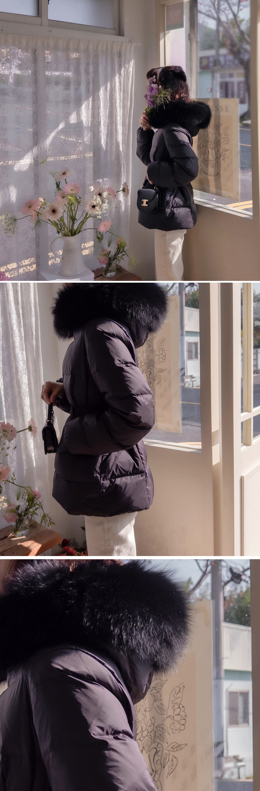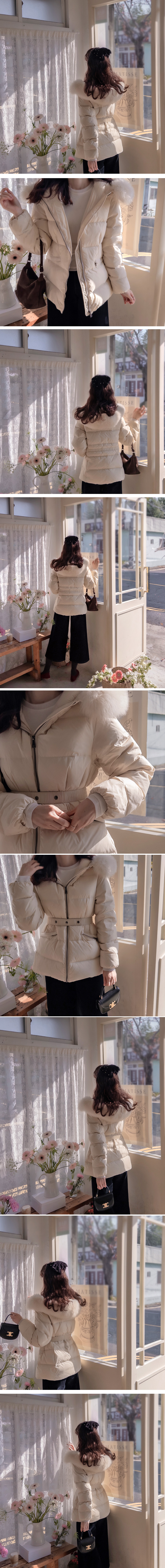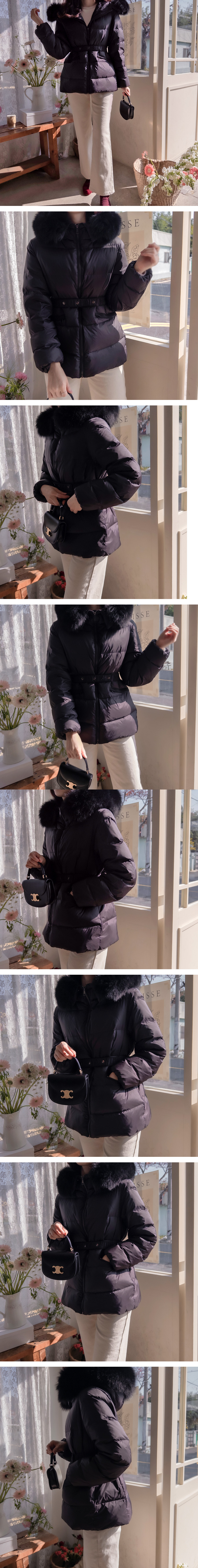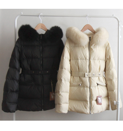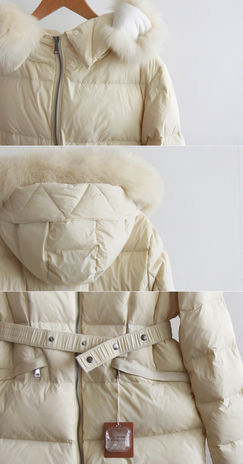 [Real Fox Fur: Detachable] [Brand Quality Brand Factory] [Filling: 90% duck down, 10% feather] [Waist strap set: Detachable] [Goose down filling for a warm and cozy padding that's great for the middle of winter] [High-quality, warm, and light duck down padding] [Duck down padding with a thick feel that's great to wear in winter, with a pretty line]
