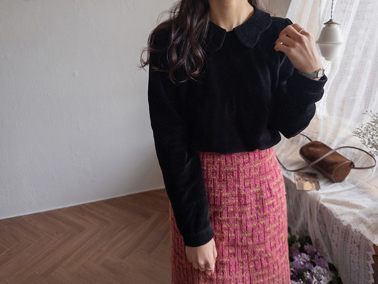고급스러운 벨벳 블라우스로 미리 하는 연말 준비! 리린과 함께해요 ㅎㅎ 부드럽고 유연한 소재감으로 흐르듯~ 자연스러운 실루엣으로 고급스러워 보이더라구요 ^^ 둥근 카라디자인으로 단정한듯~ 깔끔하며 러블리무드가 느껴지는 매력적인 블라우스 !! 봉긋한 소매라인으로 군살커버도 해주는 요 블라우스 ~ 굿초이스 해주세요~♥