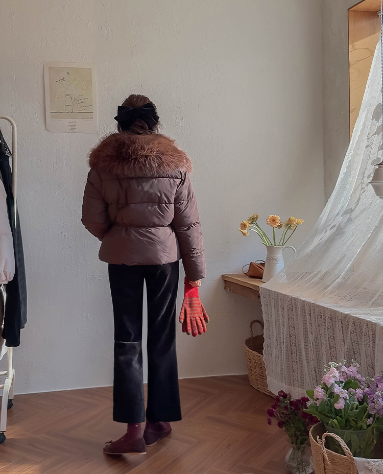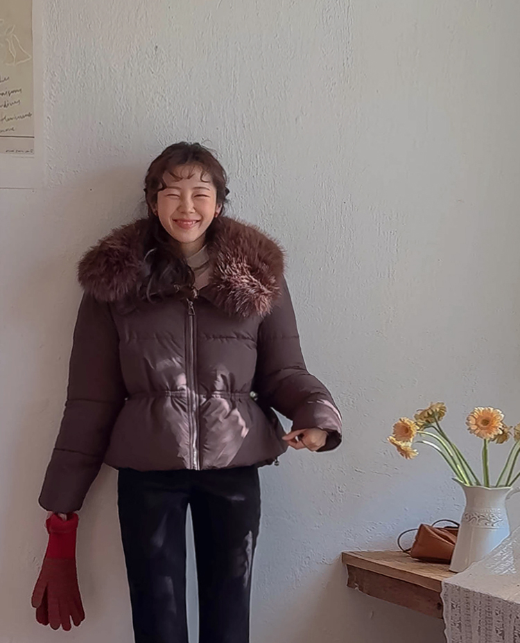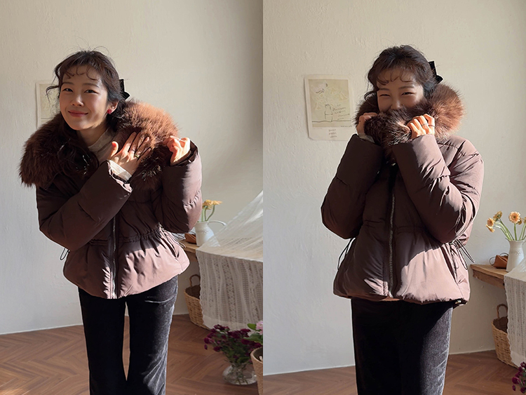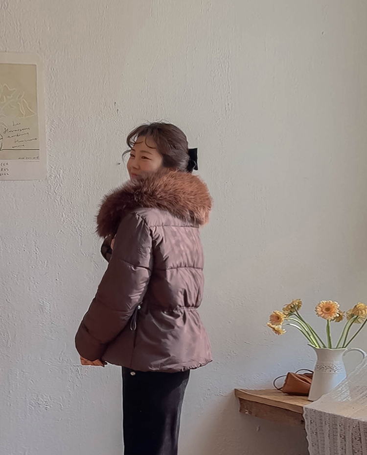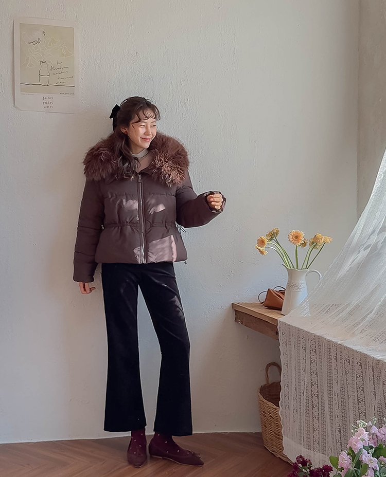 보들~보들한 촉감의 풍성한 퍼 카라 디테일이 살아있는 패딩이에요 :) 특히 풍성한 퍼 카라가 페이스라인 근처에 있어 얼굴은 더욱 작아보이게~ 은은한 고급스러움까지 느껴진답니다!!*.* 뚠뚠하고 투박한 캐주얼한 느낌의 패딩이 아니라 전체적으로 슬림하게 떨어지는 실루엣으로 부해보임이 적어 부담 없는 패딩이에요~^^ 브라운, 블랙 두가지 색상으로 준비되어 있구요~ 트렌디한 숏 기장감으로 롱스커트, 슬랙스, 트레이닝 팬츠 다양하게 매치하기 좋아 활용도가 아주 높답니다!! 굿초이스 해주세요~^^