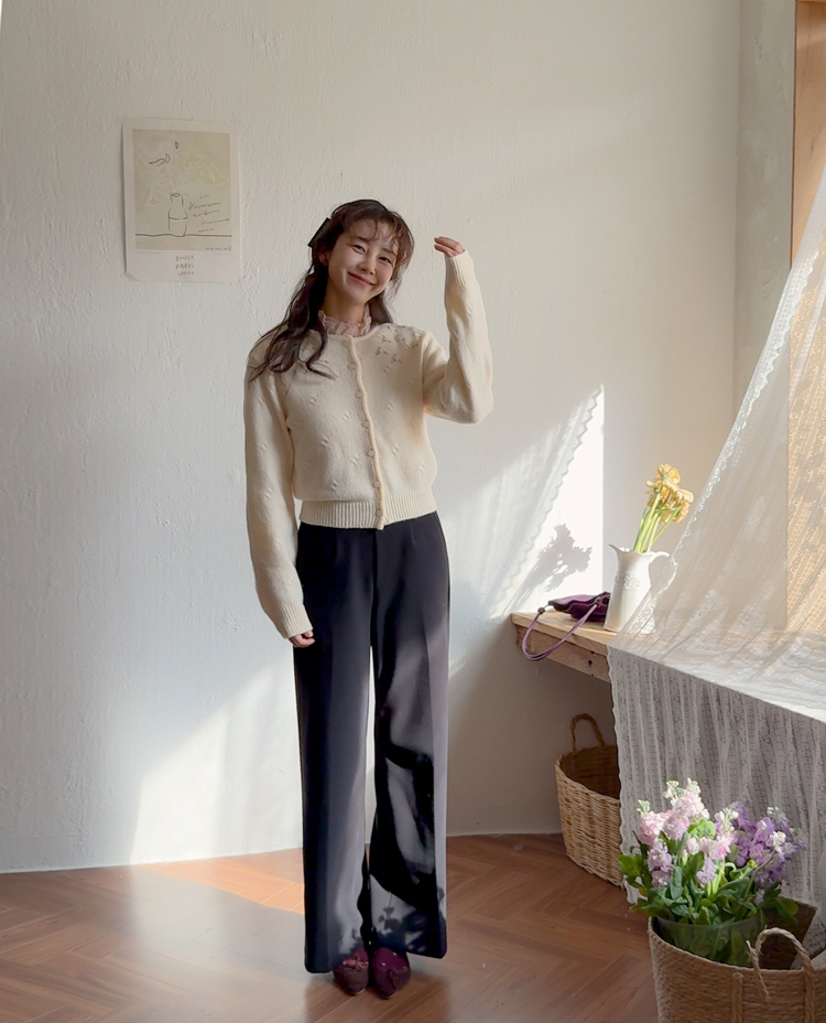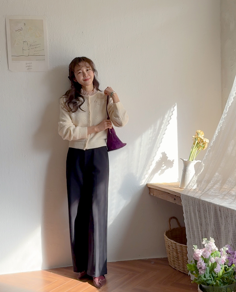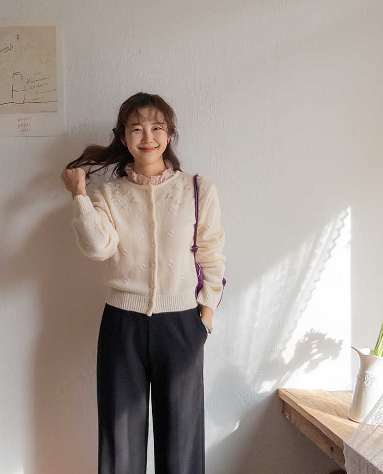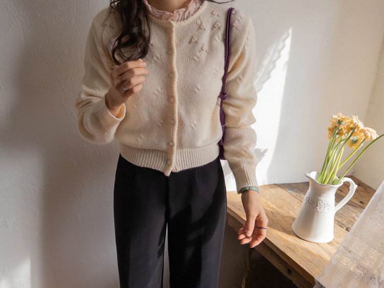 [[Embroidery details that are meticulously sewn one by one] [Contains 65% soft and cozy wool] [Creates a feminine and lovely mood]