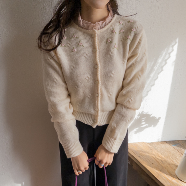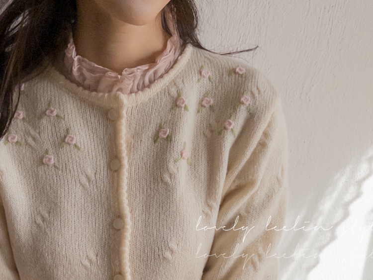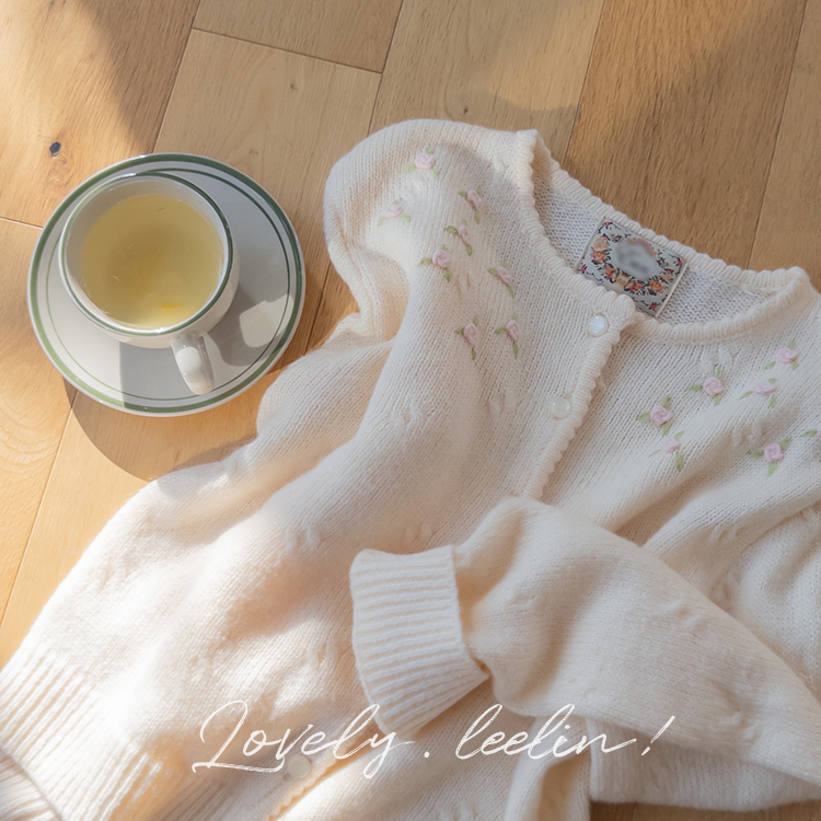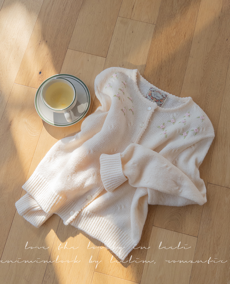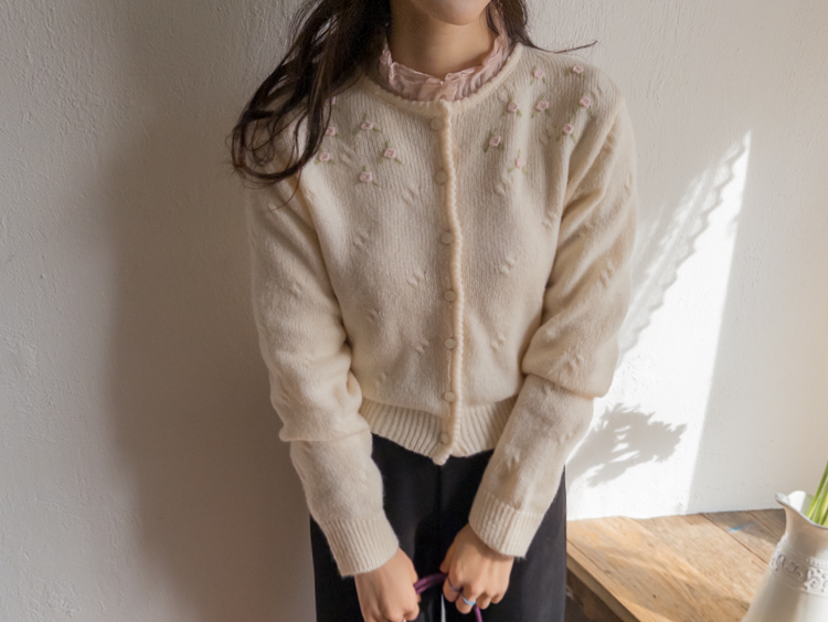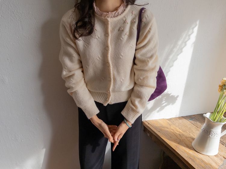 [Wool65%] Lovely Mood Flower Embroidery Cardigan [size: F(55~66)]