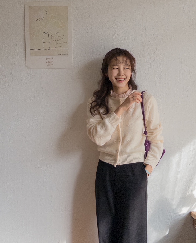 정성스러운 디테일이 돋보이는 니트가디건 이에요~♡.♡