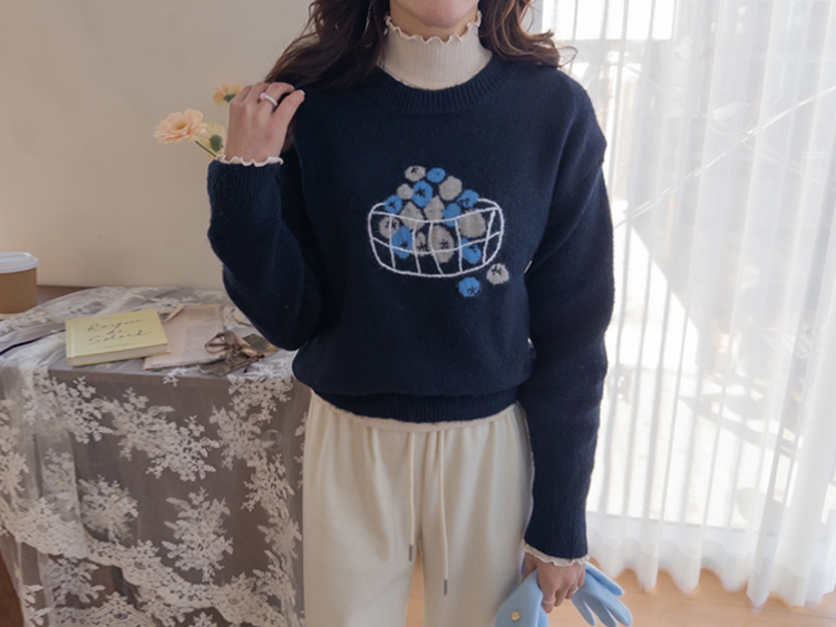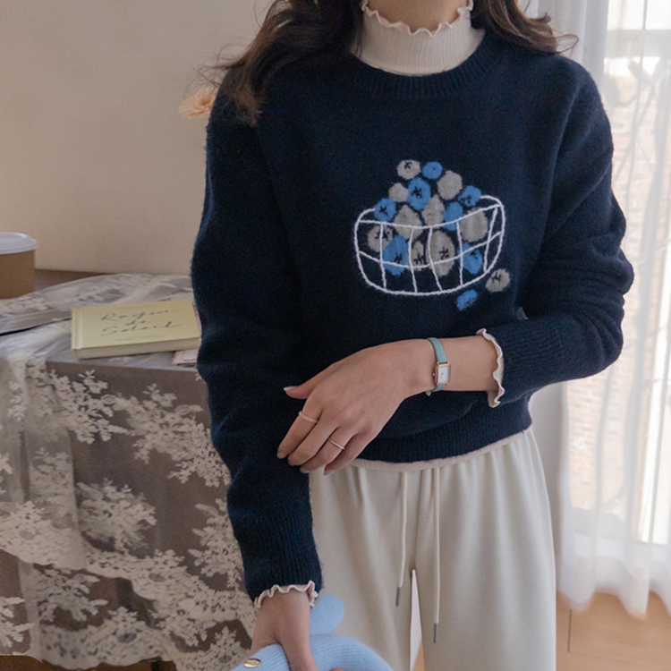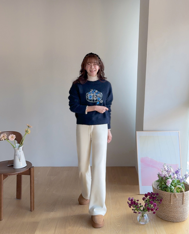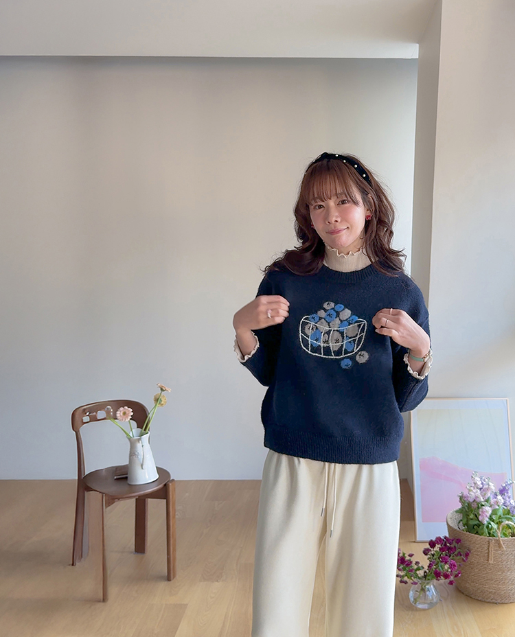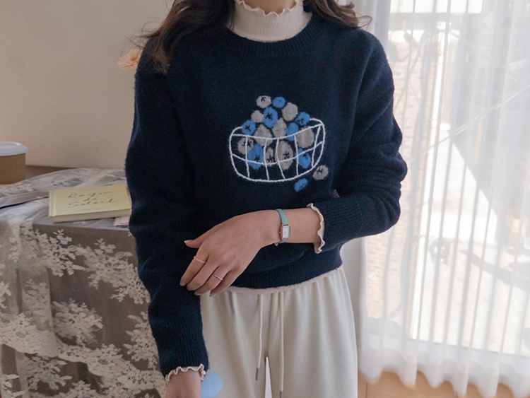 포근하면서도 러블리한 열매 프린팅에 포근한 겨울감성이 물씬~느껴지는 니트에요~^.^💙❄️ 울블랜드 소재로 가볍고 포근함이 느껴지는 텍스처구요~ 데일리하고 베이직한 디자인으로 팬츠, 스커트 다양하게 매치하기 좋아 활용도가 높은 아이템이에요~*.* 네이비, 그레이, 오트밀 3컬러 모두 부담 없이 즐기기 좋은 차분한 컬러감으로 여기저기 입기 좋아 올 겨울 교복템 등극이랍니다>.<!! 굿 초이스 해주세요~♥