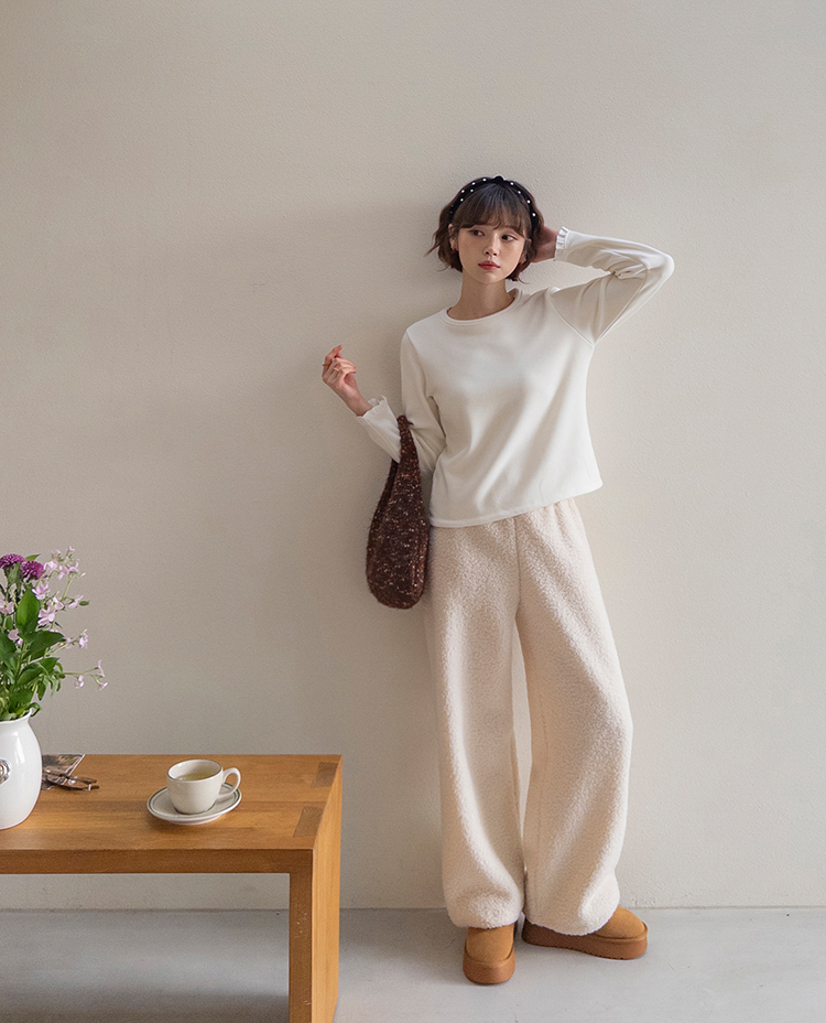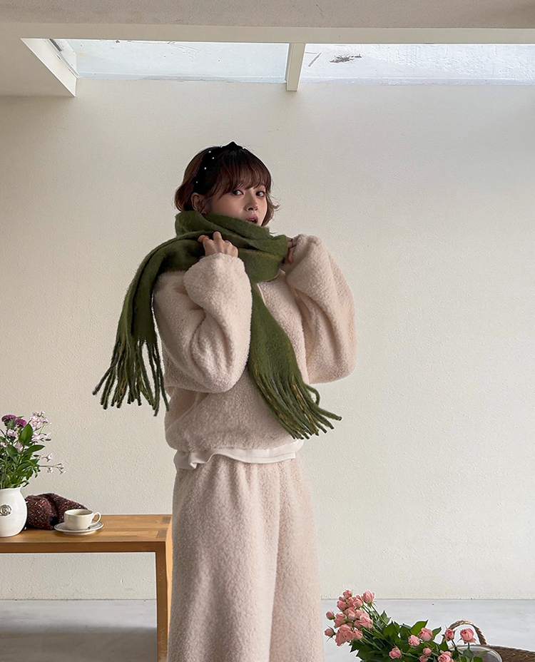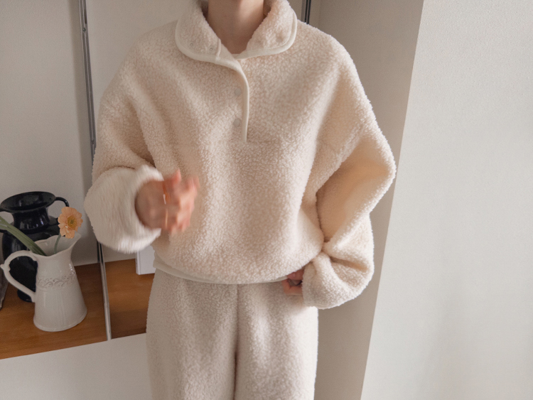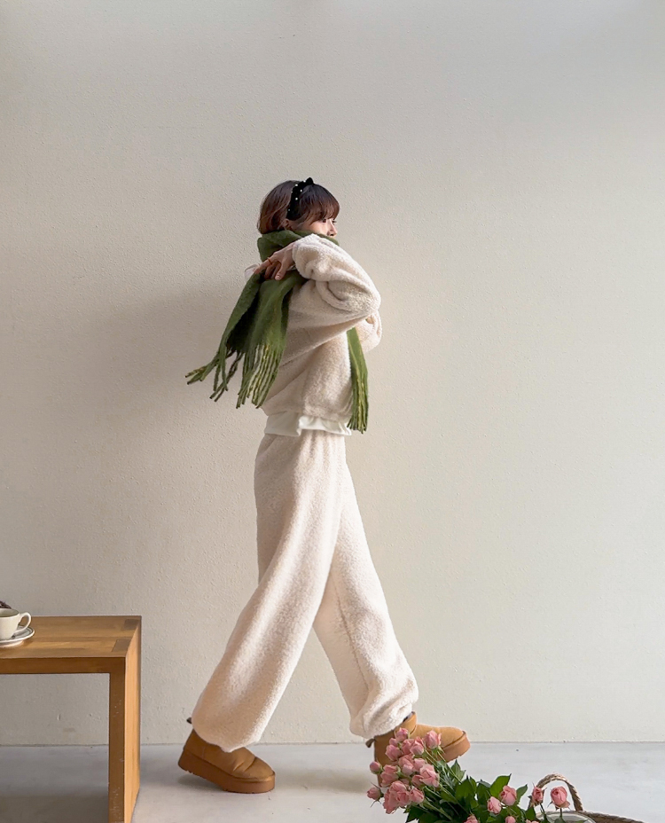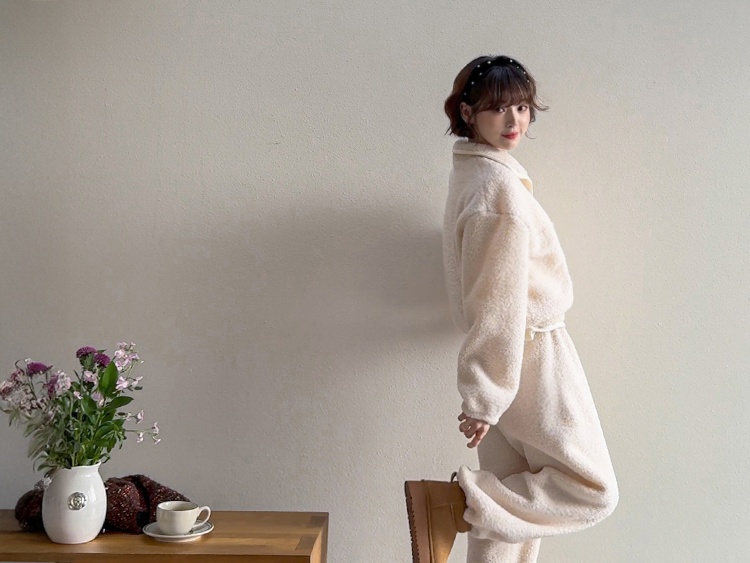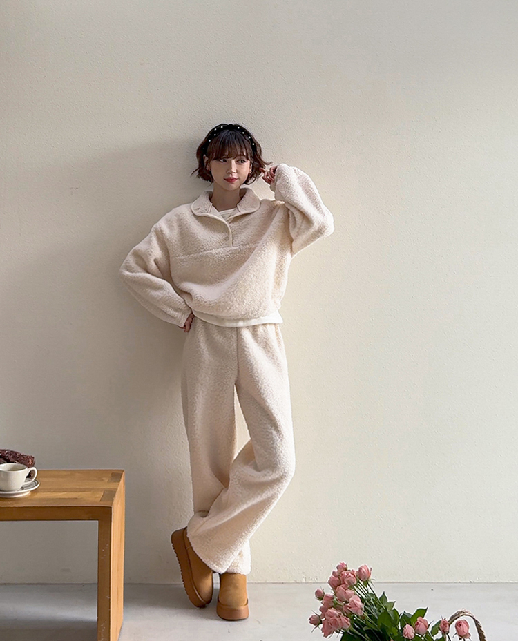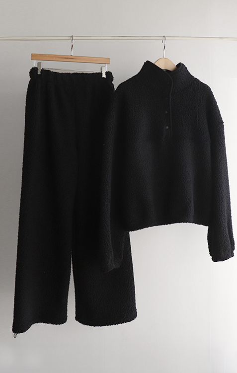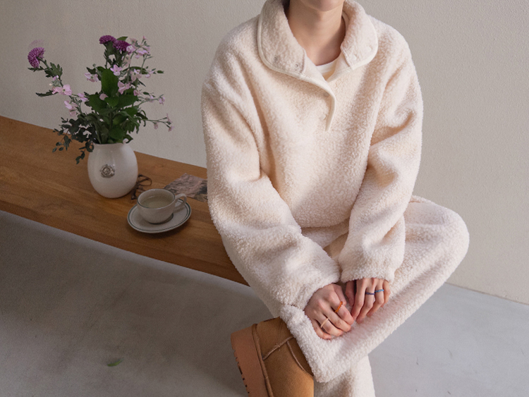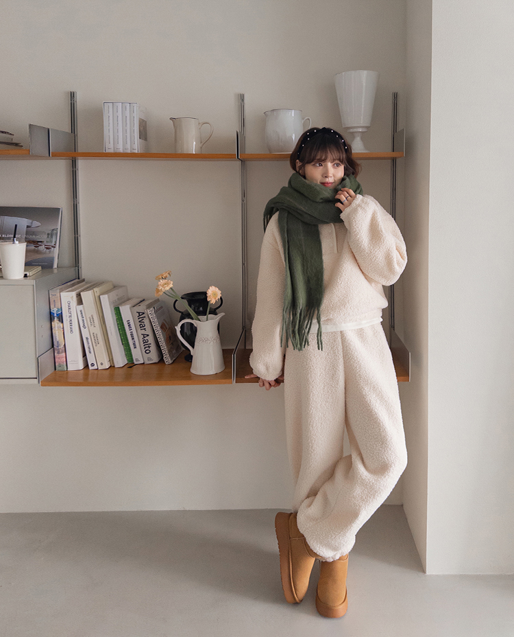 뽀글~뽀글~보기만 해도 포근하고 러블리한 분위기 가득한 뽀글이 셋업이에요~💕 포근함이 느껴지는 텍스처로 입는 순간 귀여운 무드가 확 살아나고~ 넉넉한 핏이라 하루 종일 편안하게 입기 좋아요♡.♡ 팬츠는 허리 전체 밴딩으로 장시간 착용해도 부담 없이 편안하구요~ 밑단 스트링 조절로 조거 스타일, 일자 팬츠 두 가지 연출이 가능해 취향에 따라 다양하게 즐길 수 있답니다!*.* 휘뚤~마뚤~ 데일리룩은 물론 여행룩, 캠핑룩으로도 찰떡인 아이템이라 편안함과 귀여움 둘 다 챙기기 딱이 요 아이템!! 굿 초이스 해주세요~♡
