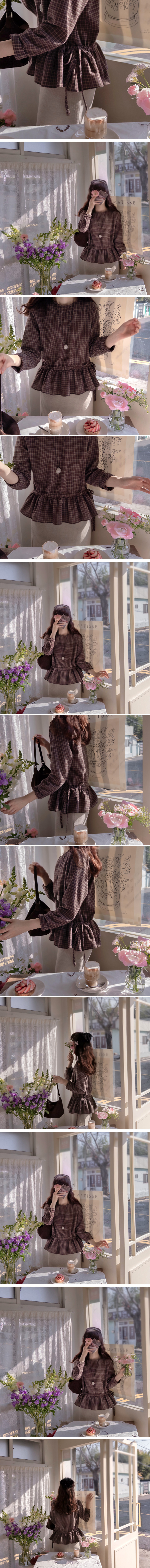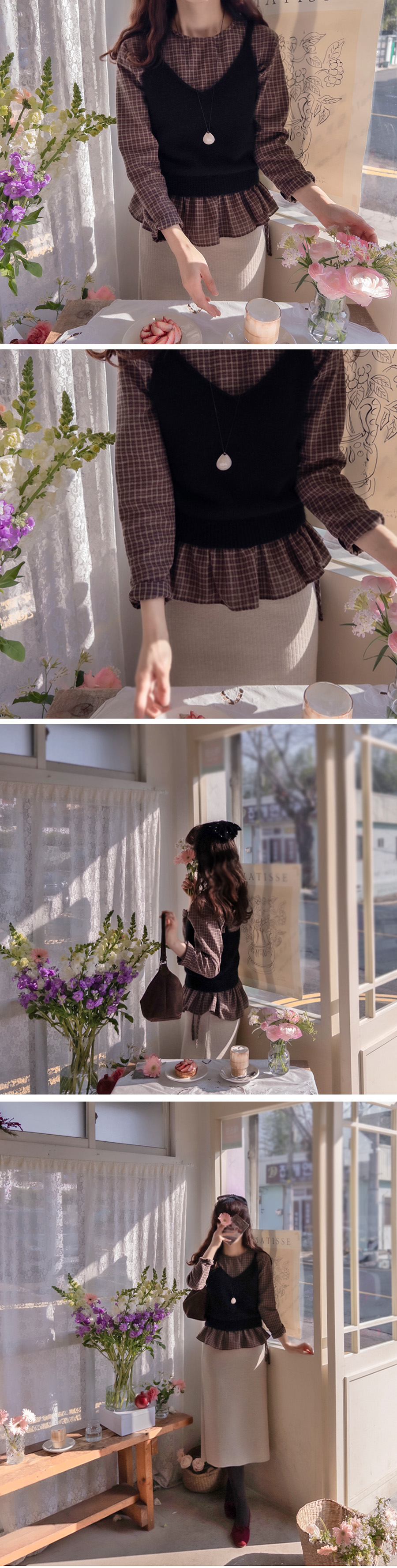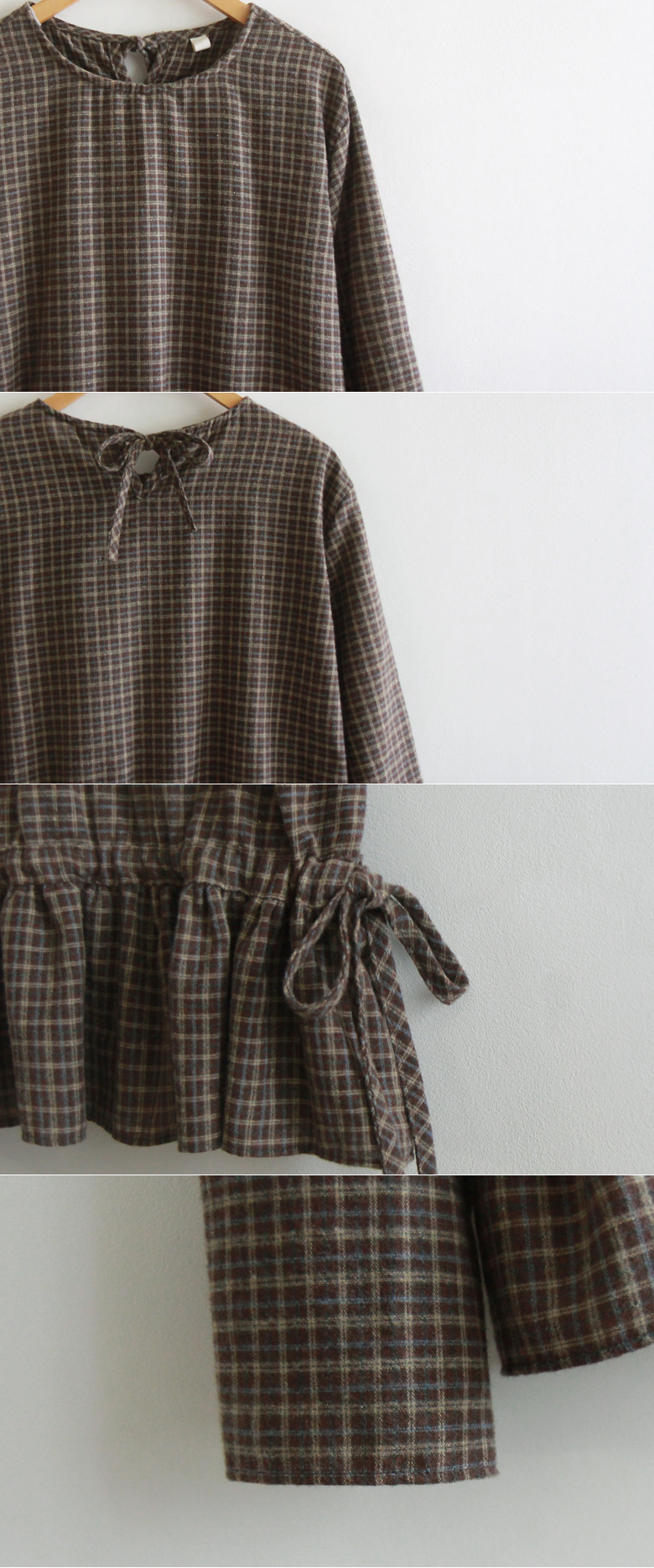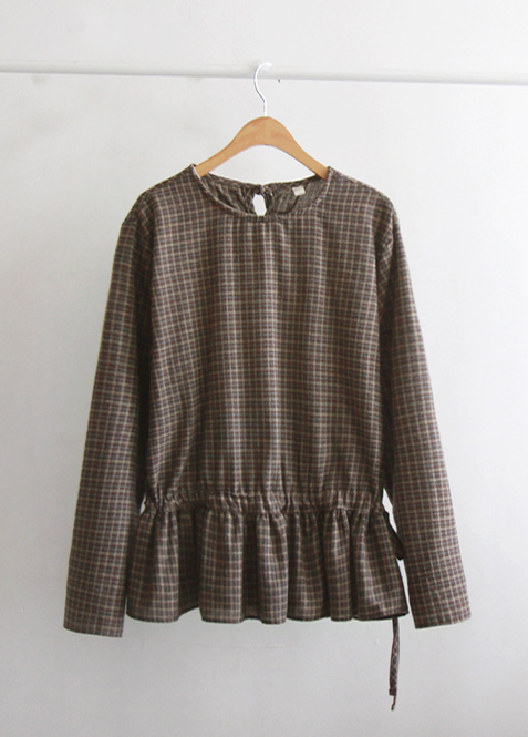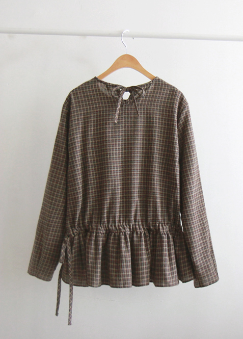 [A seasonable fabric with a check pattern that feels soft] [A blouse with a lively pattern] [The waist is gathered with a string to create an elegant fit] [A blouse with a chic color that is great for daily wear, highly recommended]