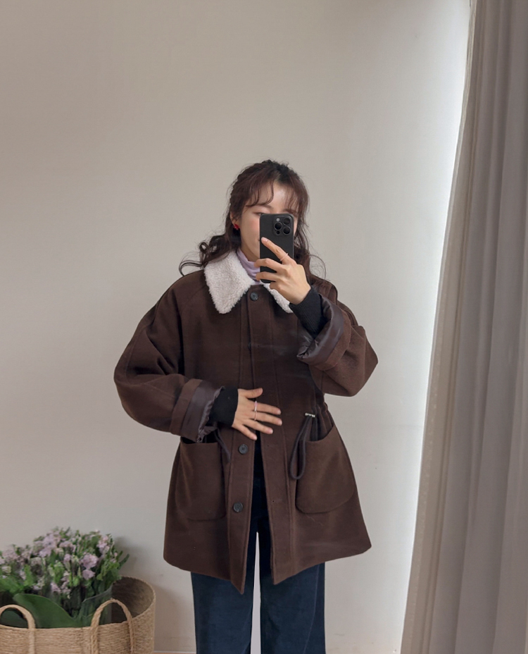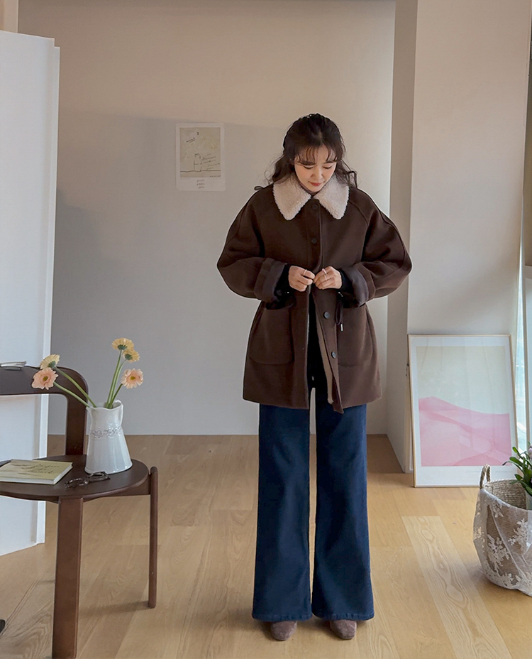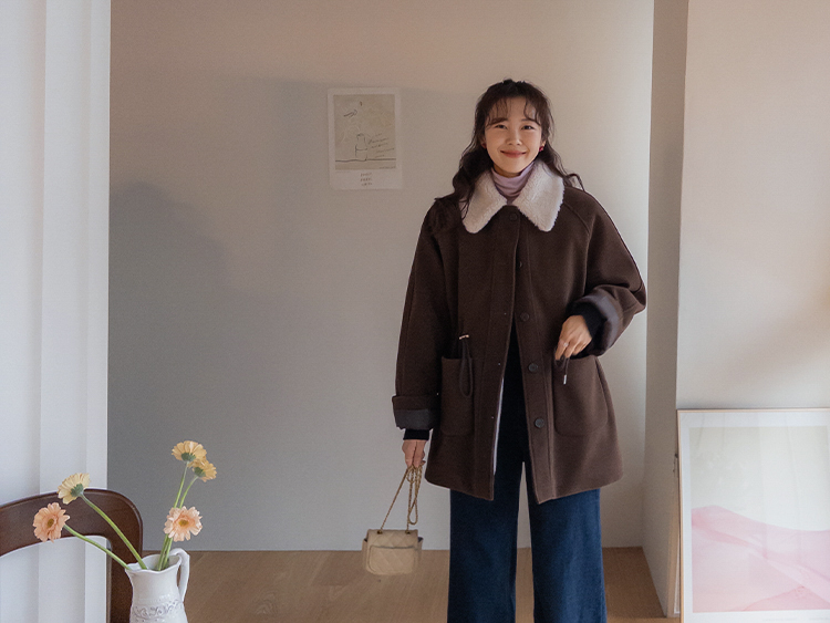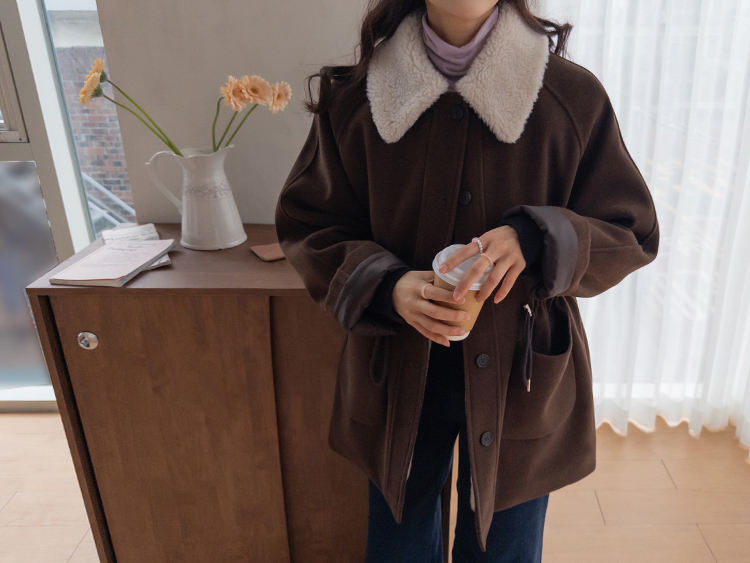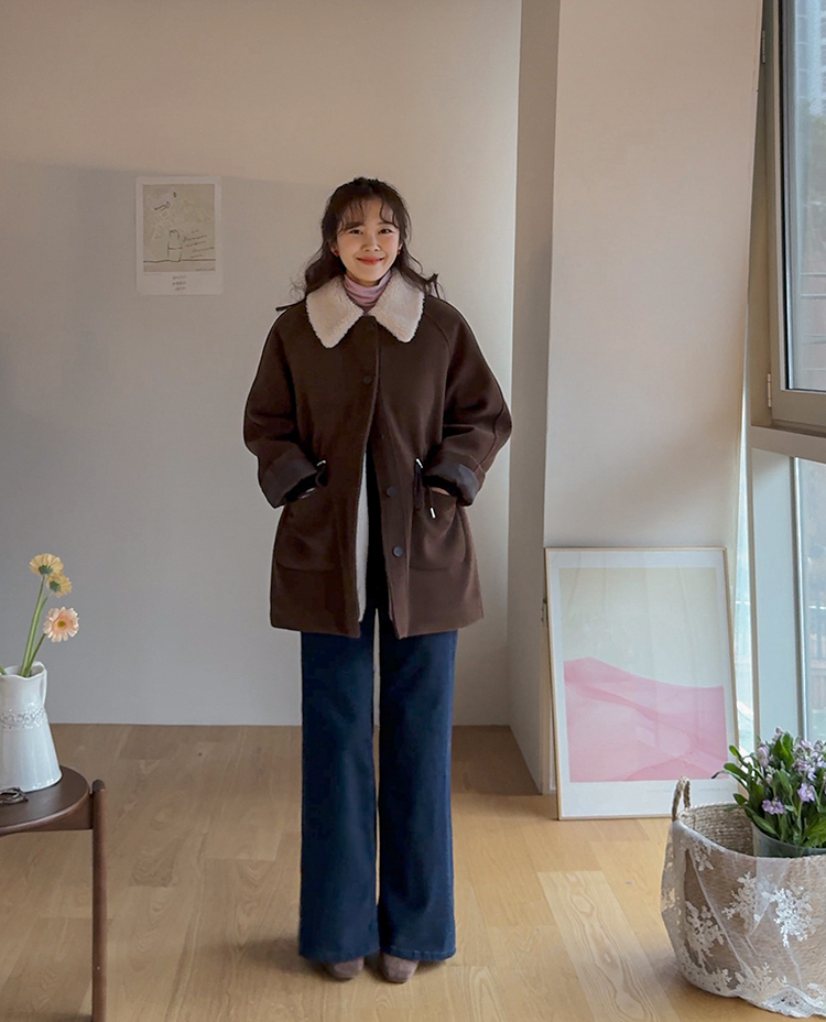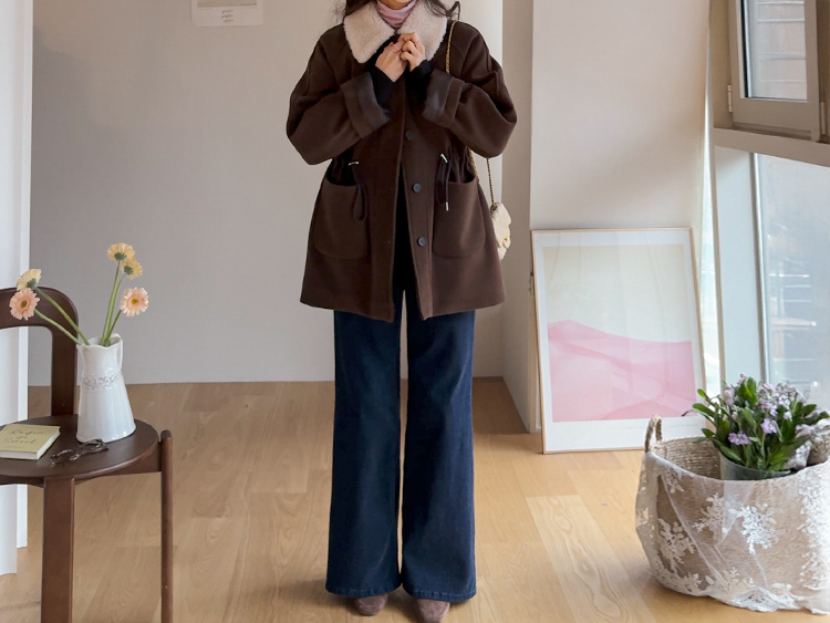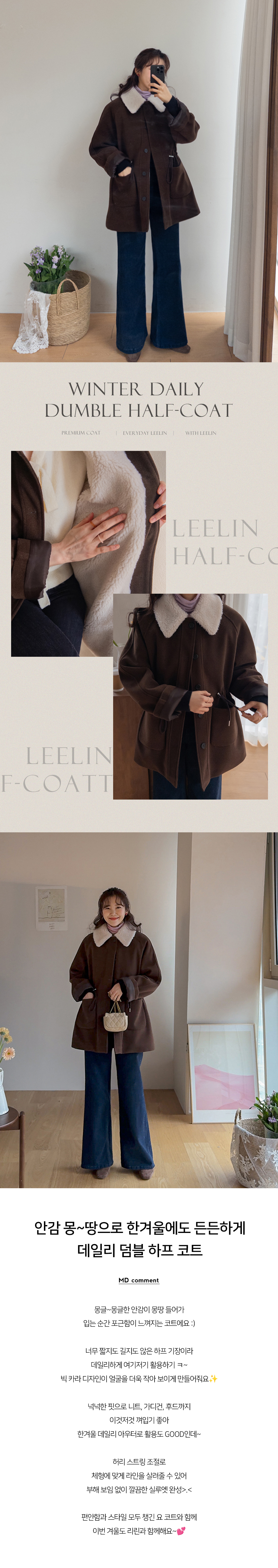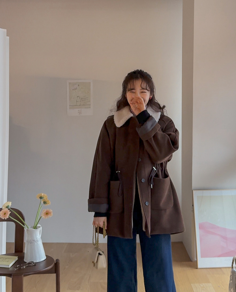 몽글~몽글한 안감이 몽땅 들어가 입는 순간 포근함이 느껴지는 코트에요 :) 너무 짧지도 길지도 않은 하프 기장이라 데일리하게 여기저기 활용하기 좋고~ 빅 카라 디자인이 얼굴을 더욱 작아 보이게 만들어줘요✨ 넉넉한 핏으로 니트, 가디건, 후드까지 이것저것 껴입기 좋아 한겨울 데일리 아우터로 활용도 GOOD인데~ 허리 스트링 조절로 체형에 맞게 라인을 살려줄 수 있어 부해 보임 없이 깔끔한 실루엣 완성>.< 편안함과 스타일 모두 챙긴 요 코트와 함께 이번 겨울도 리린과 함께해요~❄️💕