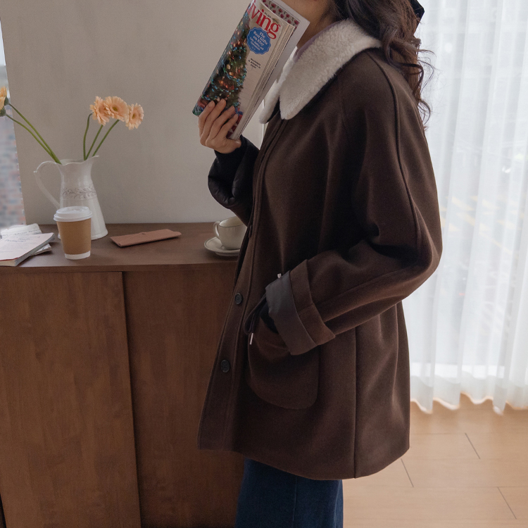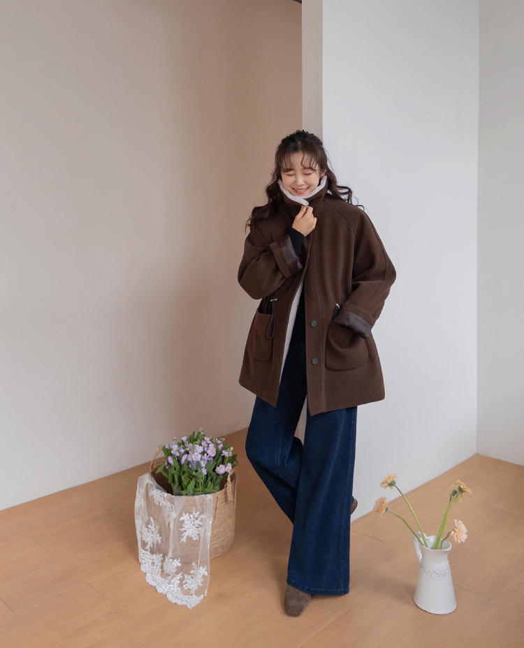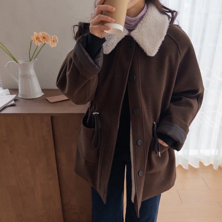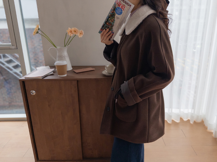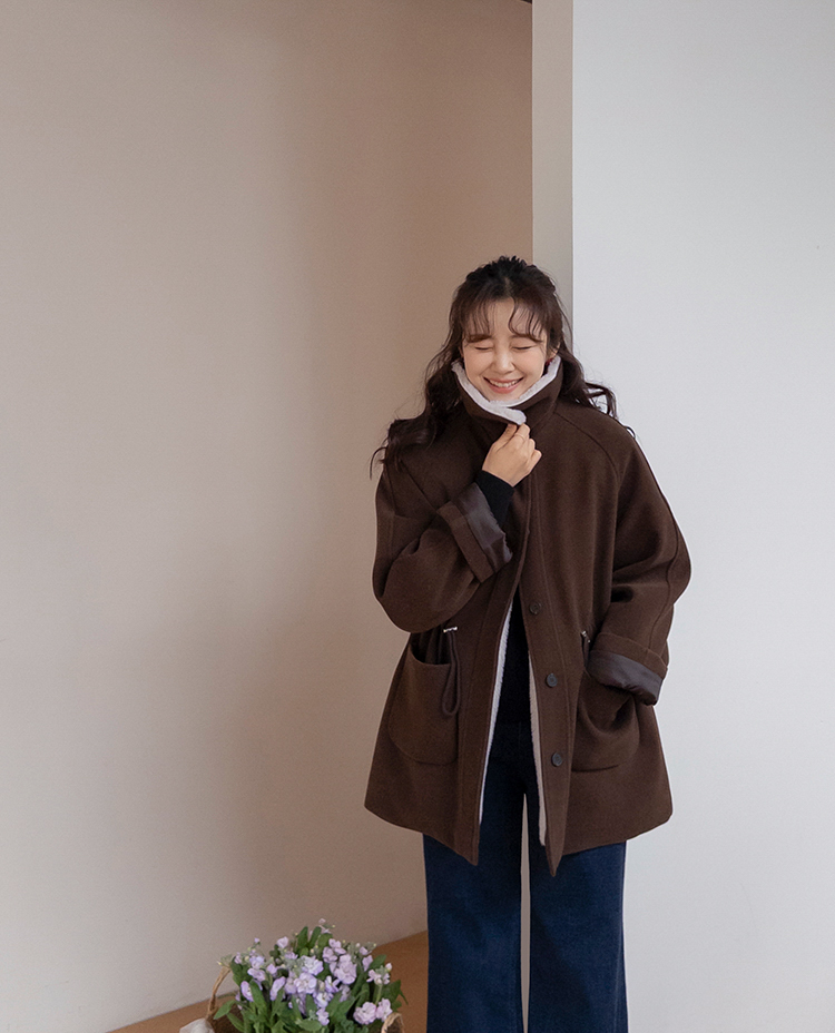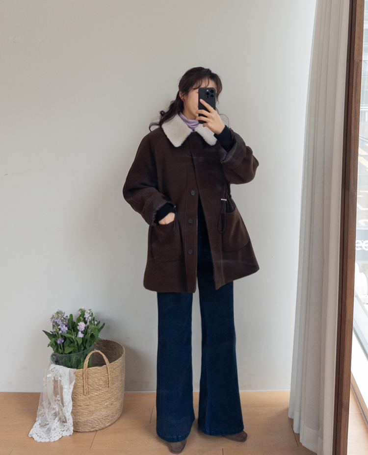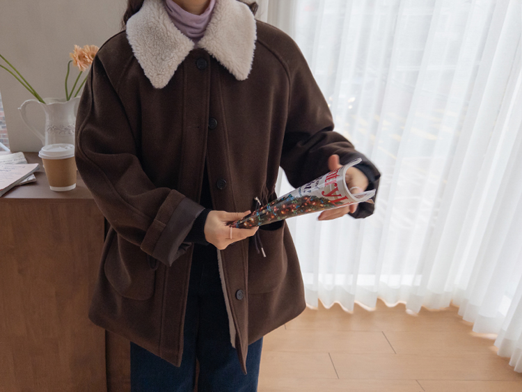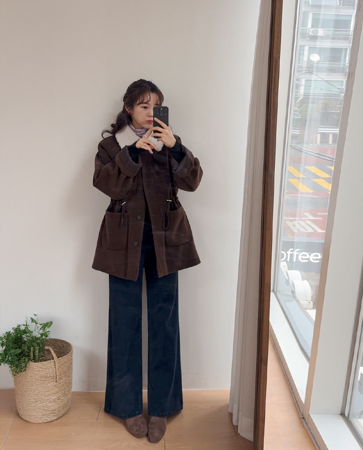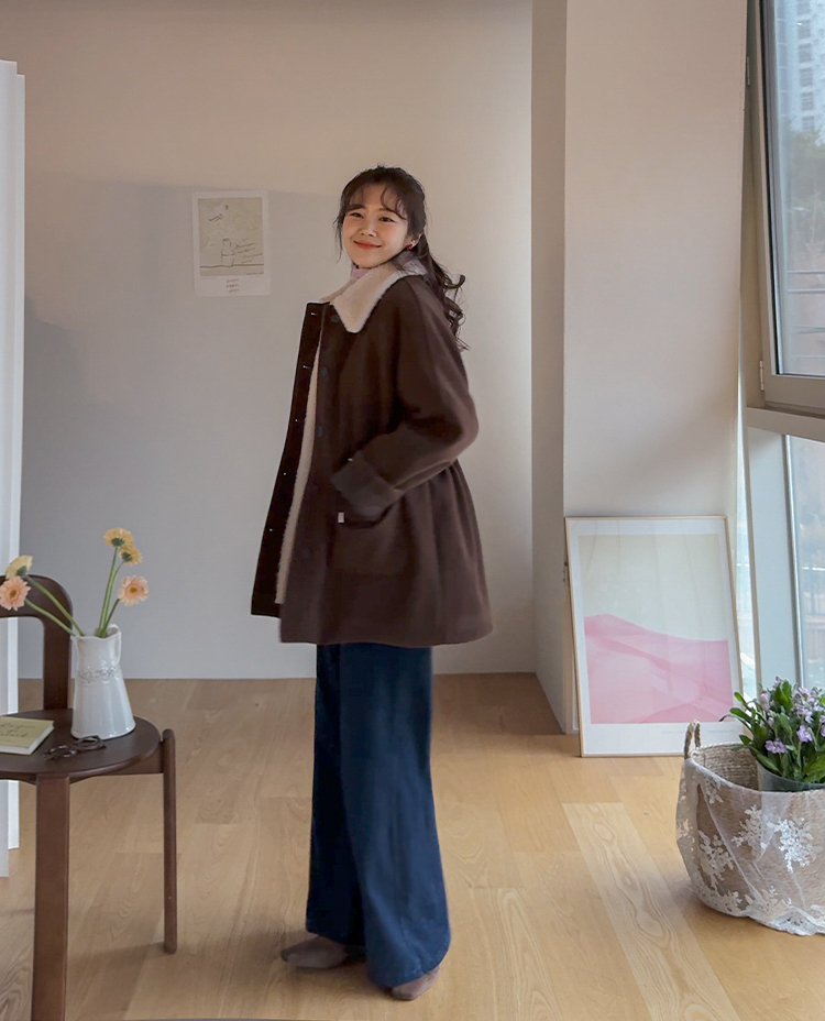 몽글~몽글한 안감이 몽땅 들어가 입는 순간 포근함이 느껴지는 코트에요 :) 너무 짧지도 길지도 않은 하프 기장이라 데일리하게 여기저기 활용하기 좋고~ 빅 카라 디자인이 얼굴을 더욱 작아 보이게 만들어줘요✨ 넉넉한 핏으로 니트, 가디건, 후드까지 이것저것 껴입기 좋아 한겨울 데일리 아우터로 활용도 GOOD인데~ 허리 스트링 조절로 체형에 맞게 라인을 살려줄 수 있어 부해 보임 없이 깔끔한 실루엣 완성>.< 편안함과 스타일 모두 챙긴 요 코트와 함께 이번 겨울도 리린과 함께해요~❄️💕