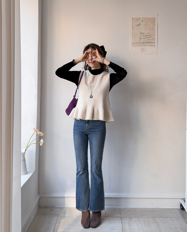 home > Vest > [-5kg effect] [Silhouette Art] Jaylin inner lining hidden banding boot cut denim pants [size: S, M, L]