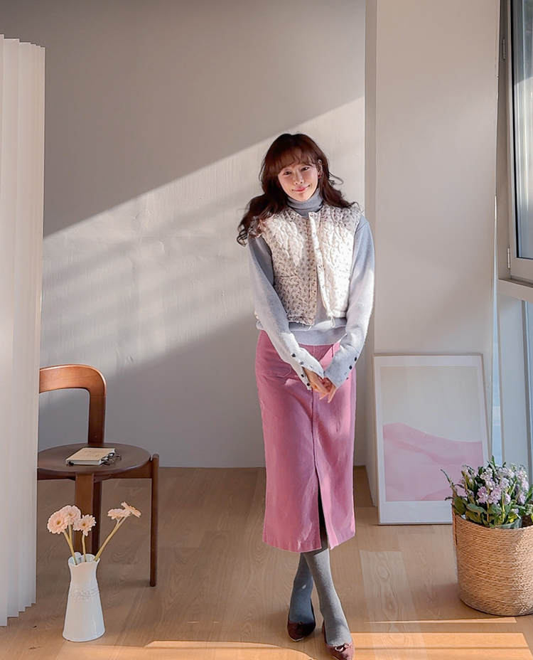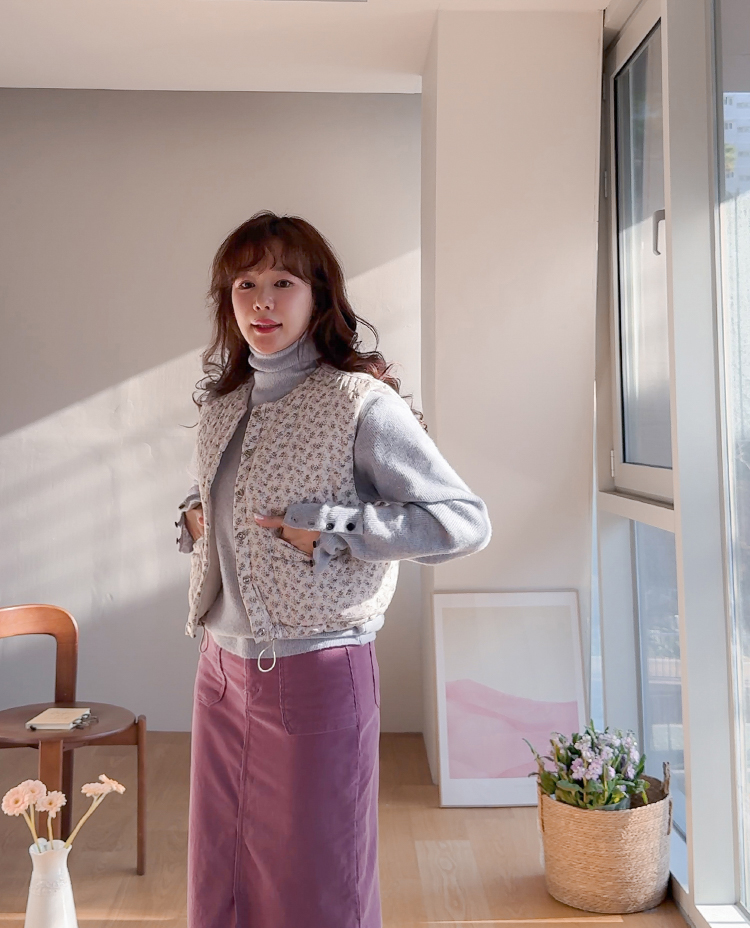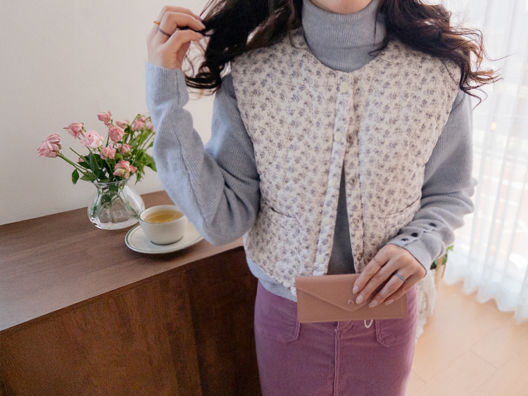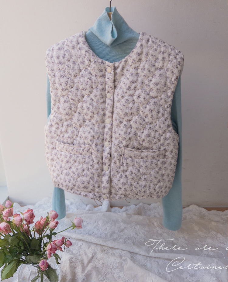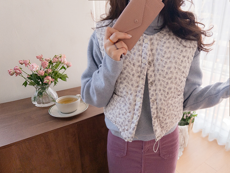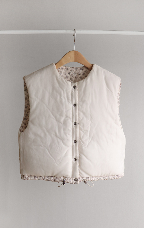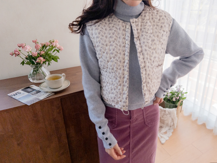 잔잔한 데이지가 가득~ 사랑스러운 패턴이 러블리 무드를 더욱 UP-!! 패딩은 갑갑하고~ 추위는 싫을 때 2온스 누빔의 따뜻함 장착한! 요 베스트 패딩 추천드려요! 크롭한 기장감으로 스커트는 물론~ 캐주얼한 팬츠랑도 너무 잘 어울리는 러블리 코디 만능템_!! 밑단 스트링으로 조절할 수 있으니~ 내 맘대로 연출하기 GOOD-!! 굿초이스 해주세요 ♥