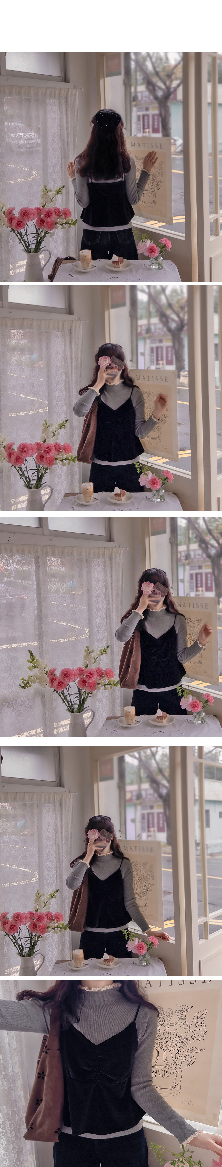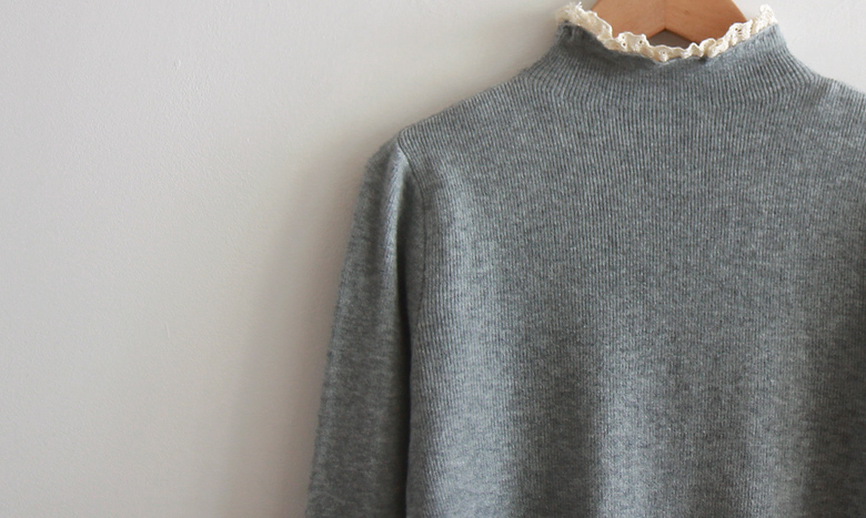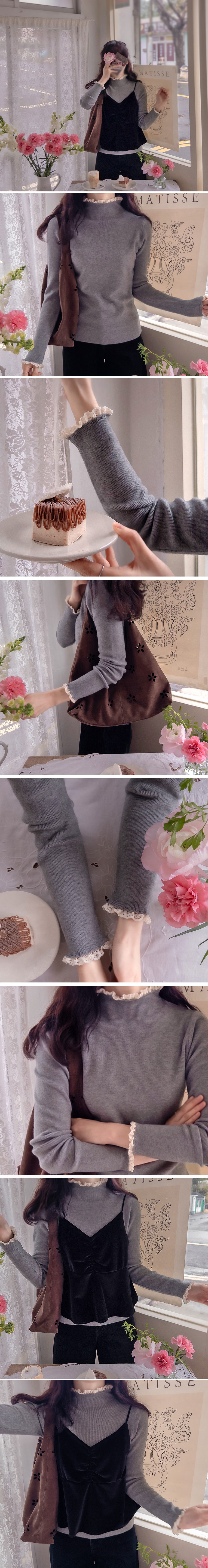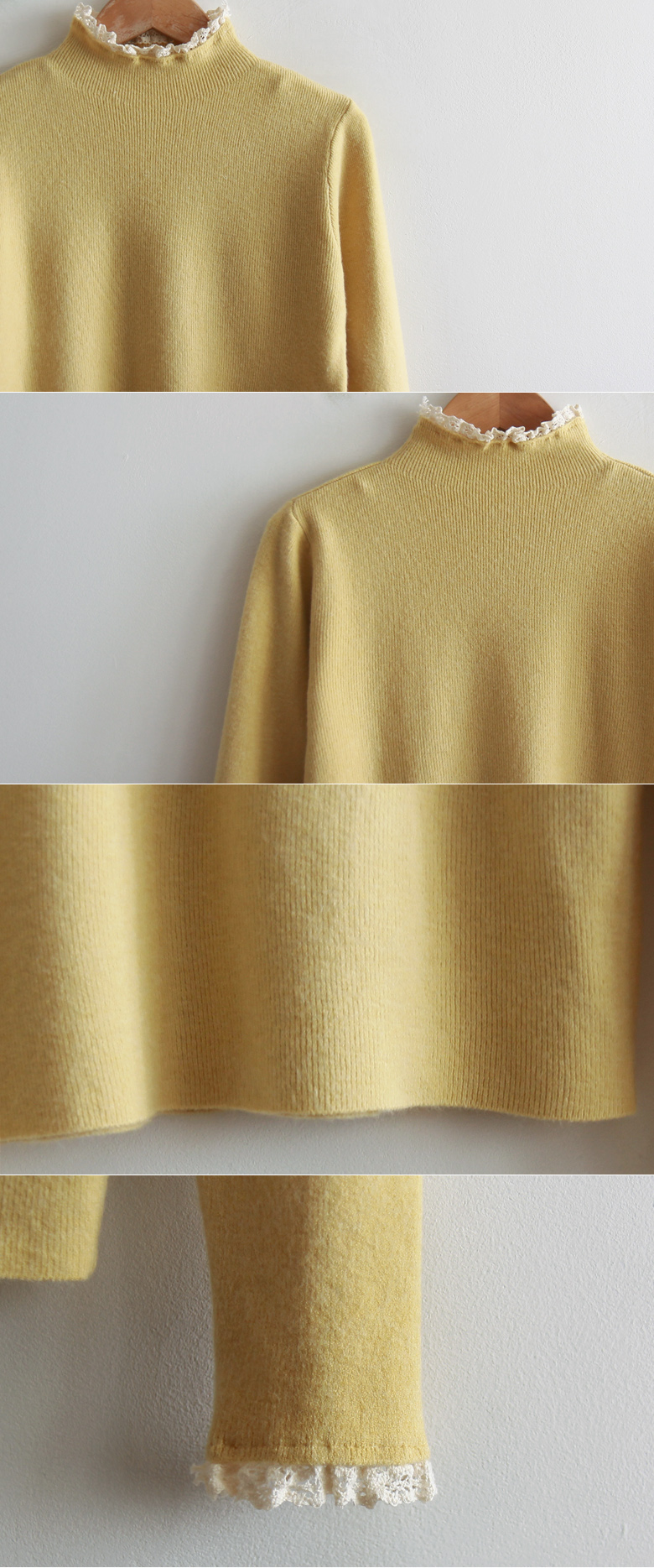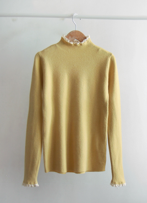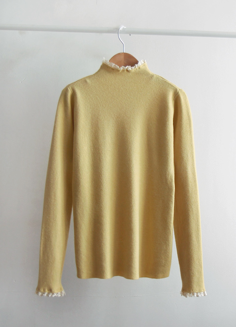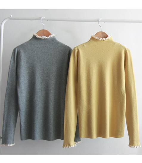 [Comfortable fit with soft fabric and stretchy spandex] [Lovely race color combination on the neck and sleeves is so pretty] [Slim and stretchy half-polar with pretty race trimming] [Great for wearing in a stylish and bright way] [Highly recommended warm and elegant half-polar knit that is comfortable to wear]
