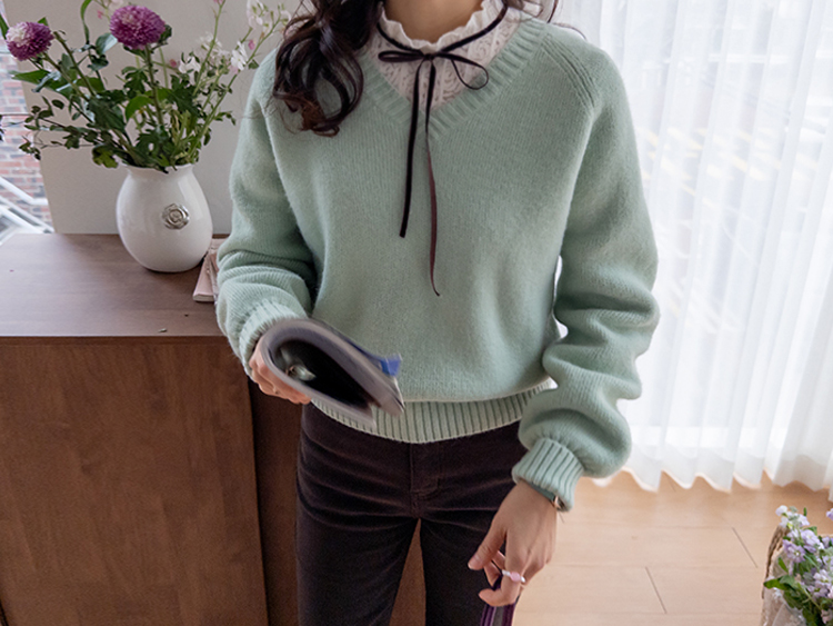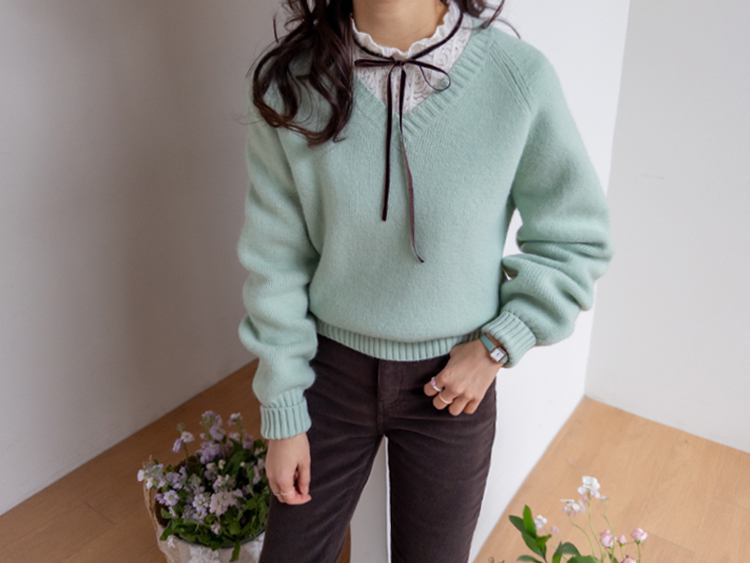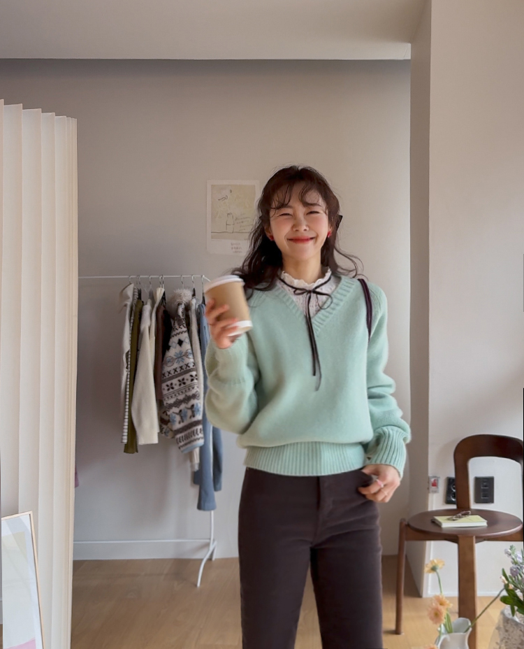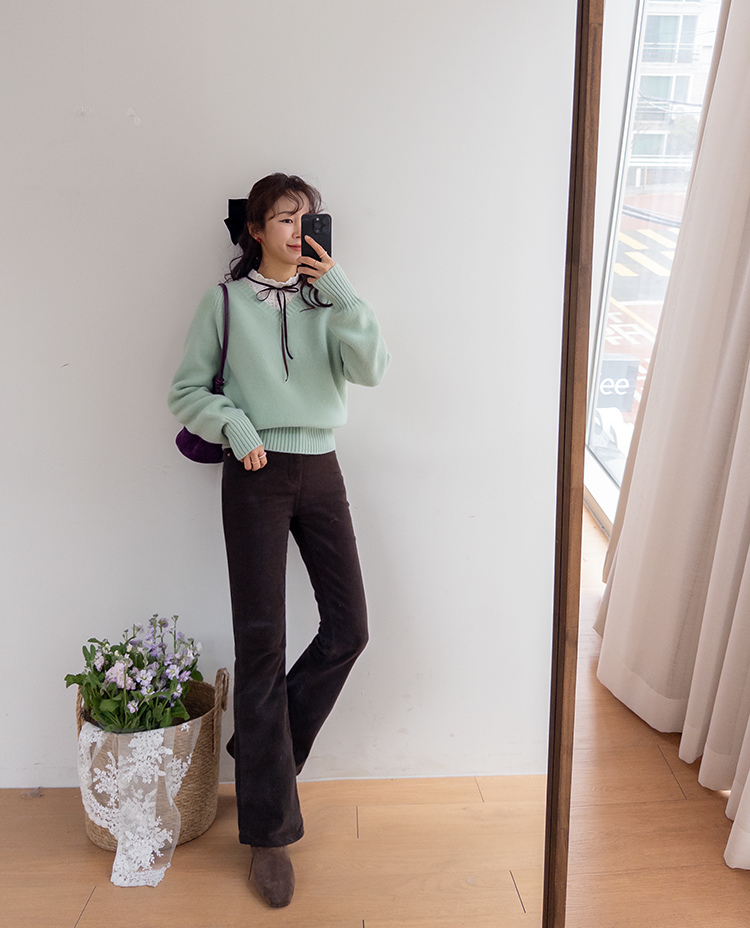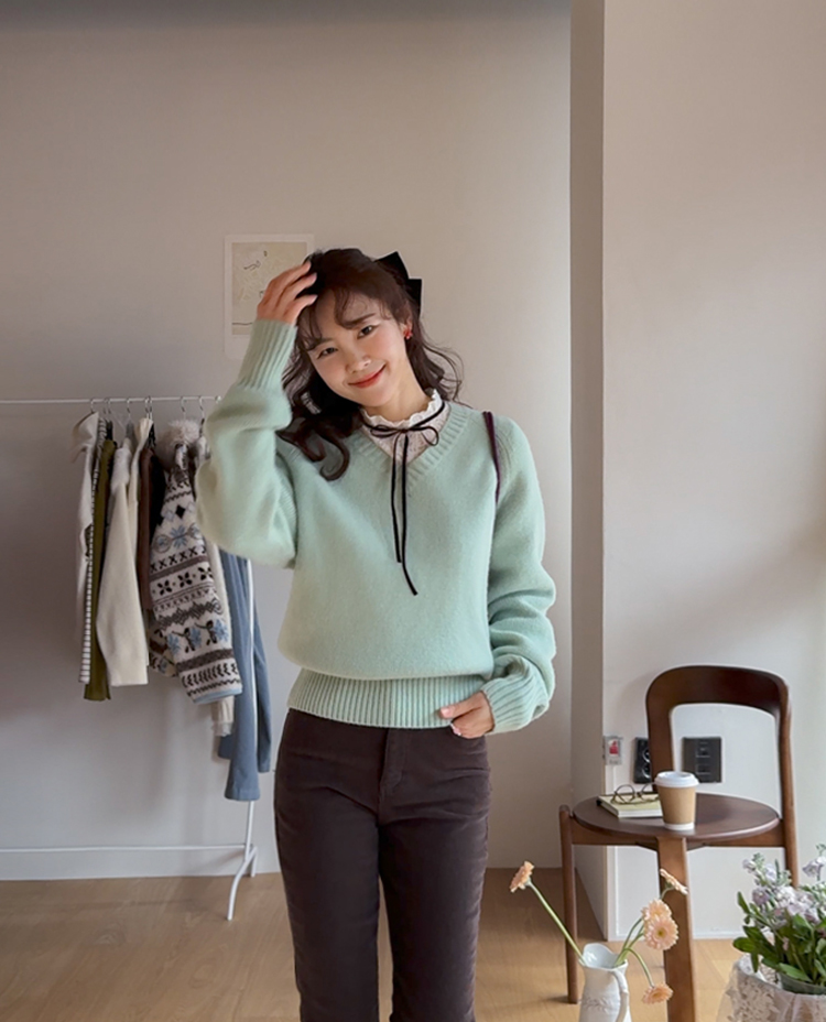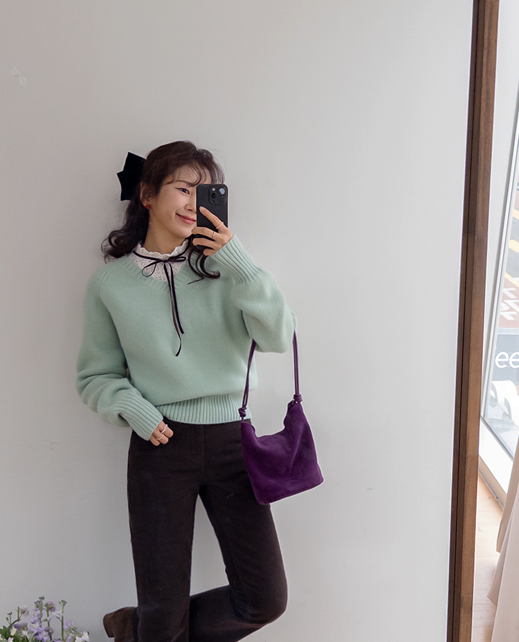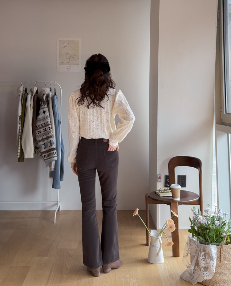잔잔한 텍스처가 느껴지는 단정하면서 여성스러운~ 블라우스 소개드려요^^ 넥라인 프릴과 배색의 리본 스트랩이 분위기를 한층 더 러블리하게 ><♥ 부드러운 촉감과 유연한 소재감으로 단독은 물론이구요~ 모델언니처럼 니트와 매치해주면 좀 더 센스있는 룩 완성 ~*.* 쫀-쫀한 텐션감과 적당히 슬림한 실루엣이 편안한 착용감까지 ㅎㅎ 굿초이스 해주세요~♥