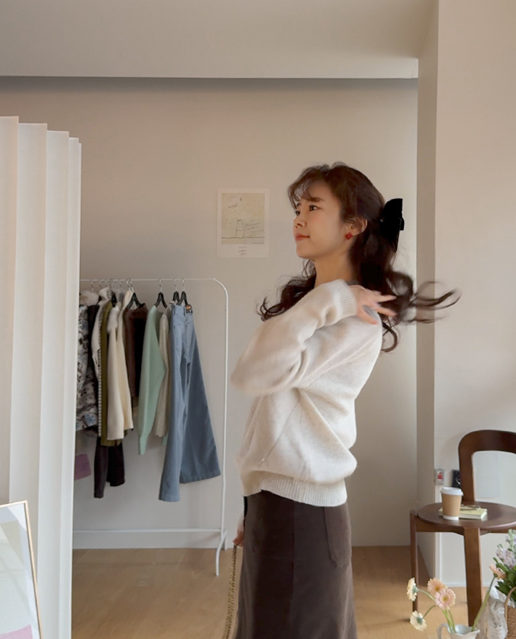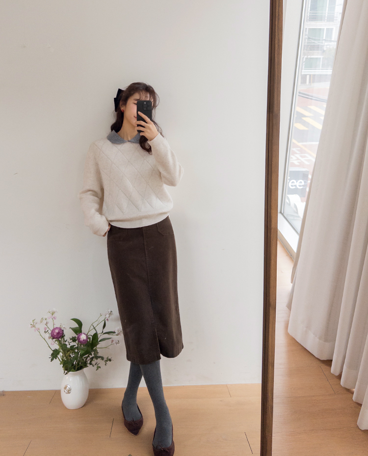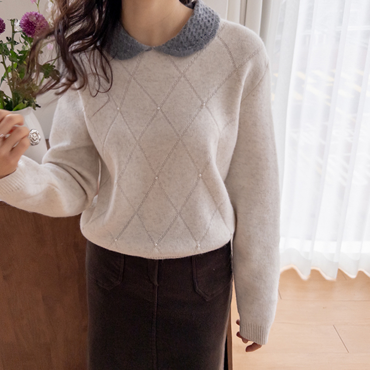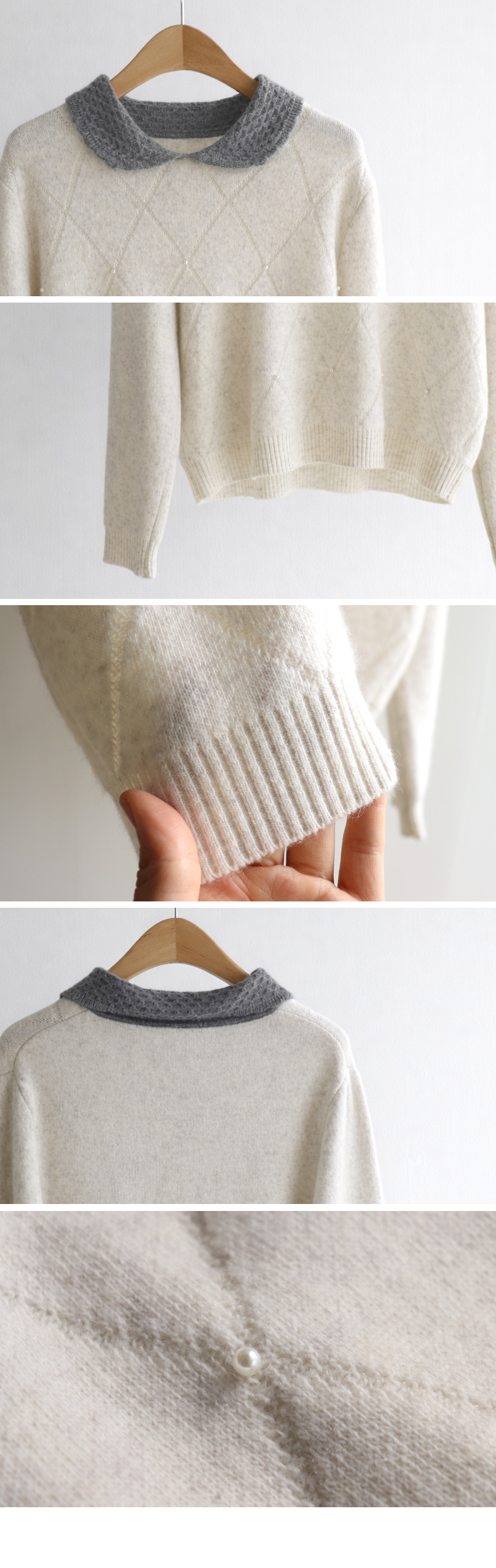 깔끔하면서도 포인트 있는 니트 찾으셨다면 요 아이 정말 딱이에요~^^ 둥근 카라 디자인에 진주 디테일이 더해져 페미닌한 무드가 뿜뿜 하는데요ㅎㅎ 니트 전체에 은은하게 들어간 다이아 패턴과 자연스럽게 더해진 진주 디테일이 과하지 않게 고급스러운 포인트가 되어준답니다~ 부드럽고 포근한 니트 소재로 맨살에 입어도 까슬거림 없이 편안하고, 여유 있는 핏감으로 하루 종일 착용해도 부담 NO!! 슬랙스와 매치하면 단정한 출근룩으로, 스커트와 함께하면 로맨틱한 데이트룩으로 다양하게 연출 가능한 니트♥ 하나만 입어도 분위기 살아나는 아이템이라 소장가치 좋답니다^^