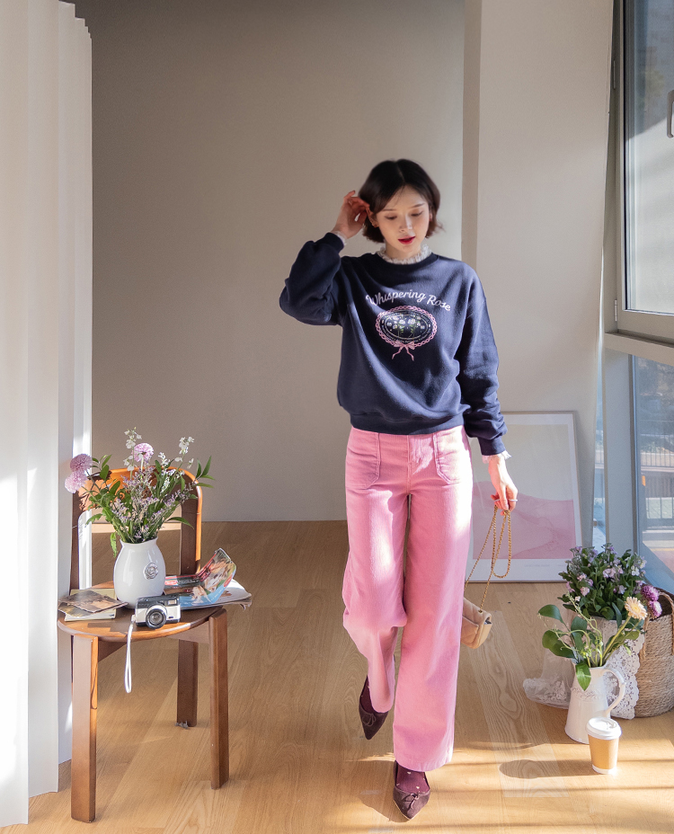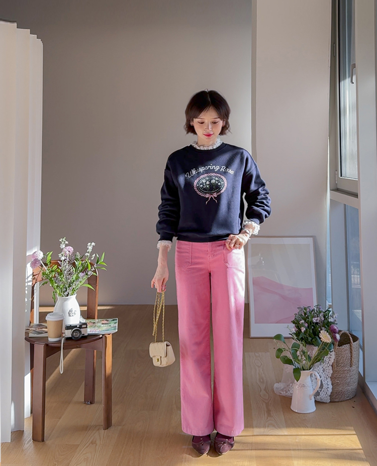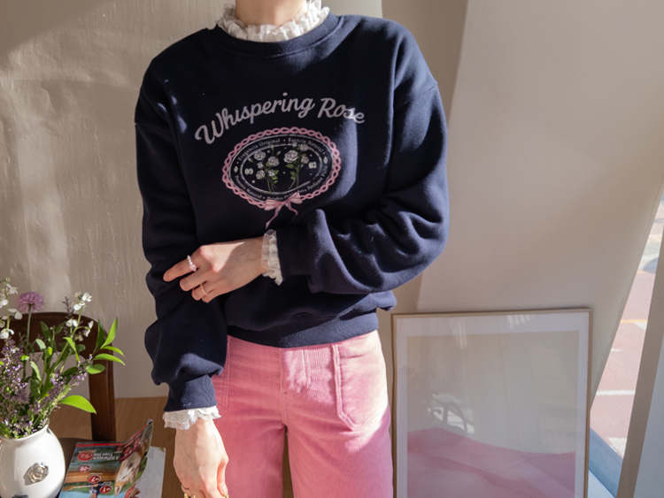 리린 감성이 느껴지는 레터링 & 플라워 프린팅으로 사랑스런 무드를 만들어 줄 맨투맨이에요~ 두툼한 기모로 부해 보이는 맨투맨은 그만-! 면과 폴리를 섞은 유연한 기모 안감으로 부함 없이 가볍고 편안하게 즐기기 좋아요ㅎㅎ! 감각적인 포인트가 되며 러블리한 무드를 만들어 줄 휘뚤~마뚤 데일리템 최고! 강추드려요♡