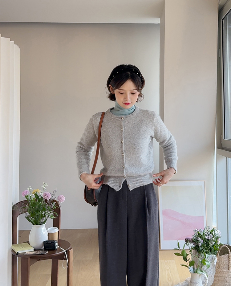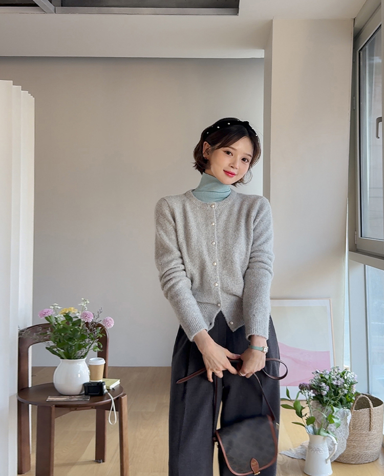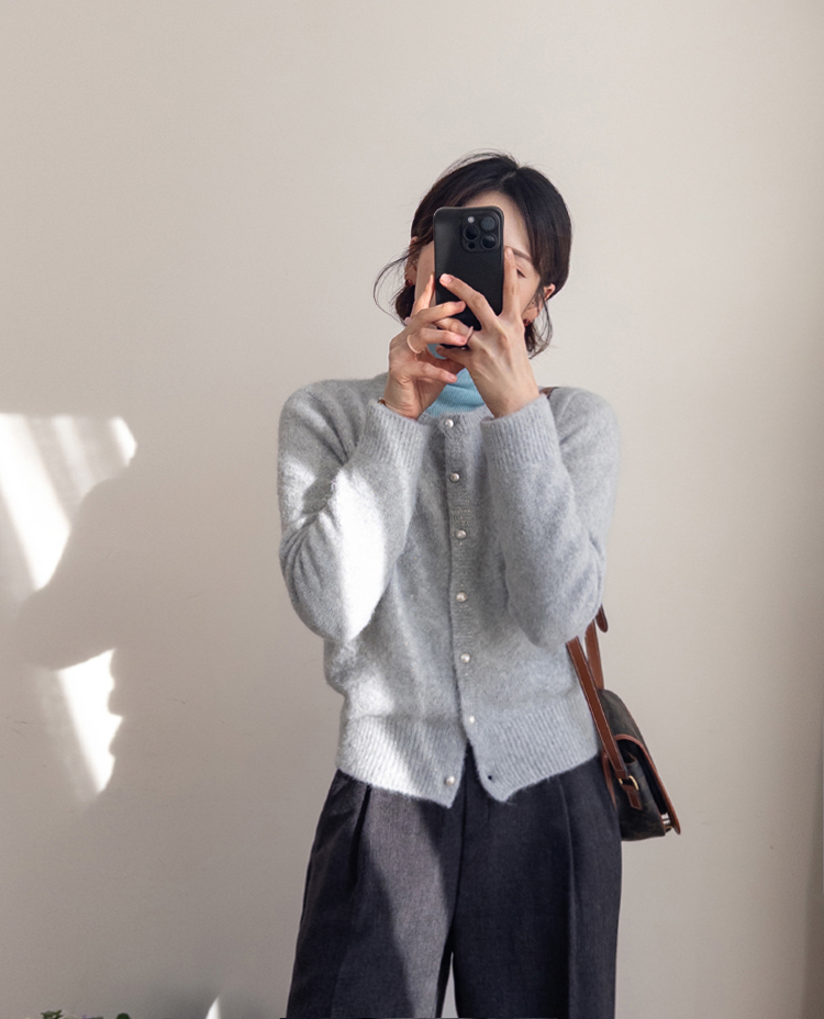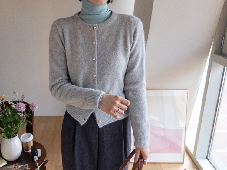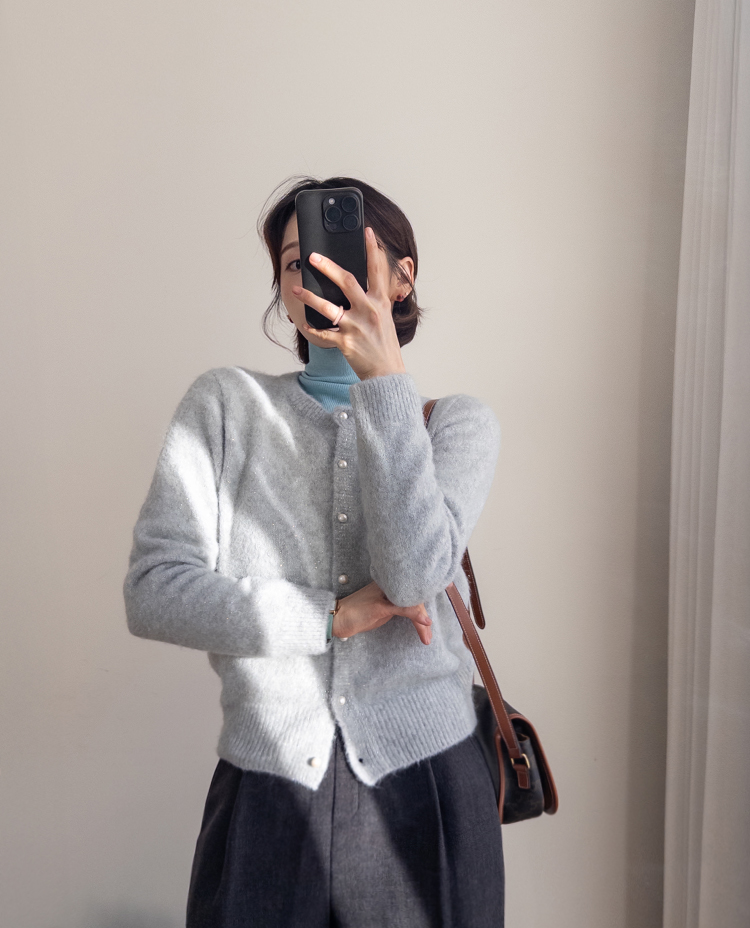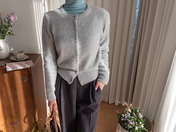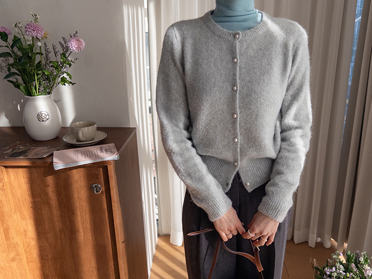 보송보송한 헤어리 텍스처에 은은한 반짝이 원사가 더해진 가디건이에요~ 과하지 않은 반짝임이라 빛에 따라 고급스럽게 포인트 되구요 :) 단추 디테일까지 신경 써서 단독으로 입어도 고급스러워요ㅎㅎ 울이 함유되어 있어 탄탄한 내구성 GOOD~ 폴라 위에 레이어드하면 한겨울까지도 활용 가능하구요!! 전체적으로 여리한 핏감이라 코디에 여성스러움을 더해준답니다~ 데일리부터 포인트룩까지 추천드리는 가디건 니트에요 ♥