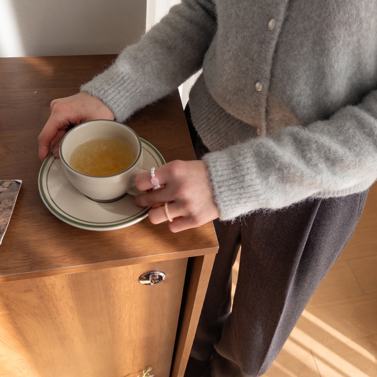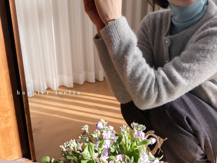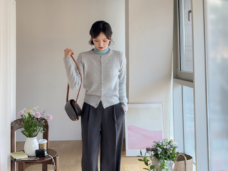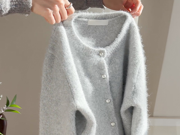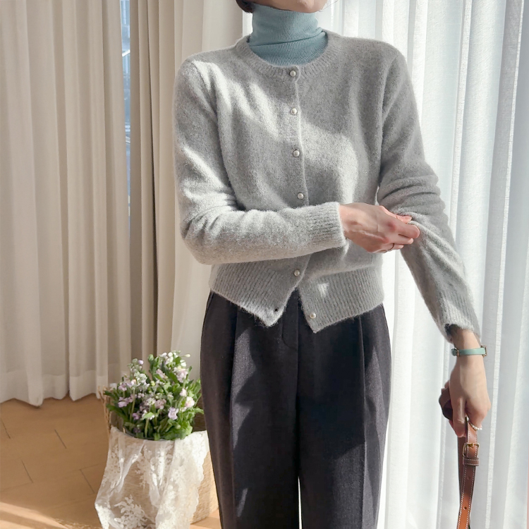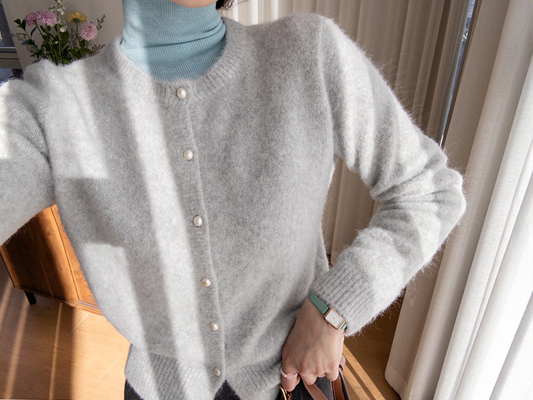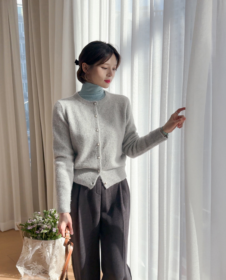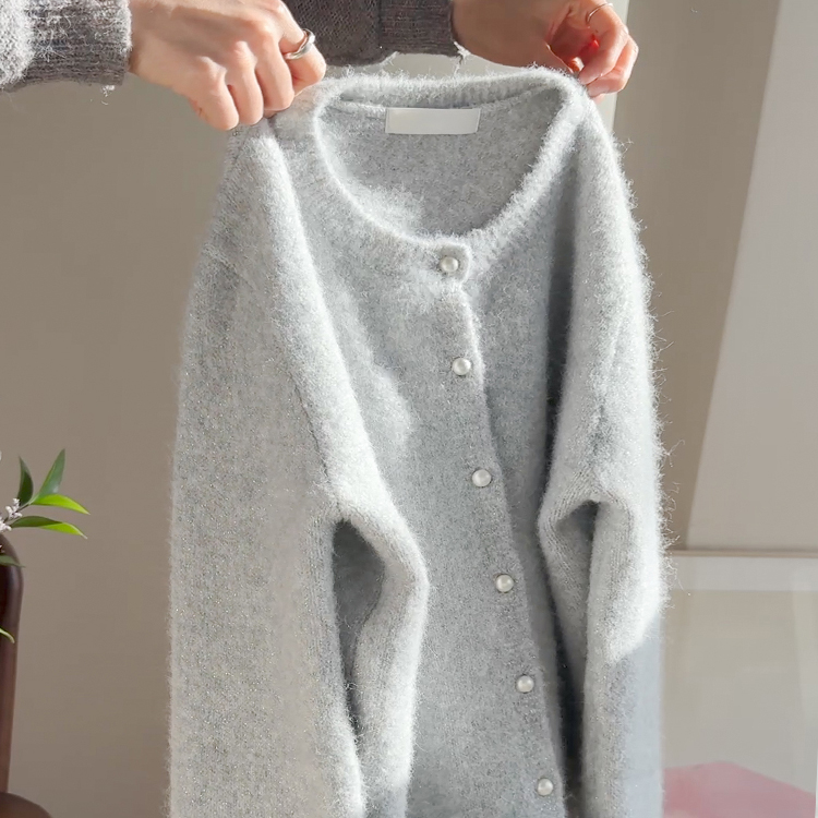 보송보송한 헤어리 텍스처에 은은한 반짝이 원사가 더해진 가디건이에요~ 과하지 않은 반짝임이라 빛에 따라 고급스럽게 포인트 되구요 :) 단추 디테일까지 신경 써서 단독으로 입어도 고급스러워요ㅎㅎ 울이 함유되어 있어 탄탄한 내구성 GOOD~ 폴라 위에 레이어드하면 한겨울까지도 활용 가능하구요!! 전체적으로 여리한 핏감이라 코디에 여성스러움을 더해준답니다~ 데일리부터 포인트룩까지 추천드리는 가디건 니트에요 ♥