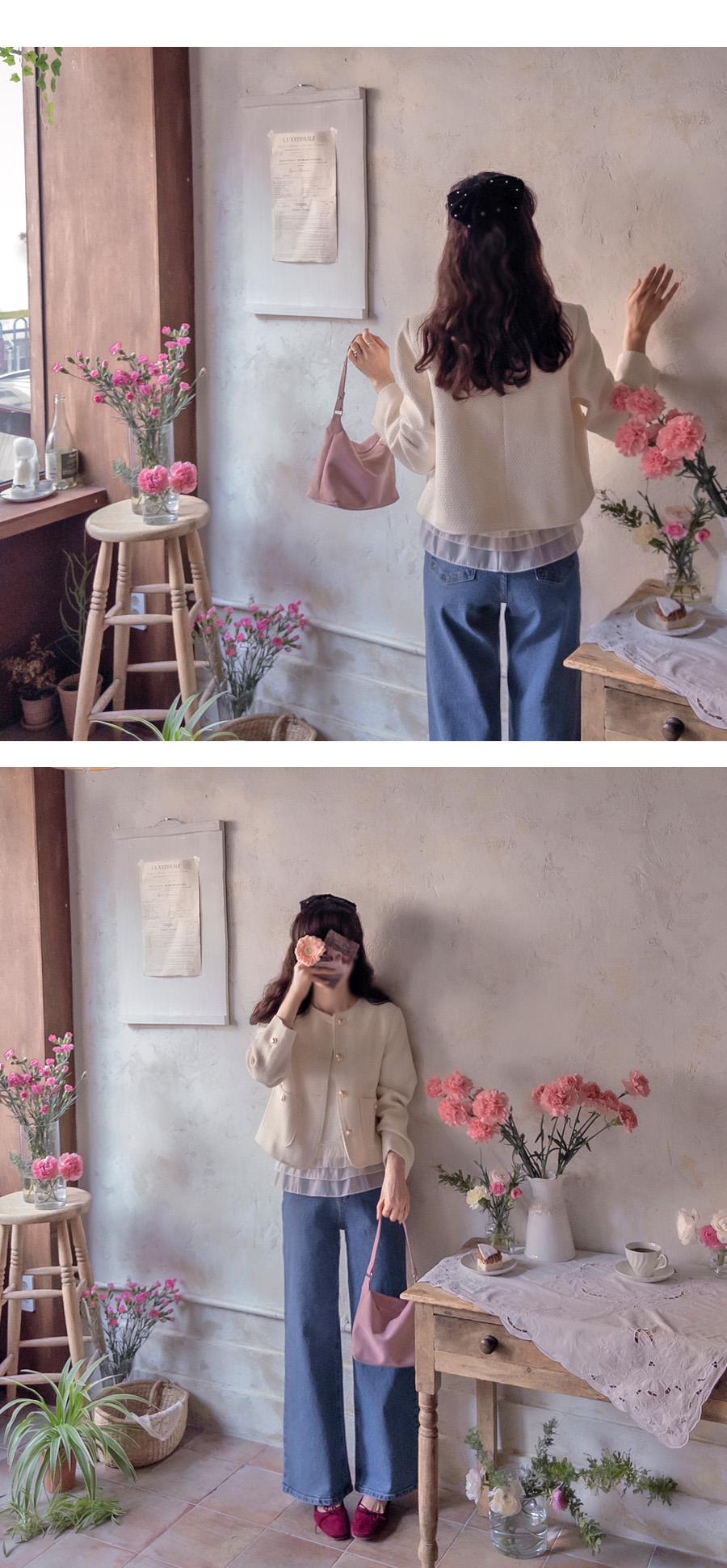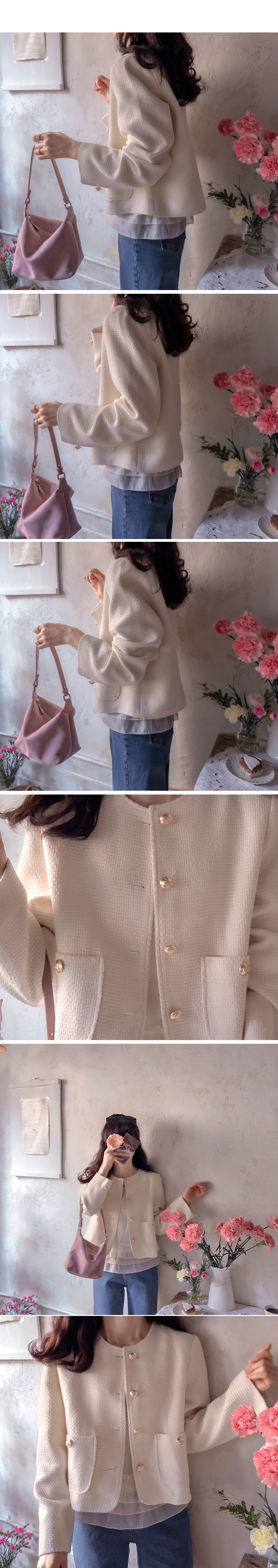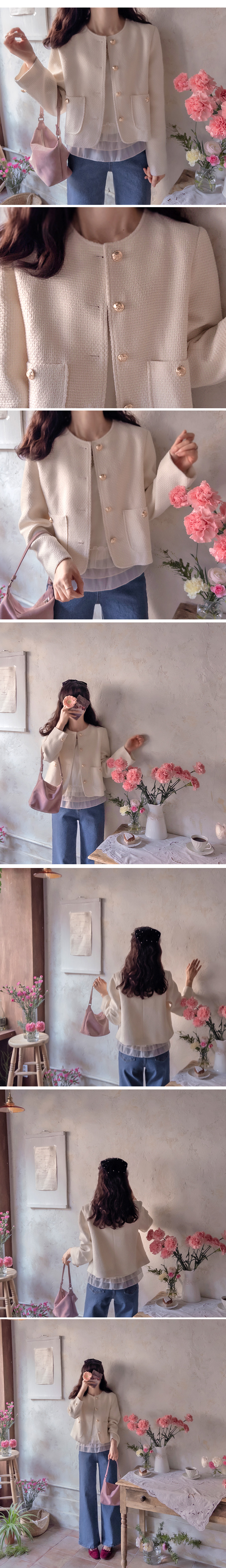 [Spring season new arrivals] [Brand quality from brand factory work] [Tweed Jacket in basic colors] [Attractive design with gold buttons and pockets] [A luxurious jacket that will create a chic look when worn together] [Three-dimensional tweed fabric is great for daily wear]