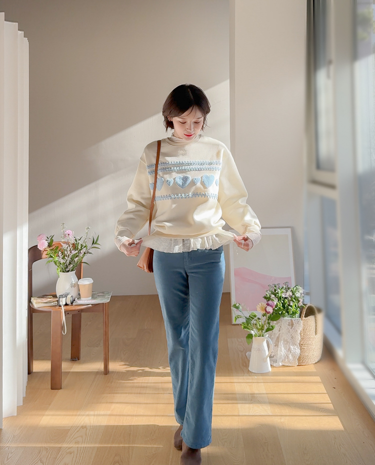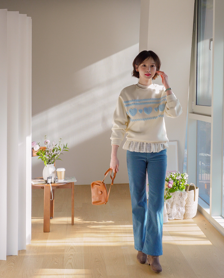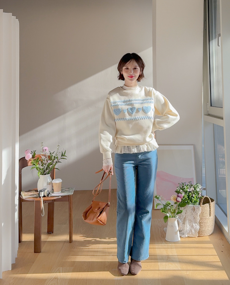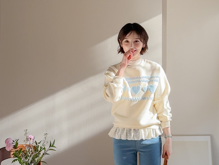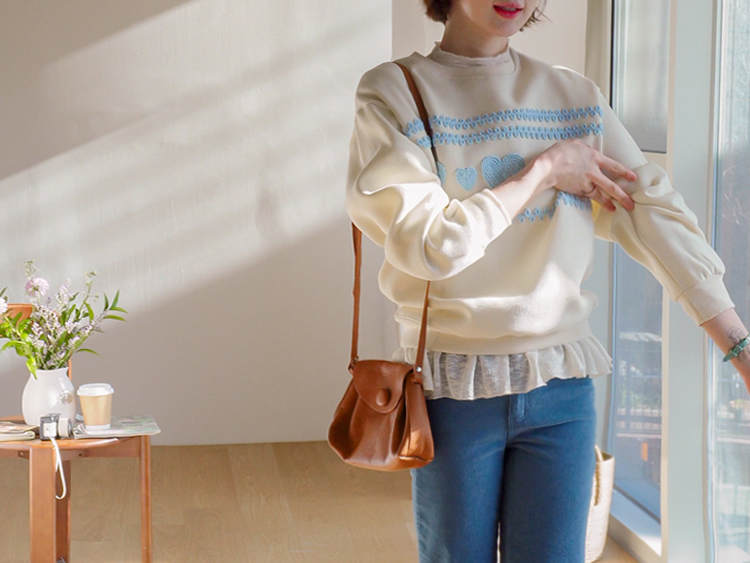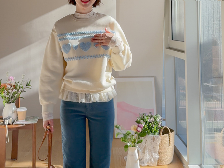 입체적인 뜨개 하트들이 러블리함을 더욱 up~ 시켜 줄 맨투맨 소개드려요! 하나만 입어도 데일리 꾸안꾸룩을 만들어주어 휘뚤마뚤~ 어디든 잘 어울리고요~ 여유있는 품으로 군살을 다~ 가려주니 더욱 손이 자주 갈 아이템이랍니다 :) 속기모로 후끈후끈~♨ 굿초이스 해주세요 ♥