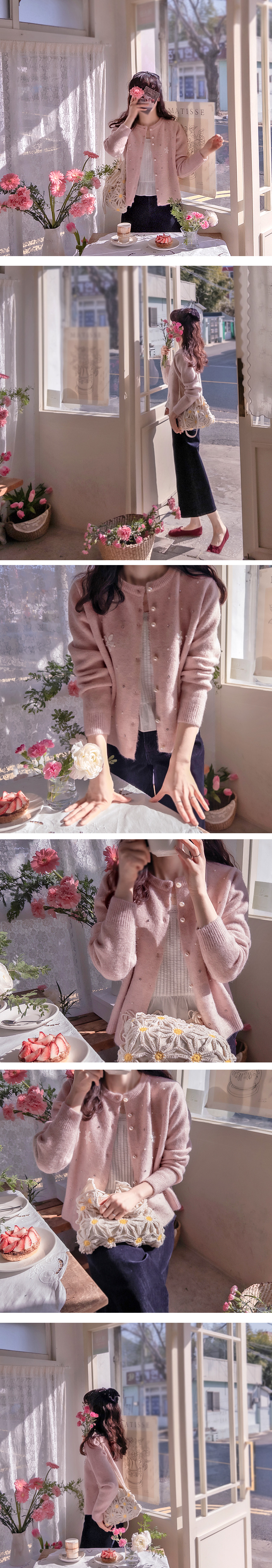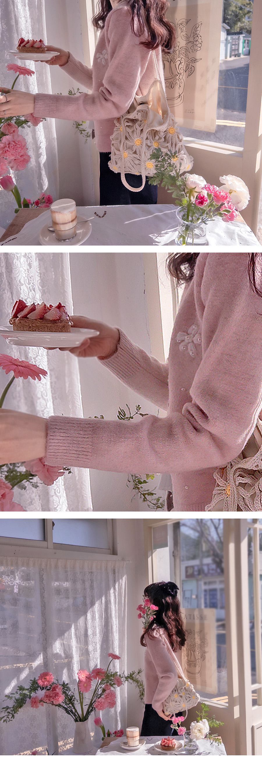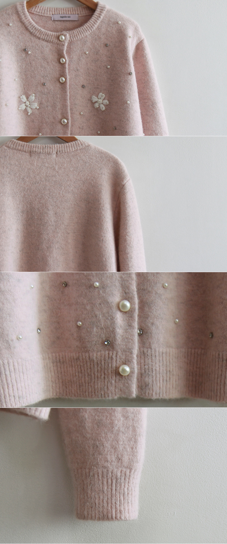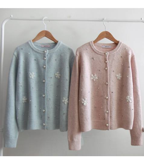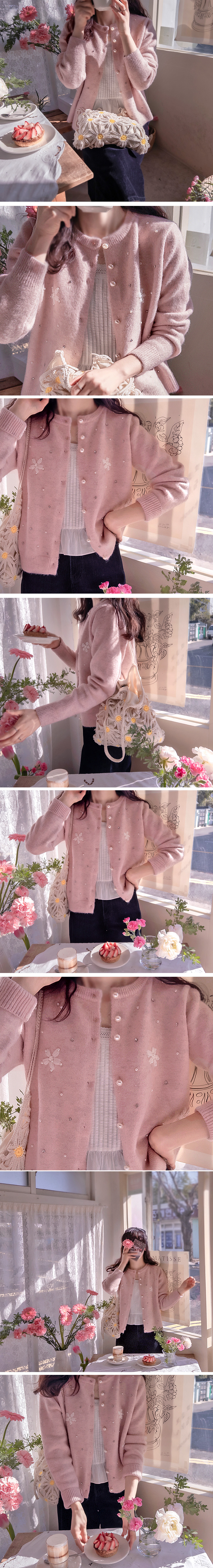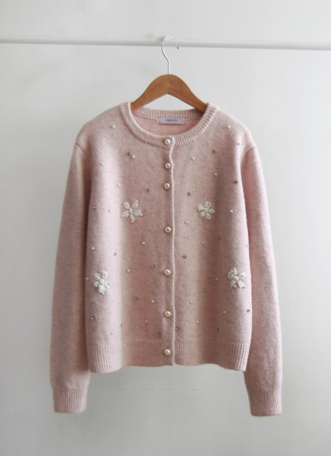 home > KNIT > CARDIGAN > Plan flower embroidery jewelry warm pastel cardigan [size: F(55~66)]