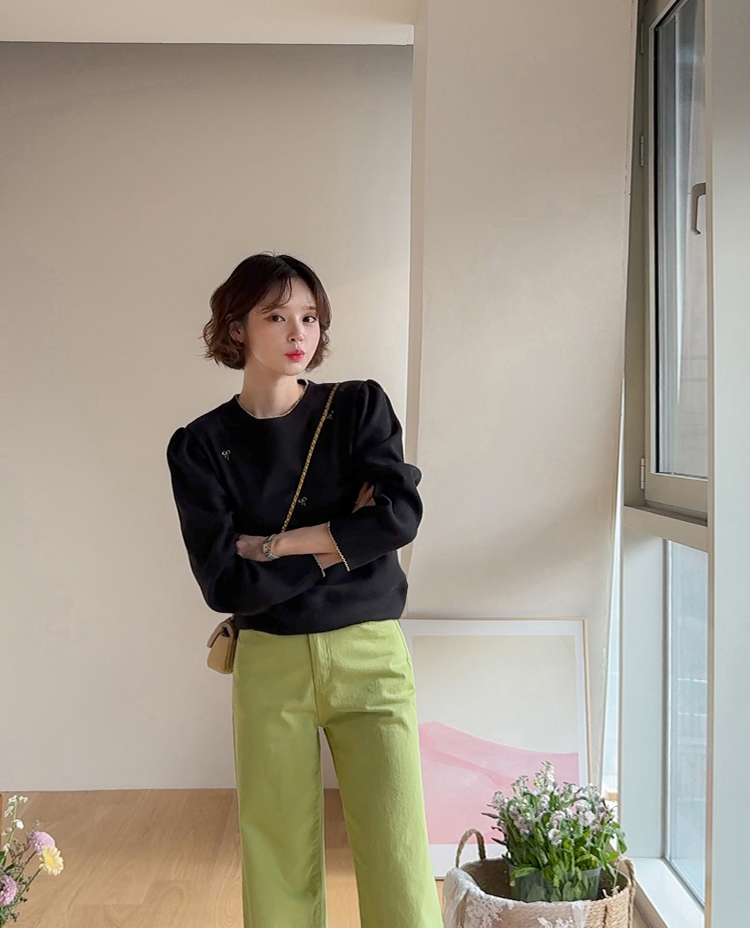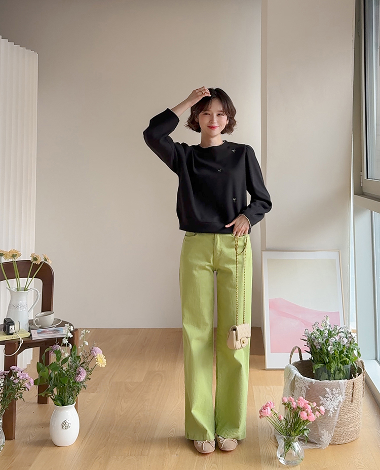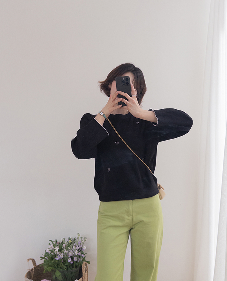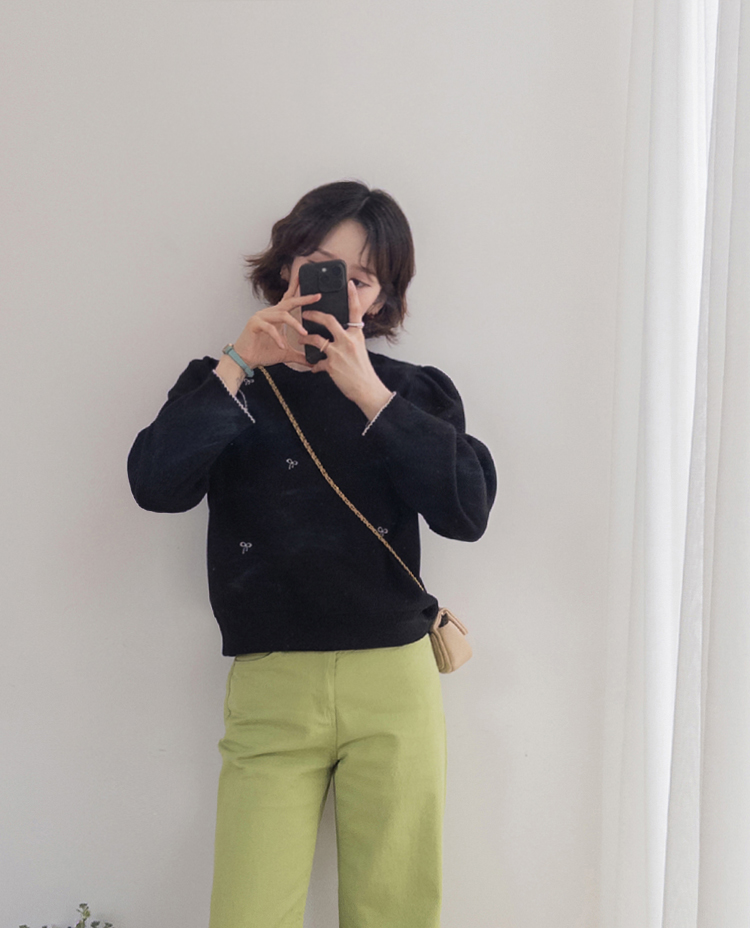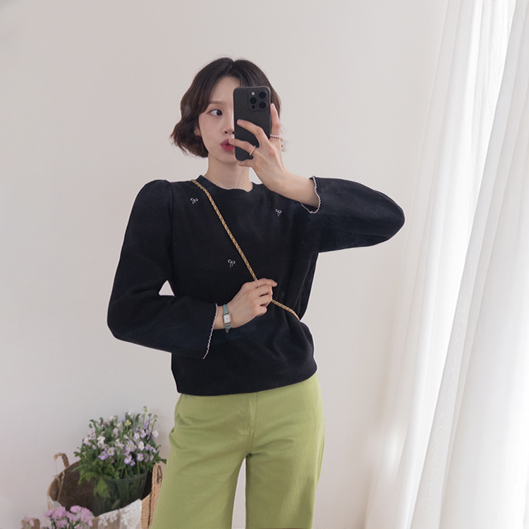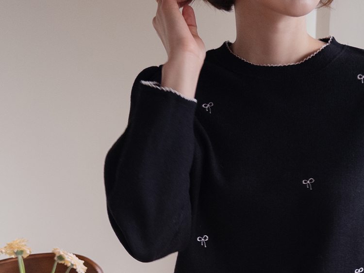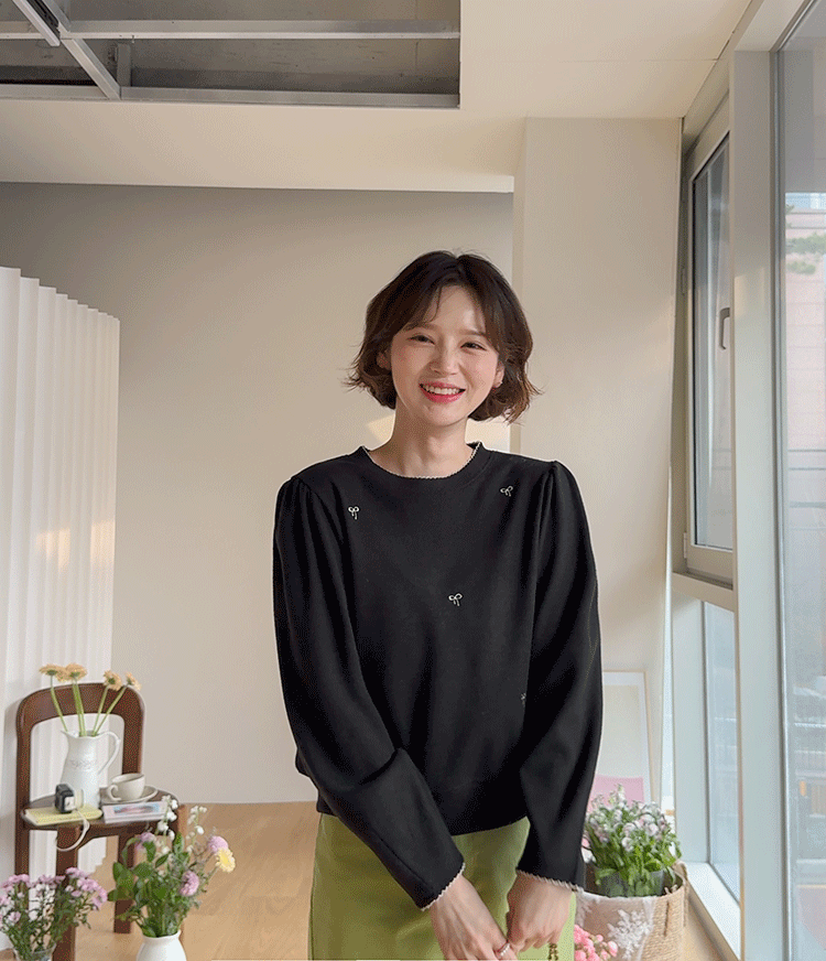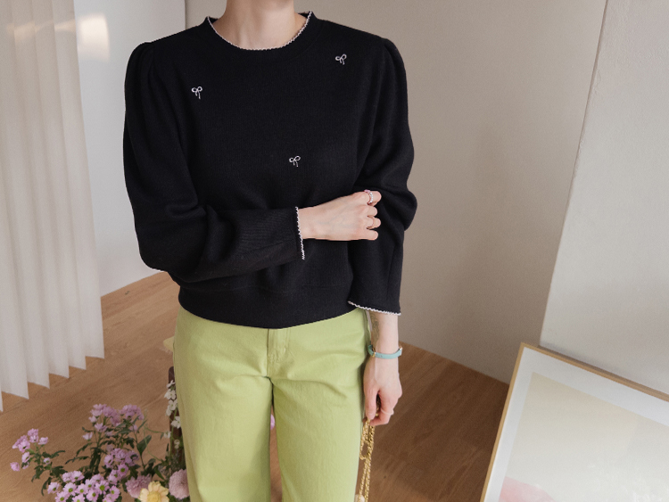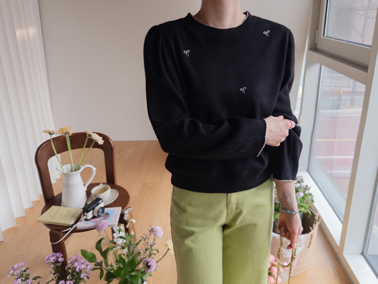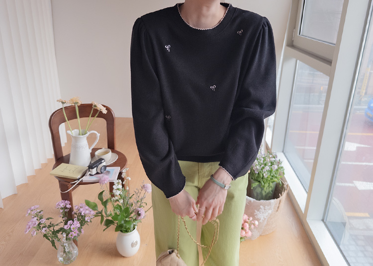 [Lovely bowknot embroidery nt♥] [The puffy shoulder line covers the upper body well!] [A loose fit for a daily wear] [Soft and flexible material for a comfortable fit]