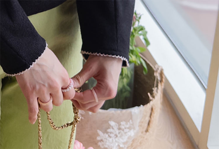 콕!콕! 새겨진 리본 자수 디테일과