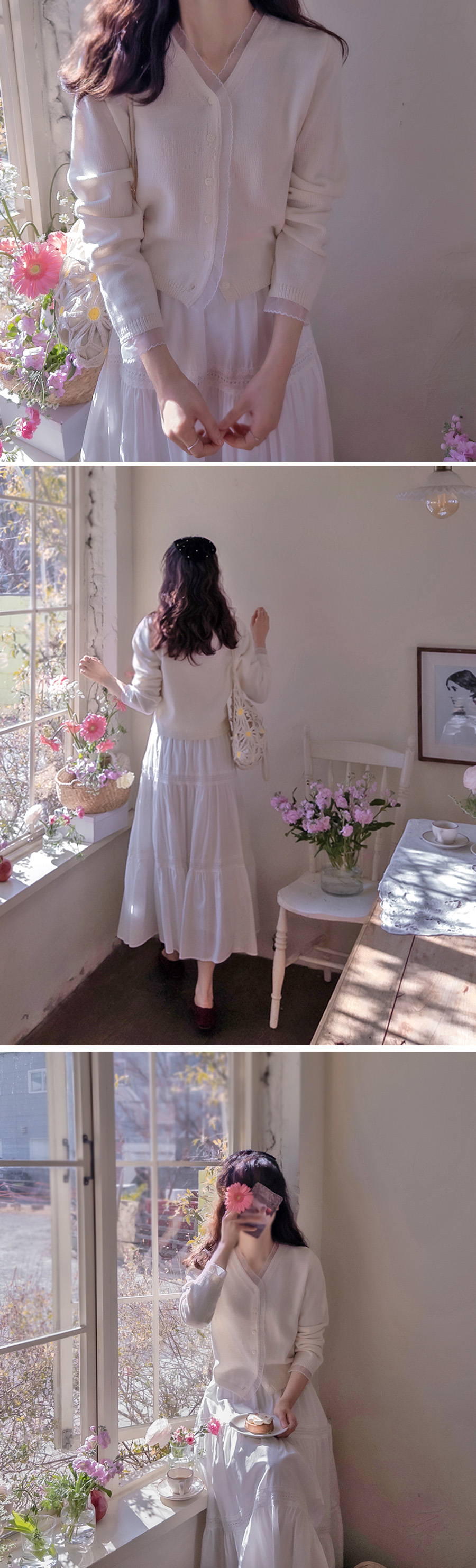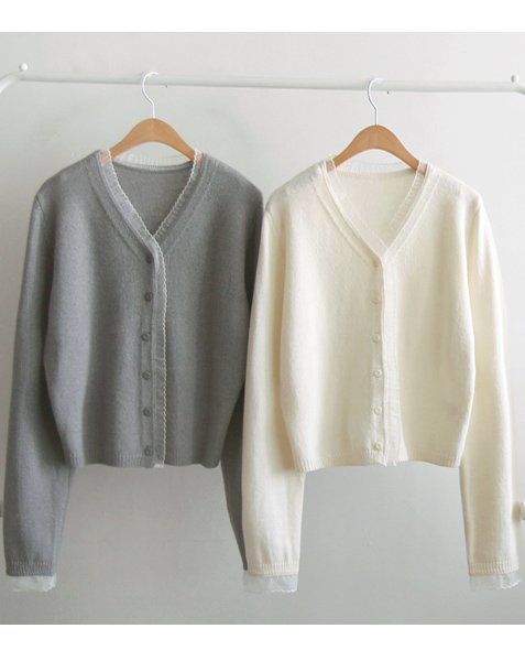 [Spring New Arrival][Lee][Mini wave-shaped color combination on the neck and sleeves creates a lovely mood][Comfortable and warm Knit Cardigan in pastel colors][Color combination adds a delicate point and gives it an elegant charm][Highly recommended as a sophisticated color combination cardigan]