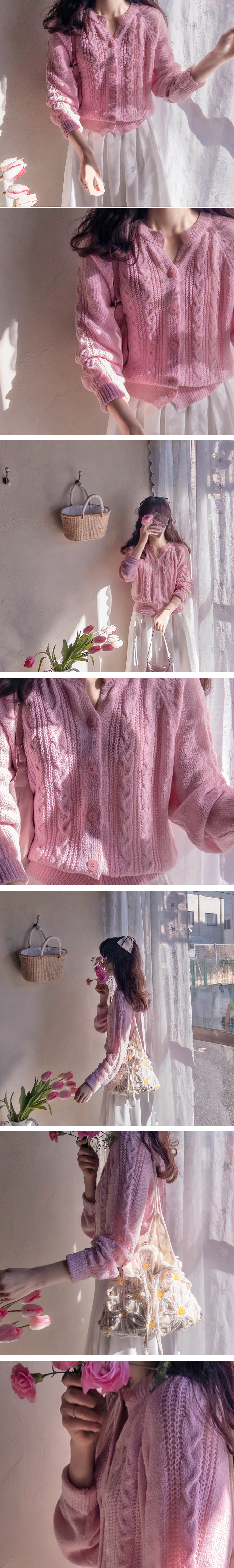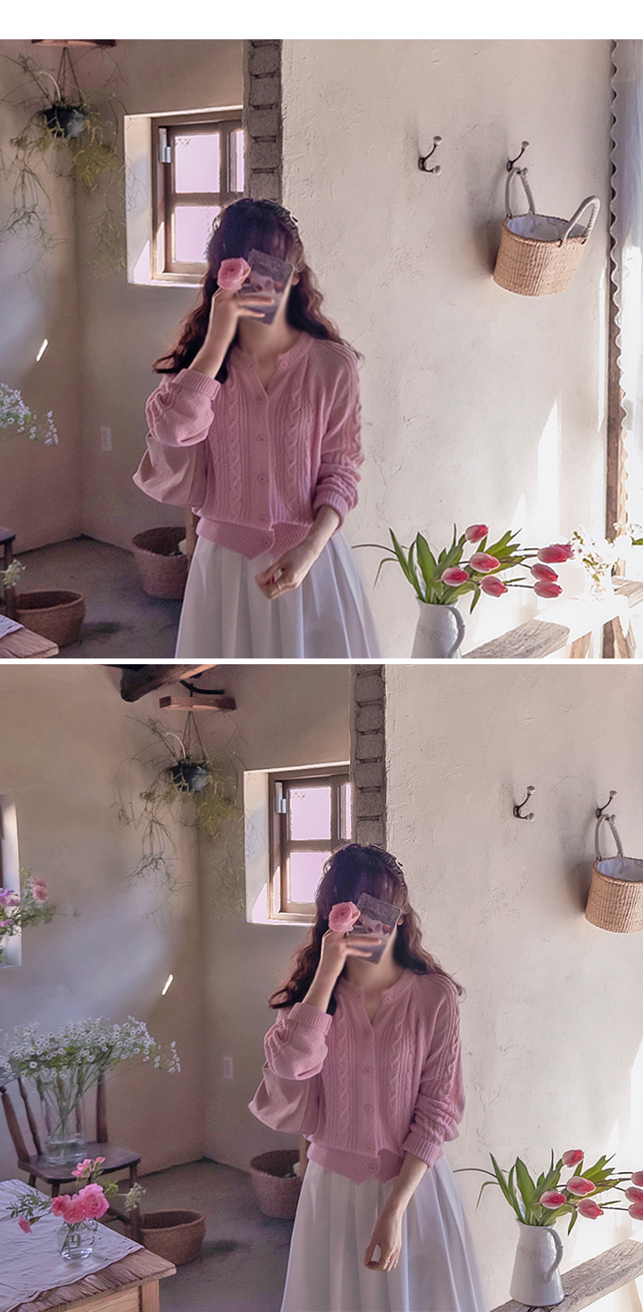 [Spring New Arrival] [Lovely Knit with Chic Twiddle Pattern] [Stylish pastel color for a sophisticated look] [Comfortable and practical cardigan for daily wear] [Stylish and elegant knit] [Highly recommended knit in a spring color that is great for daily coordination]