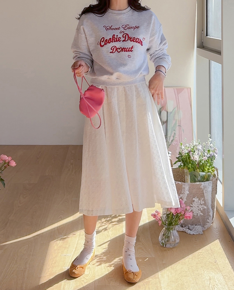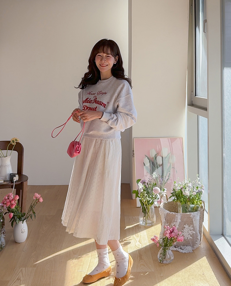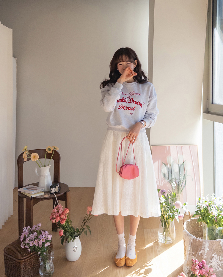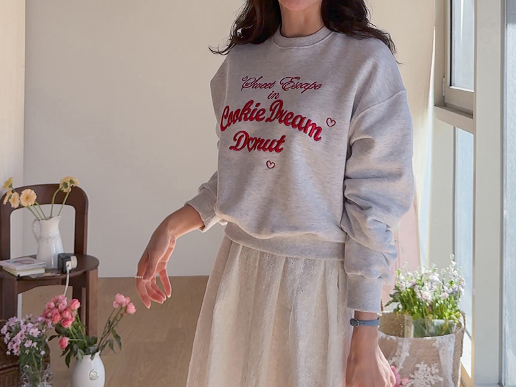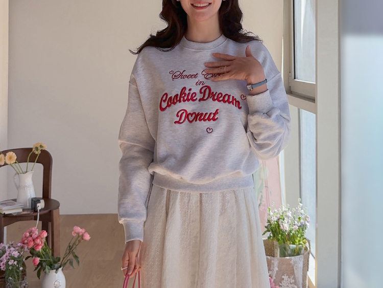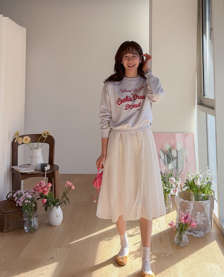 봄 간절기에 꾸안꾸 데일리 스타일을 완성해줄 맨투맨 보여 드려요~ 러블리하면서도 룩에 포인트가 되어주는 레터링 자수 디테일이 돋보여요^.^ 군살을 쏘옥- 가려주는 실루엣으로 팬츠 & 스커트 & 원피스 어디에든 다 잘 어울리는 만능 맨투맨으로 강추 드려요~♥