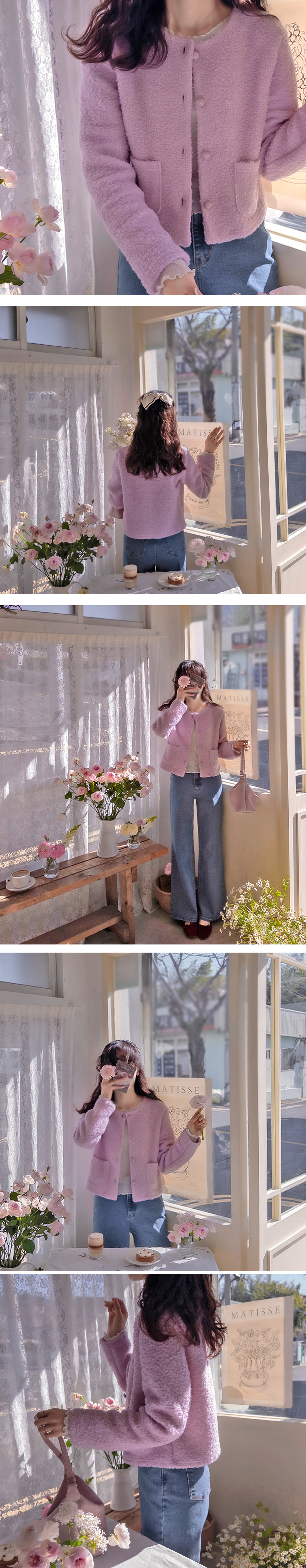 home > OUTER > JACKET > Diver Spring Pastel Round Button Sophisticated Jacket [size: F(55~66)]
