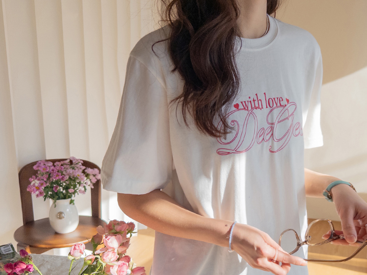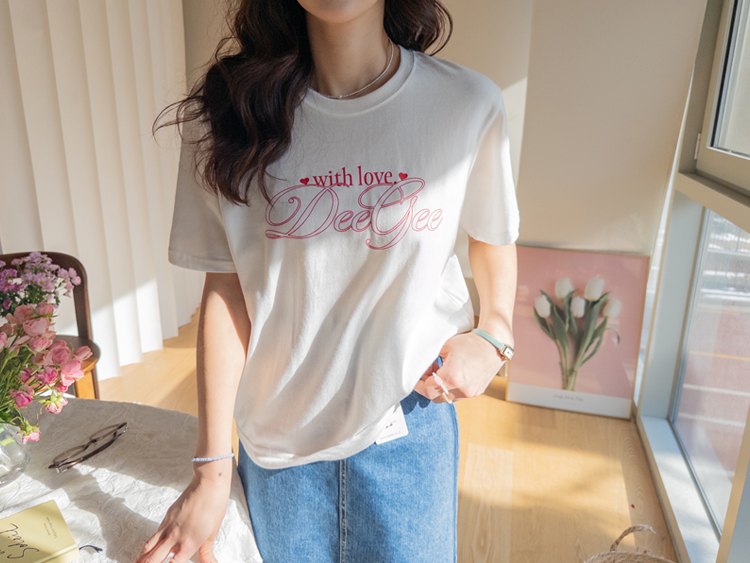 심플한 레터링이 매력적인 반팔 티셔츠 소개드려요 ^^ 과하지 않은 프린트 디자인으로 데님, 스커트 어디에나 잘 어울리고 코디하기 정말 쉬운 아이템이에요~ 베이직한 핏이라 체형 구애 없이 편안하게 착용 가능하고 단독으로 입어도 포인트 확실해요 ㅎㅎ 데일리 티셔츠로 하나쯤 꼭 추천! 굿초이스 해주세요 ♥