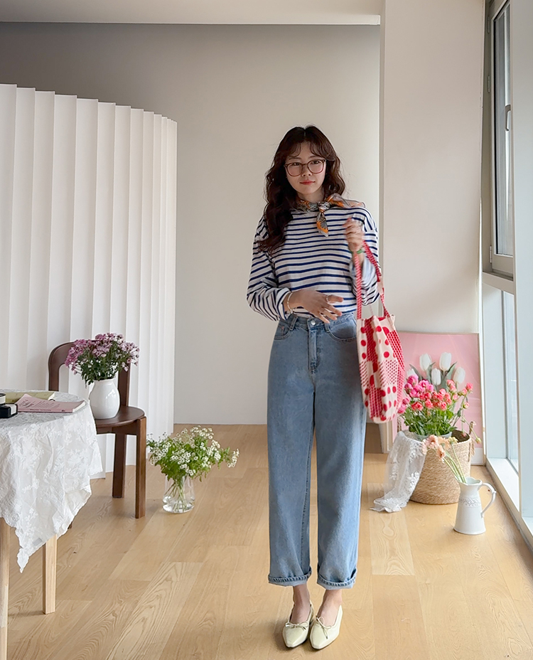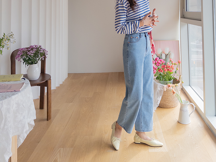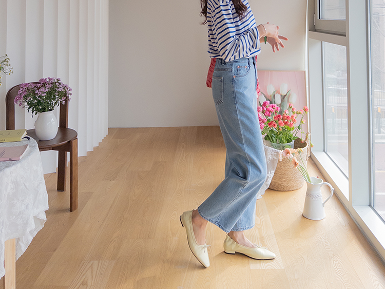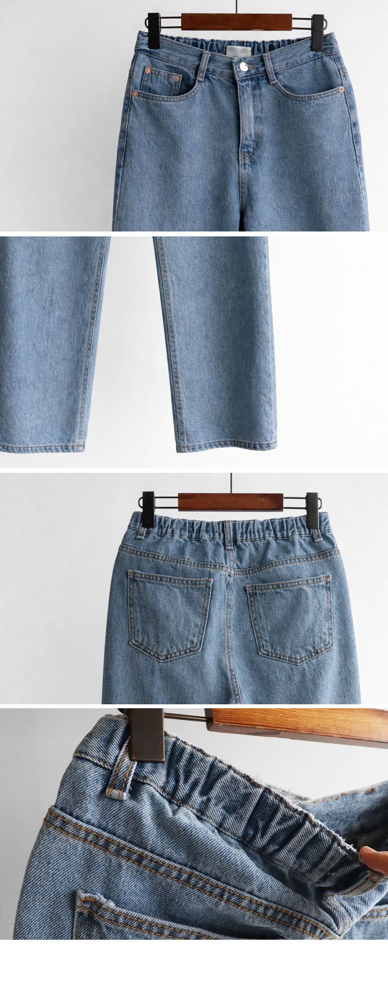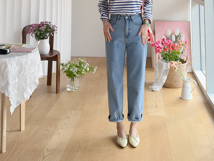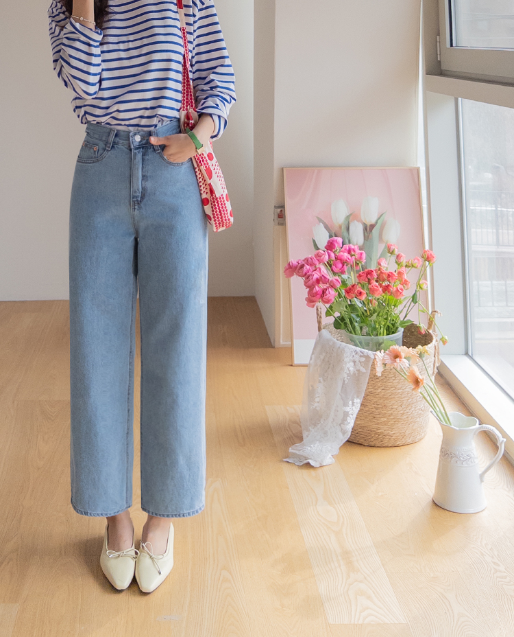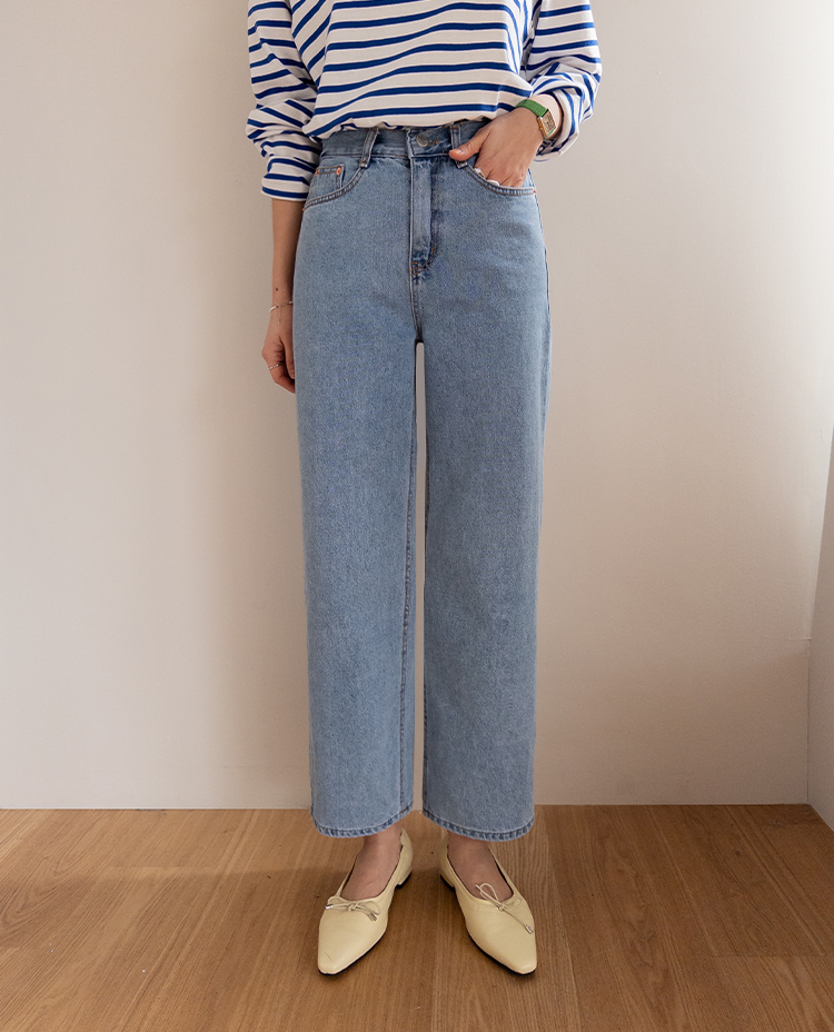 군더더기 없이 깔끔한 핏이 매력적인 데일리 세미일자 크롭 데님 소개드려요 ^^ 허벅지부터 밑단까지 과하지 않게 떨어지는 세미 일자핏으로 다리 라인을 자연스럽게 커버해주면서 단정하고 깔끔한 실루엣을 연출해주고요, 발목이 살짝 드러나는 크롭 기장으로 전체적으로 경쾌하고 산뜻한 분위기를 더해주어 플랫슈즈, 스니커즈, 로퍼 어디에나 잘 어울려요. 허리 뒷밴딩 디테일이 더해져 착용했을 때 답답함 없이 편안하게 입어지며 활동 시에도 안정감 있는 착용감을 느끼실 수 있어요. 면100% 데님 소재로 제작되어 늘어짐 걱정 없이 탄탄하게 핏을 잡아주며 밑단을 살짝 롤업하면 세미 배기 느낌으로도 연출 가능한 활용도 높은 데일리 데님으로 추천드릴게요 ♥