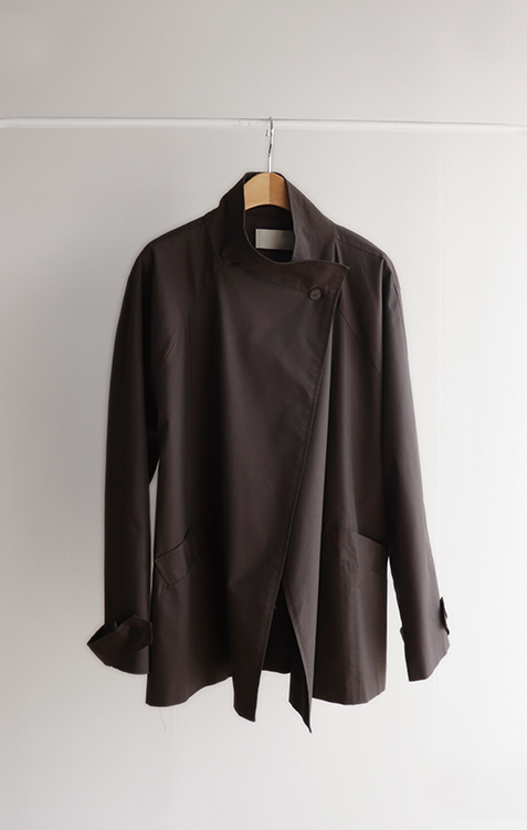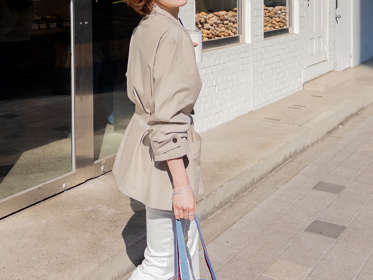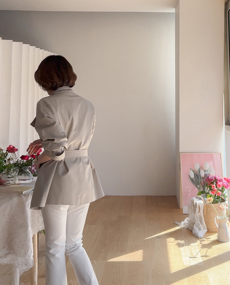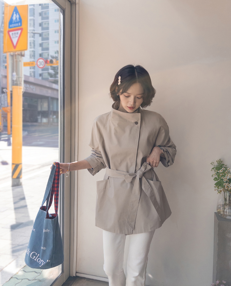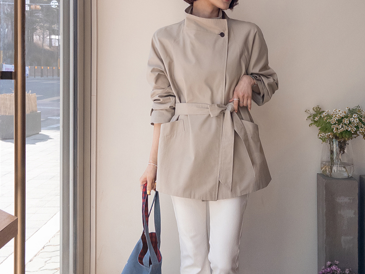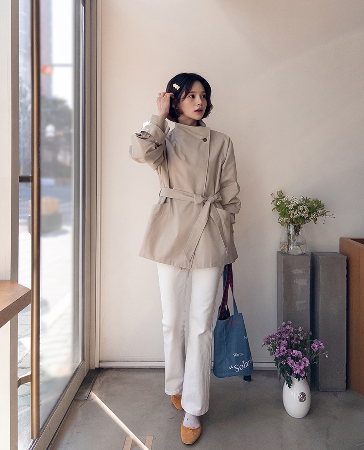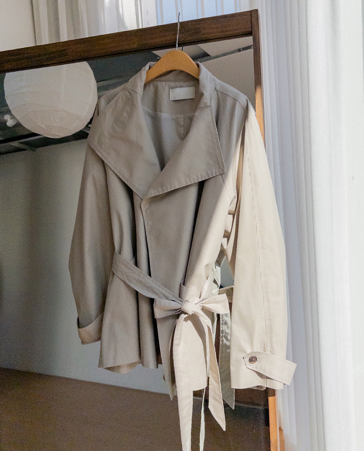 가볍게 감싸지는 랩 스타일 코트예요 :) 허리 스트랩으로 체형에 맞게 조절이 가능해 슬림한 실루엣으로 연출할 수 있구요. 전체적으로 넉넉한 품이라 이너를 여러 겹 레이어드해도 부담 없어요. 툭 걸쳐주기만 해도 분위기 있는 룩이 완성되는 데일리 아우터 아이템이에요 ♡